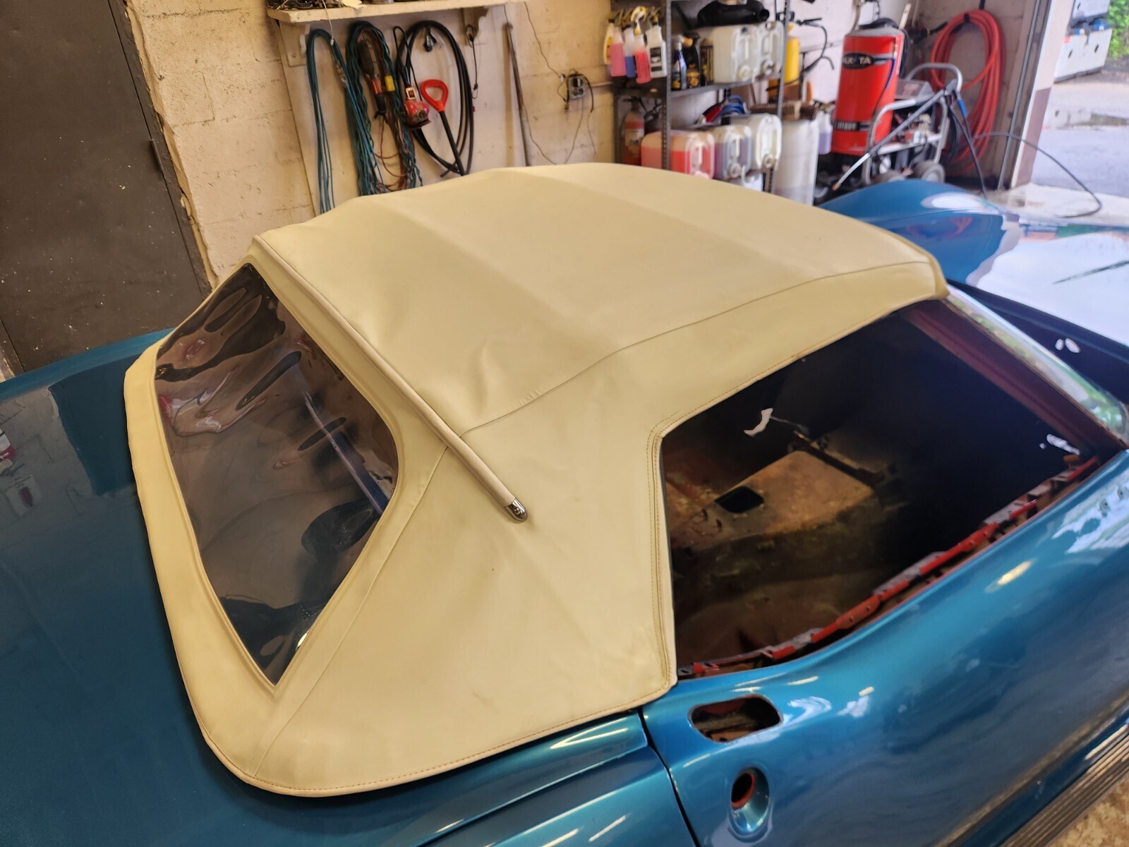 1968 Corvette Convertible with BOTH tops. Paint is an older, mid quality color change. Paint on hood does not quite match. Chips and nicks, stress cracks and are to be expected. With the said, it still presents nicely. Floor pan cracked on driver side foot well. See images. Rear wheel tubs need to be finished. COFFMAN floor kit installed (battery mounts behind differential under car). Includes bumpers, trim some powdercoated brackets etc. Headlights included and are 68 only. Door glass is mismatched. 1968 only handles, latches and locks included. Two valances are included as shown. Wiper door and components included as shown.