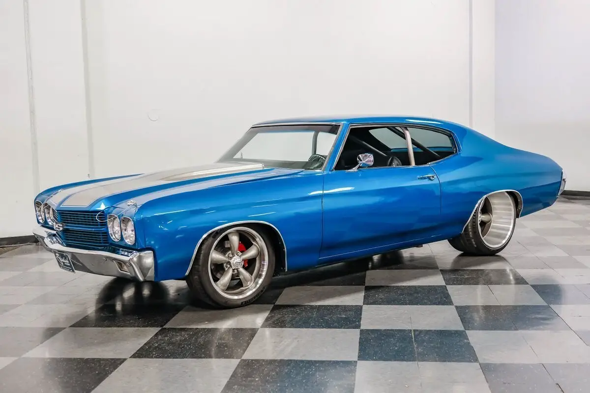 This 1972 Chevrolet Chevelle Malibu Pro Touring combines raw muscle with precision engineering. The 5.3L V8, custom suspension, and blue metallic paint create a street-ready performance machine. Call today!