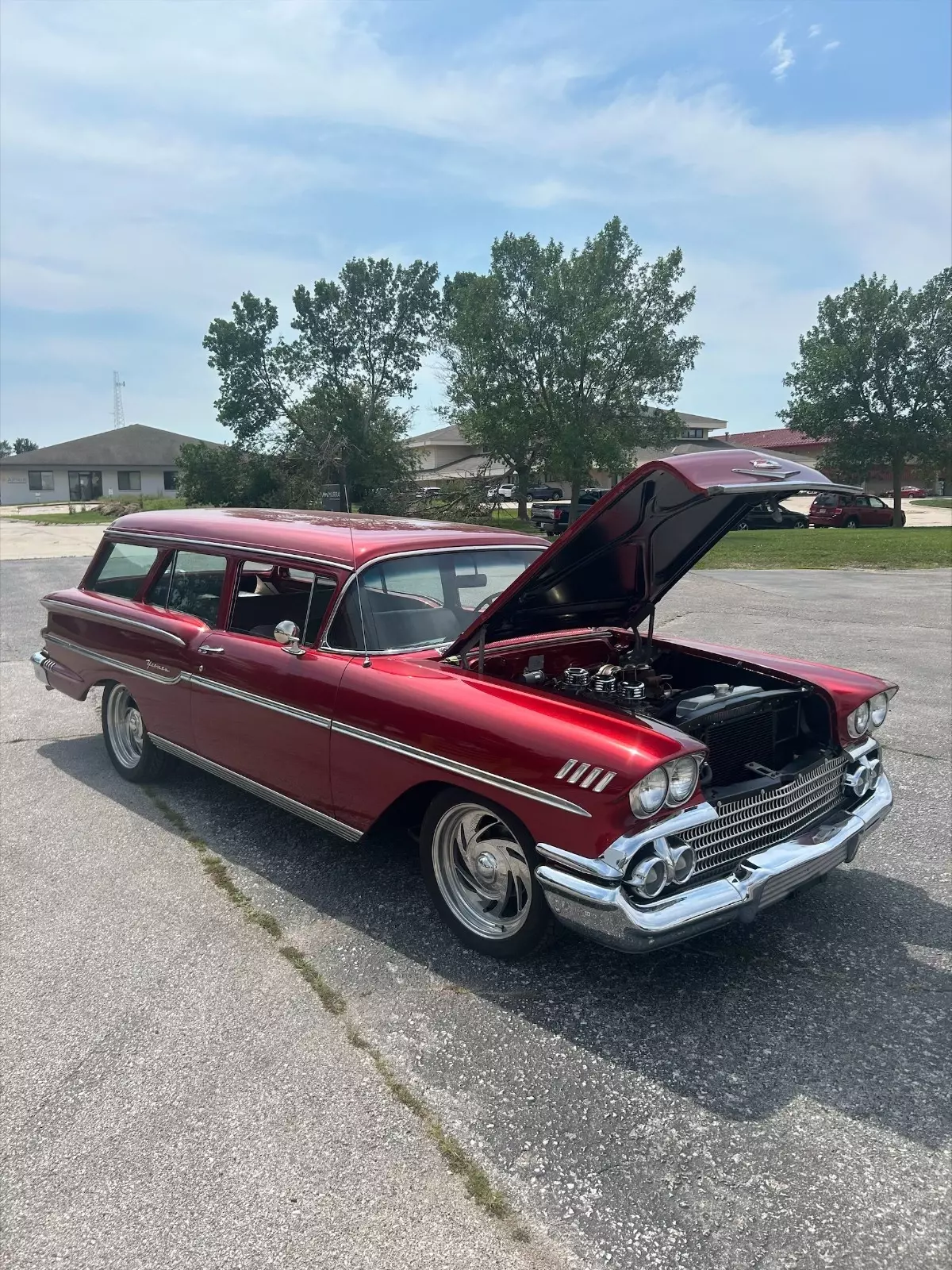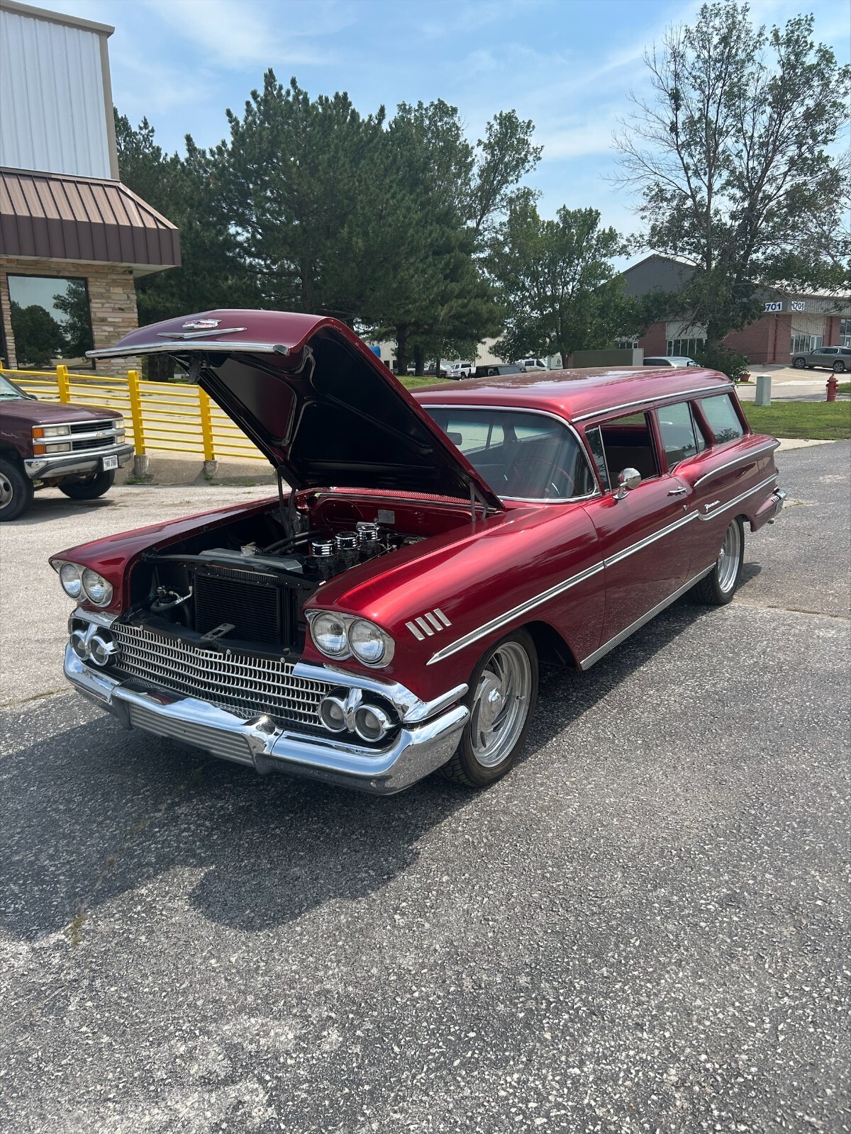 This awesome 2 door station wagon is part of my fathers estate. My father was in the process of restoring this 1958 two door YOEMAN wagon (not a Nomad) when his health took a turn for the worst. Unfortunately he never finished this project. The only thing left to do is to have interior put in the car. My father did a complete frame off restoration where every nut and bolt was taken apart, cleaned, painted and rebuilt. The car has a freshly rebuilt 348 with 3x2 intake and carbs. The car has factory power steering with the slave cylinder. Front power disc brakes with aftermarket master cylinder and power booster. Aftermarket Air conditioning. It has a TH350 transmission. Stock 1958 rearend with correct P housing posi center carrier. Driving the car feels like it has 4:11 gears in the rear end. The motor turns about 3000 rpm at 60 mph. Car has digital gauges. Front and rear seats are complete. The old interior that was in the car when my father purchased it is included. All new glass, weather strips and window felts. Re-chromed bumpers, all exterior stainless was restored and polished. This car had been in storage for about 4 years. After my fathers passing we pulled the car out of storage. The car was trailer to a mechanic shop (The roads were wet and trailered on an open trailer, That is why the pictures of the undercarriage show water spots and dirt). It would not take much to wipe down the under carriage to make it 100%. Fresh gas was put in the tank, new battery, and brakes bled. The car runs and drives great. I just drove it 50 miles with no problems. The AC comes on, but probably needs a refrigerant charge. My father had about $70K in this car to get it to this point.
