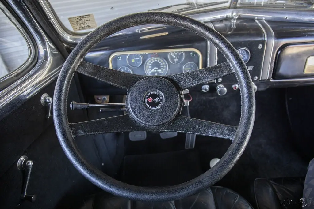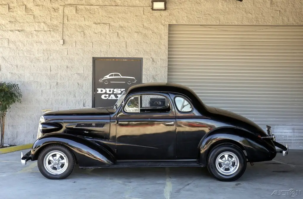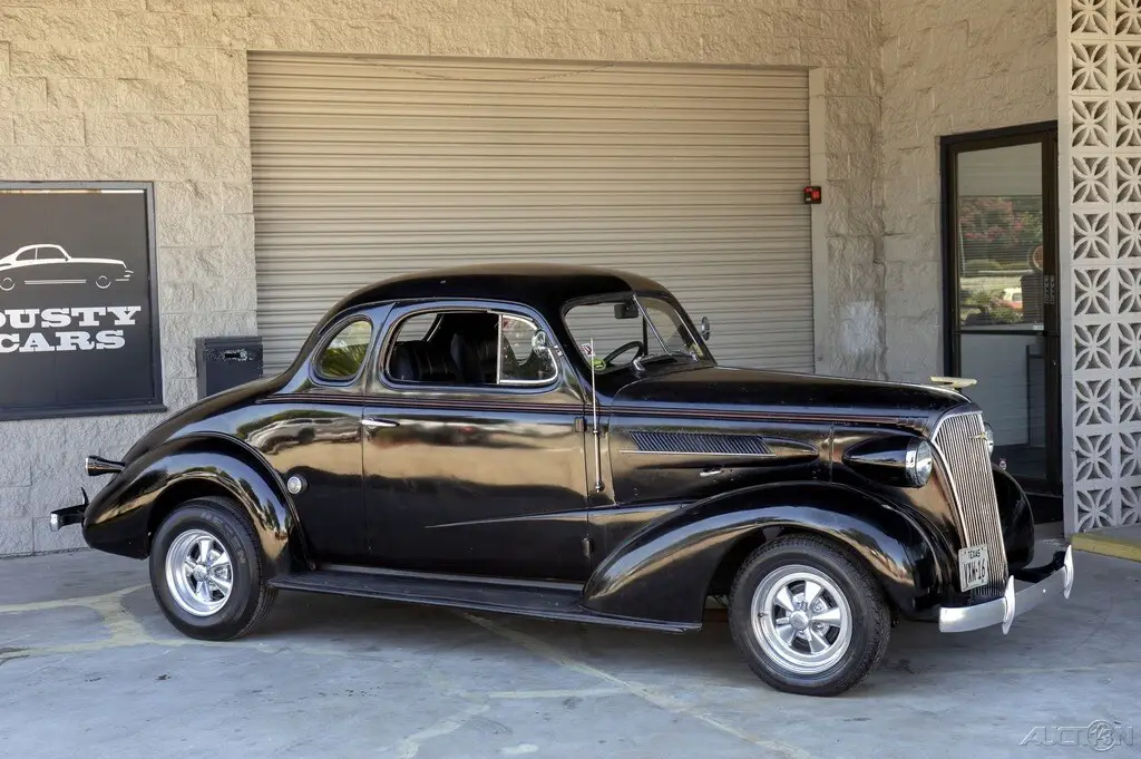1937 Chevy Master Deluxe Coupe: Texas barn find; stored for 40 years in protected cool and dry conditions; solid original body; engine runs well. Restomod work was likely completed during the 1970's and the car was entered in some local shows. We purchased this truck along with a collection of 15 vehicles in La Grange, Texas, froma retired estate liquidator who had his collection of low-mile cars stored in two large warehouses, all in good condition. None of the vehicles had been started in at least 30 years. We cleaned the car and got the engine running, after 40 years it runs even and sounds healthy. All other mechanical systems need to be checked prior to driving. Please study the pictures carefully rather than requesting descriptions. Please complete any inspections or ask any questions prior to bidding or committing to buy the car. Thanks for the interest!