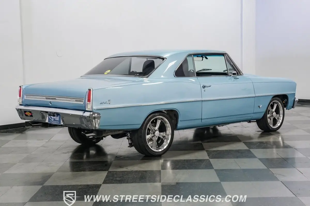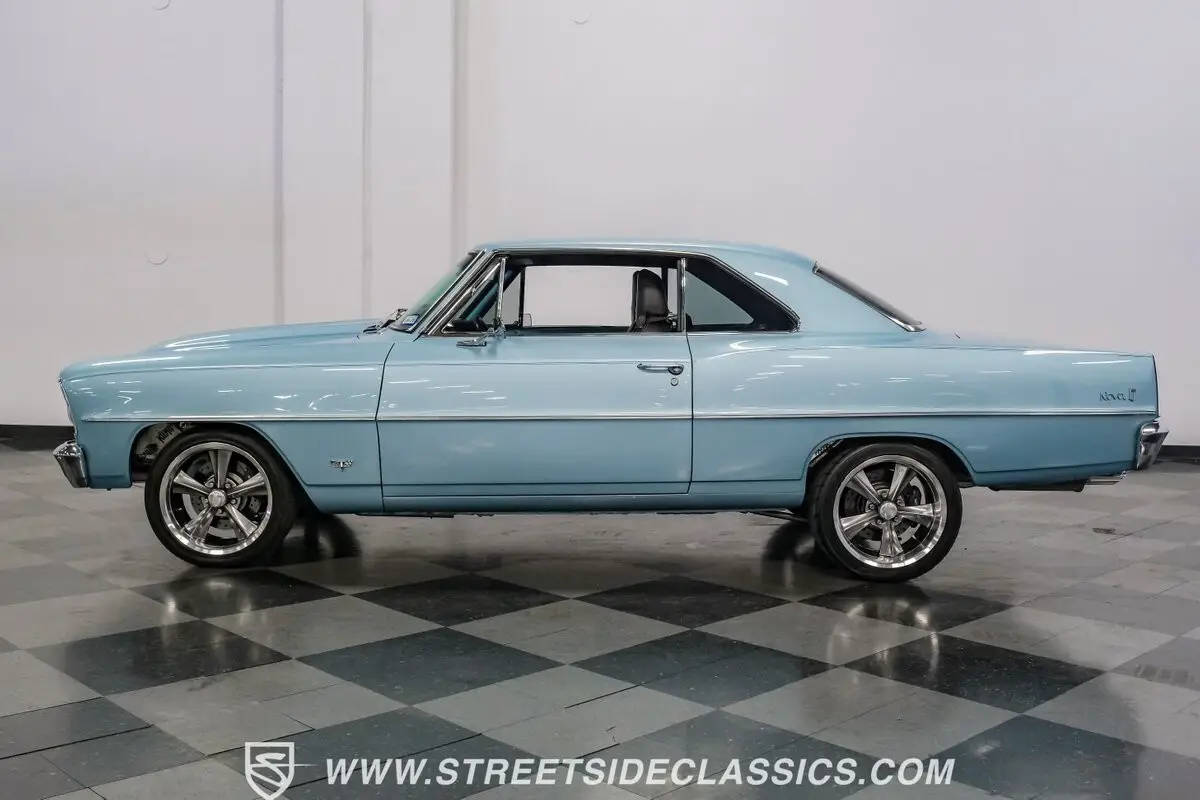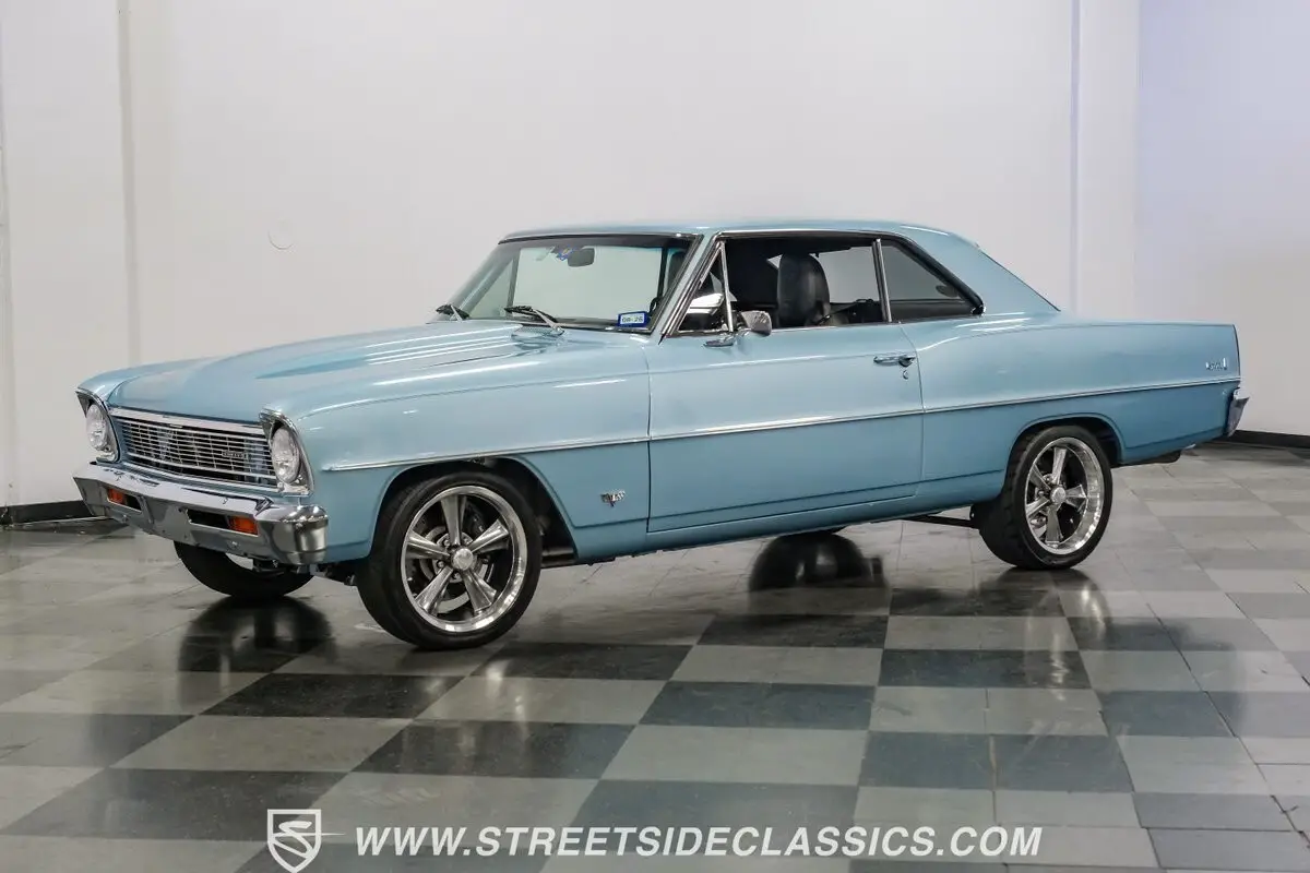 Here is a 1966 Chevrolet Nova Chevy II Restomod that looks absolutely gorgeous in its Nassau Blue paint job. The 17-inch wheels, gleaming chrome bumpers, and incredible stance put this car in a class of its own. All of the trim and badges are in great shape, as is the front grille, complementing the cowl induction hood beautifully. To enhance the character of this Nova, tinted windows have been added, giving the car an even sleeker and cooler appearance. A car like this doesn't go unnoticed-expect plenty of thumbs-ups from car enthusiasts!