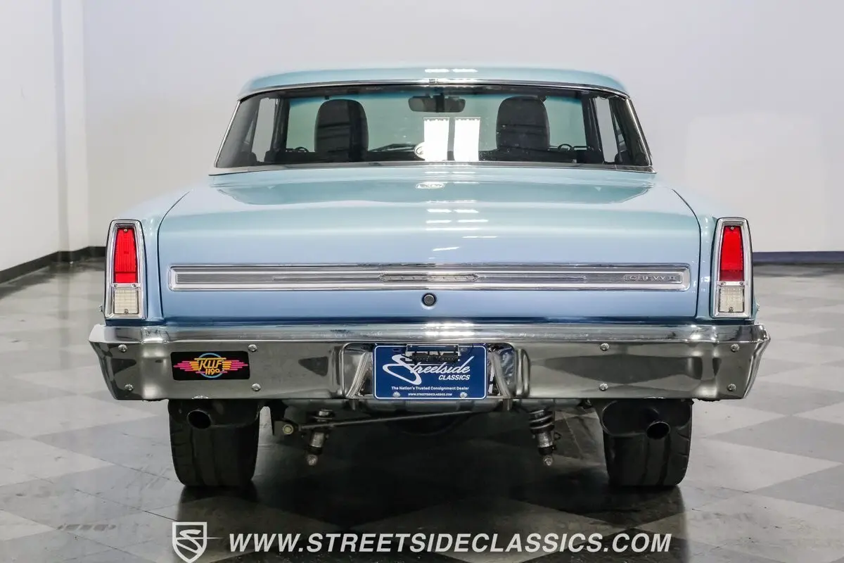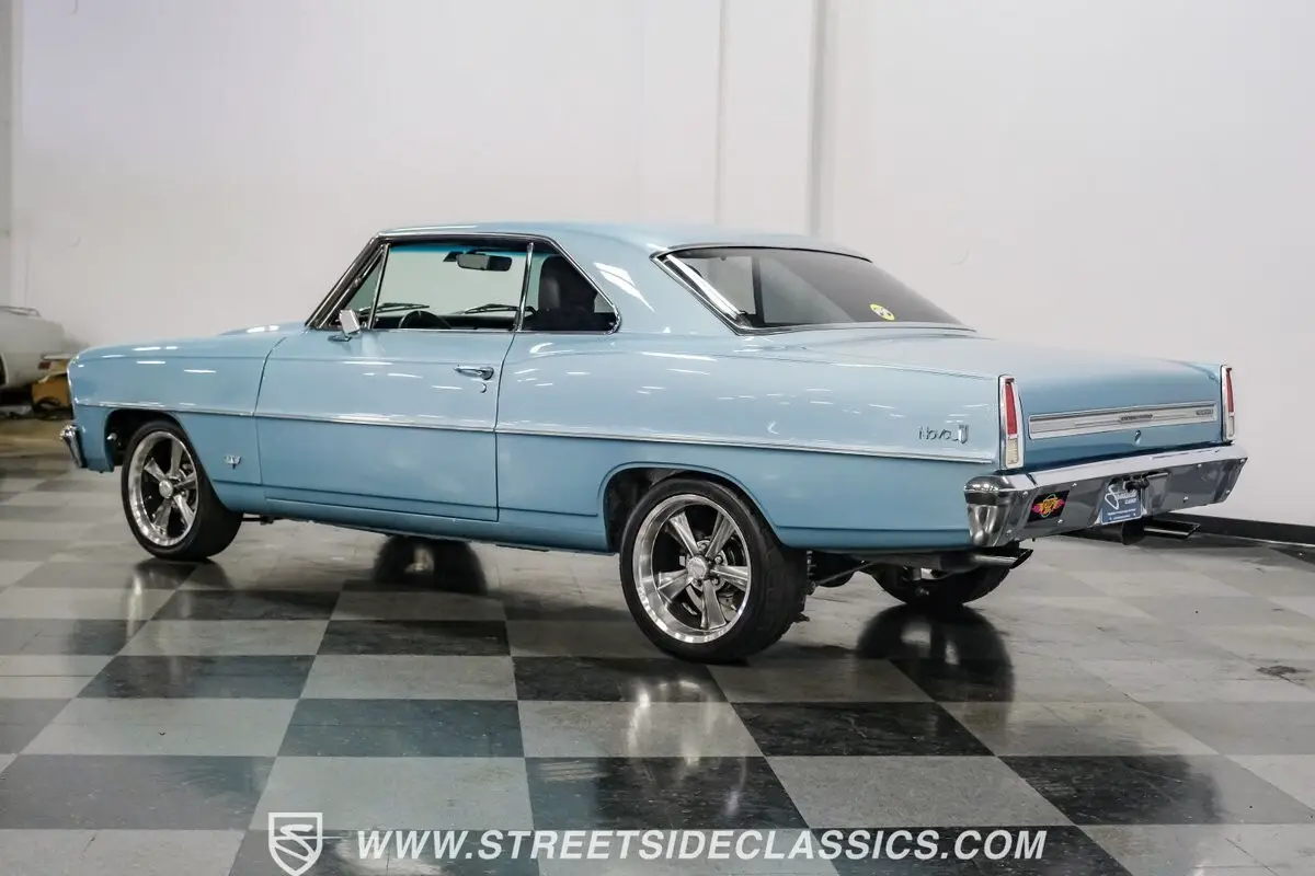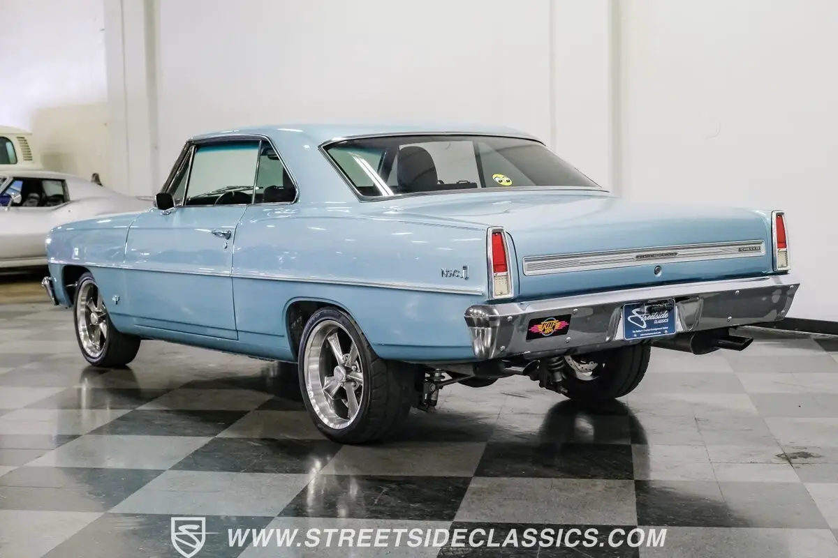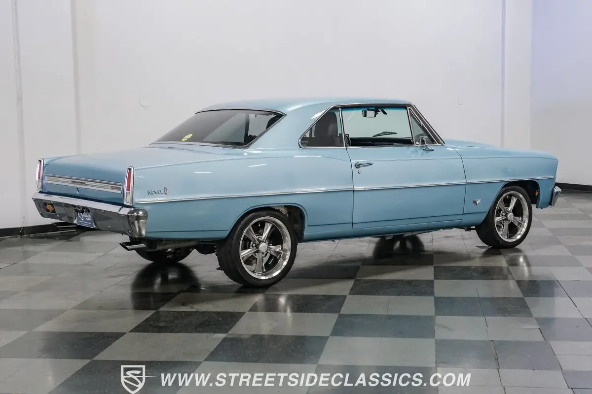 Here is a 1966 Chevrolet Nova Chevy II Restomod that looks absolutely gorgeous in its Nassau Blue paint job. The 17-inch wheels, gleaming chrome bumpers, and incredible stance put this car in a class of its own. All of the trim and badges are in great shape, as is the front grille, complementing the cowl induction hood beautifully. To enhance the character of this Nova, tinted windows have been added, giving the car an even sleeker and cooler appearance. A car like this doesn't go unnoticed-expect plenty of thumbs-ups from car enthusiasts!