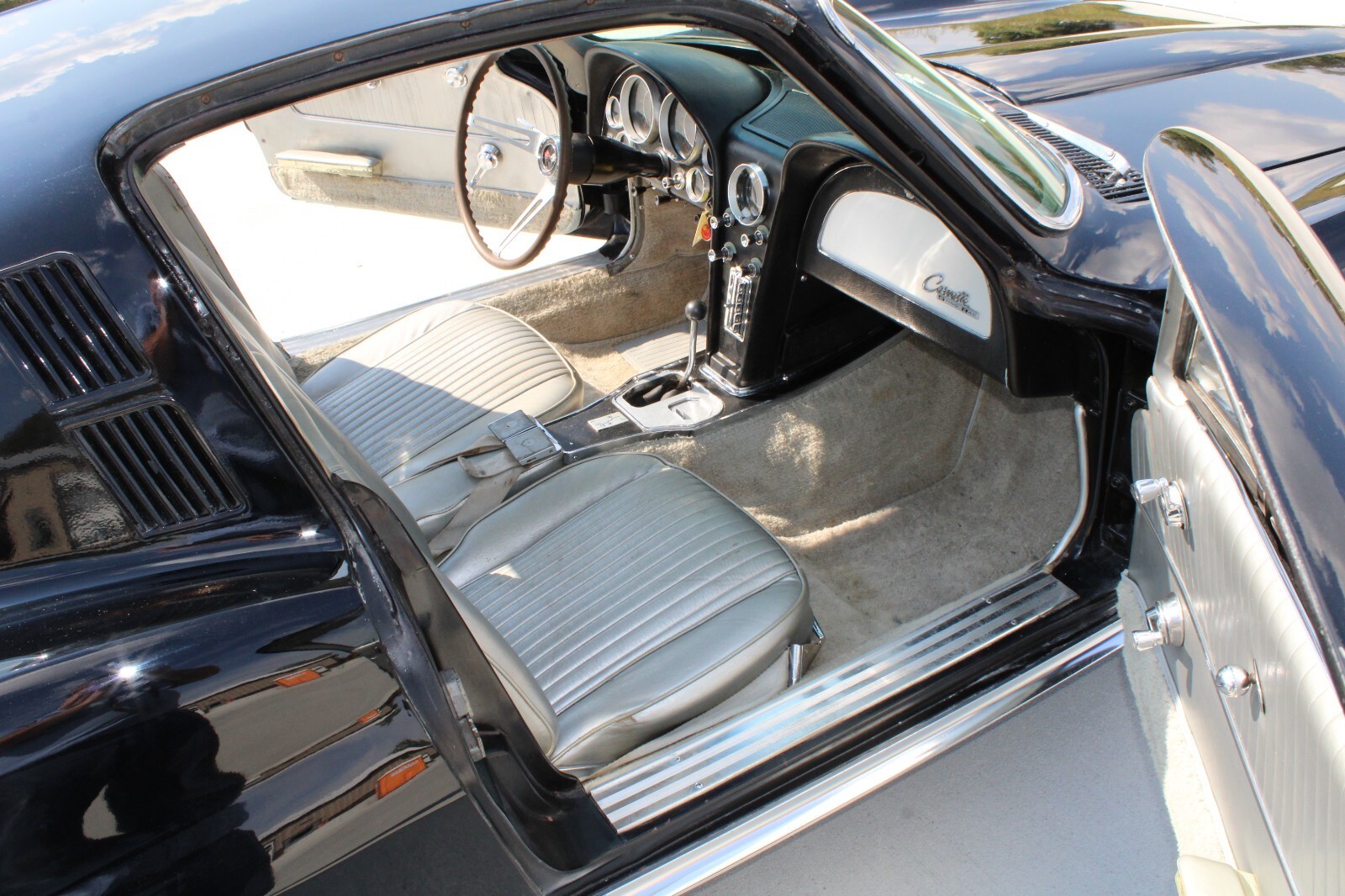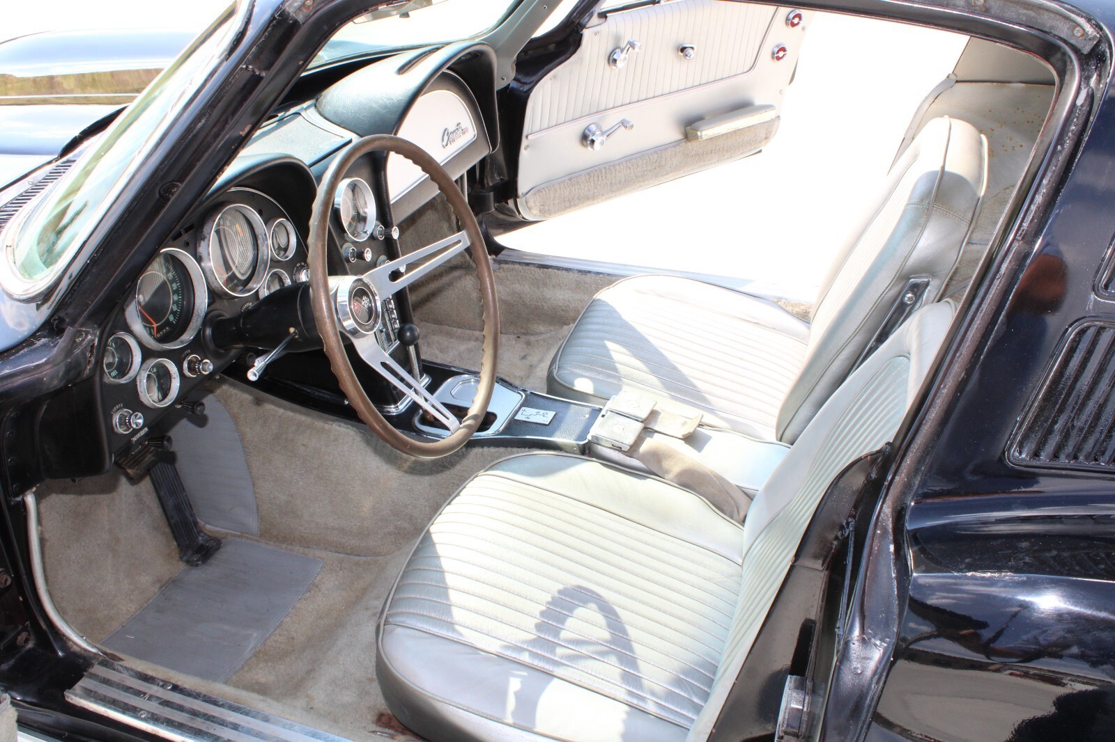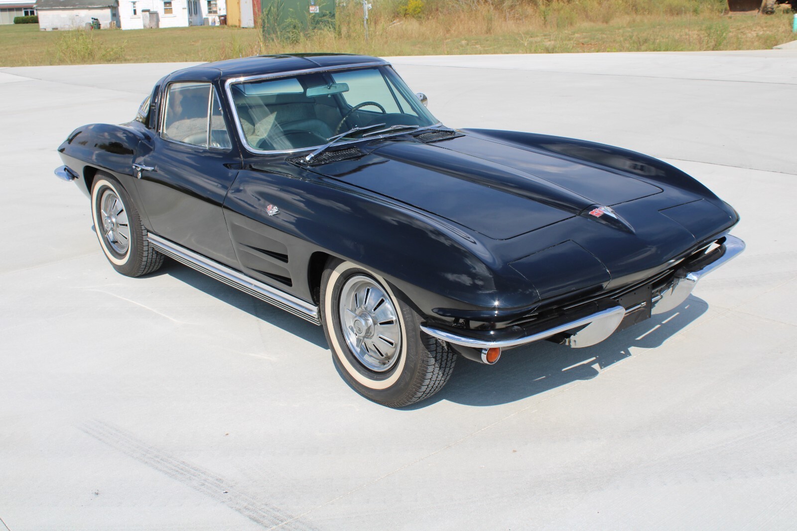 Up for your consideration is a 1964 Corvette Coupe. Very rare Tuxedo Black with Silver interior. 350ci motor with a turbo 350 automatic transmission and a Posi rear differential. Options include power steering, AM/FM radio, back-up lights and white line radial tires.Very nice driver quality car. Original Trim and VIN tags.Interior looks all original. Birdcage looks good, frame looks good, underside of the body has heavy undercoated. Older base/clear repaint that is showing its age withroad rash up front and behind rear tires,small touch-ups and a couple small stress cracks, (see close up pictures). The hood was replaced with a 65-67 flat hood during the repaint. Great cruising car, runs and drives great. Located in HarrisonOhio, inspections are encouraged, sold as is with no warranties, deposits are non-refundable. Will help find a shipper and help load. E-mail or call Matt with any questions 5135829674.