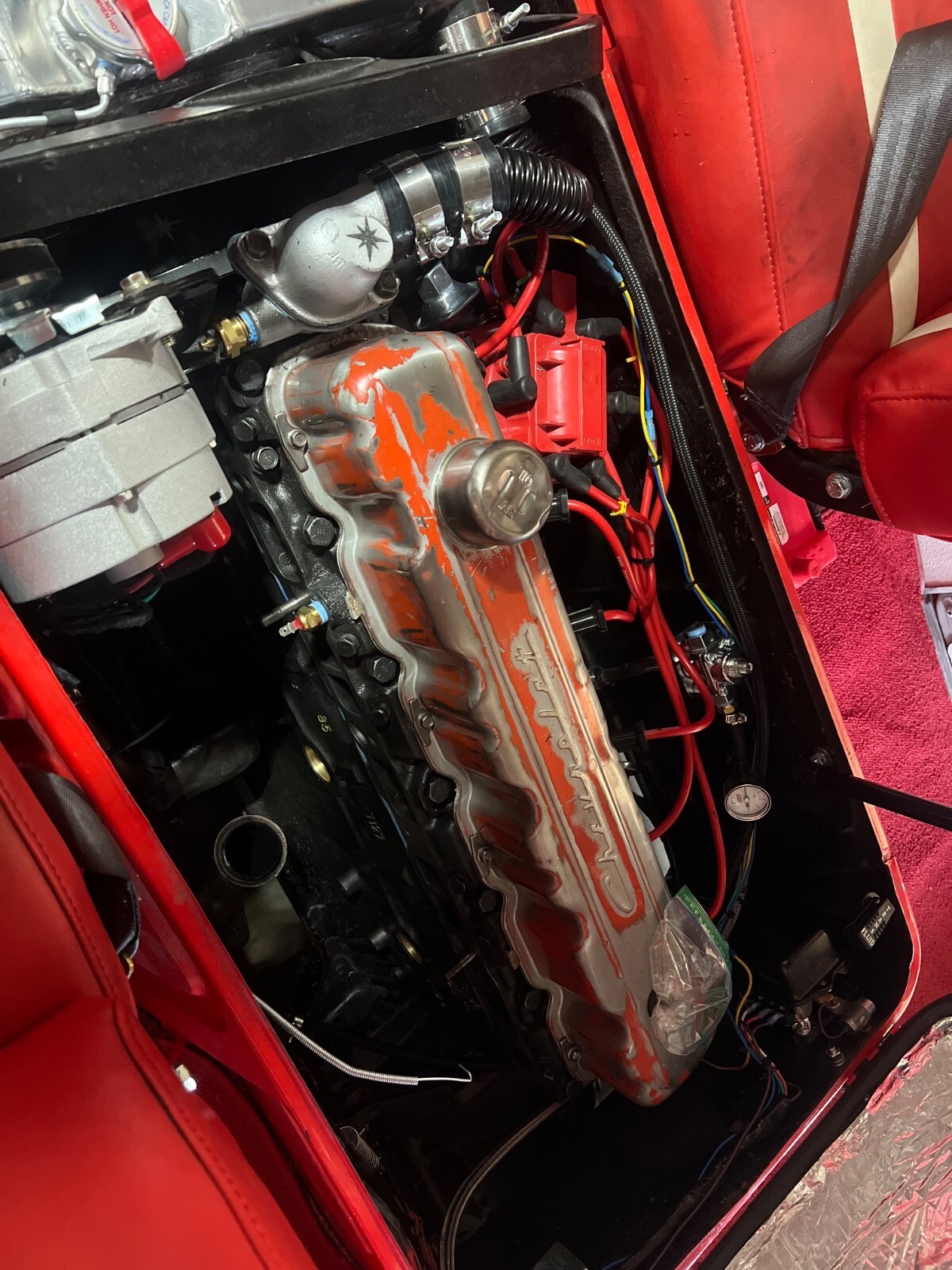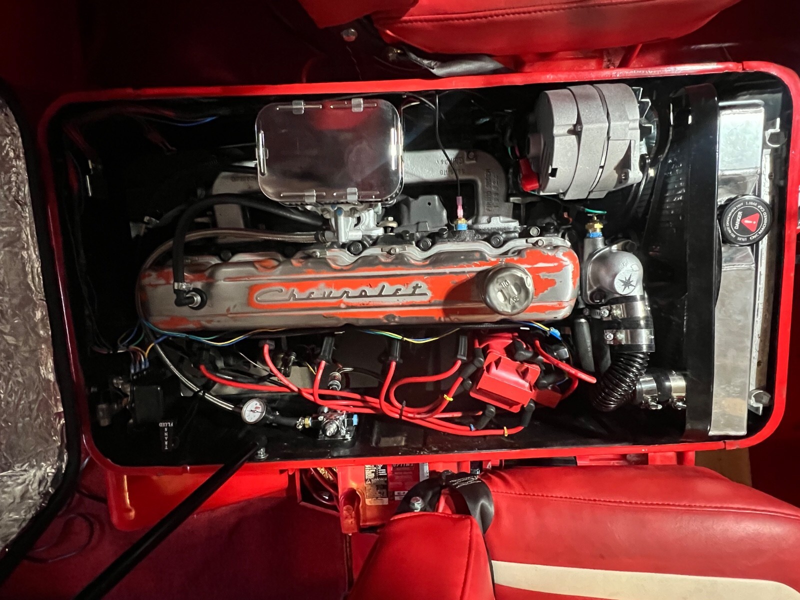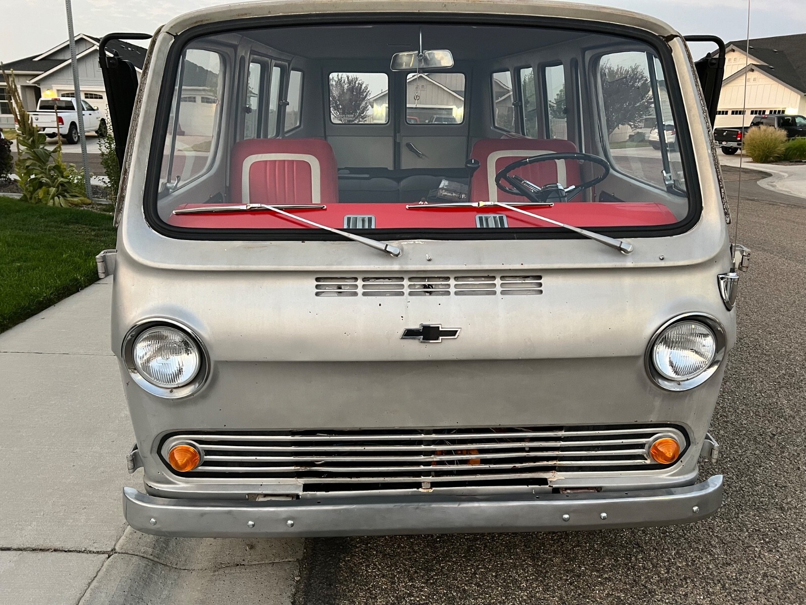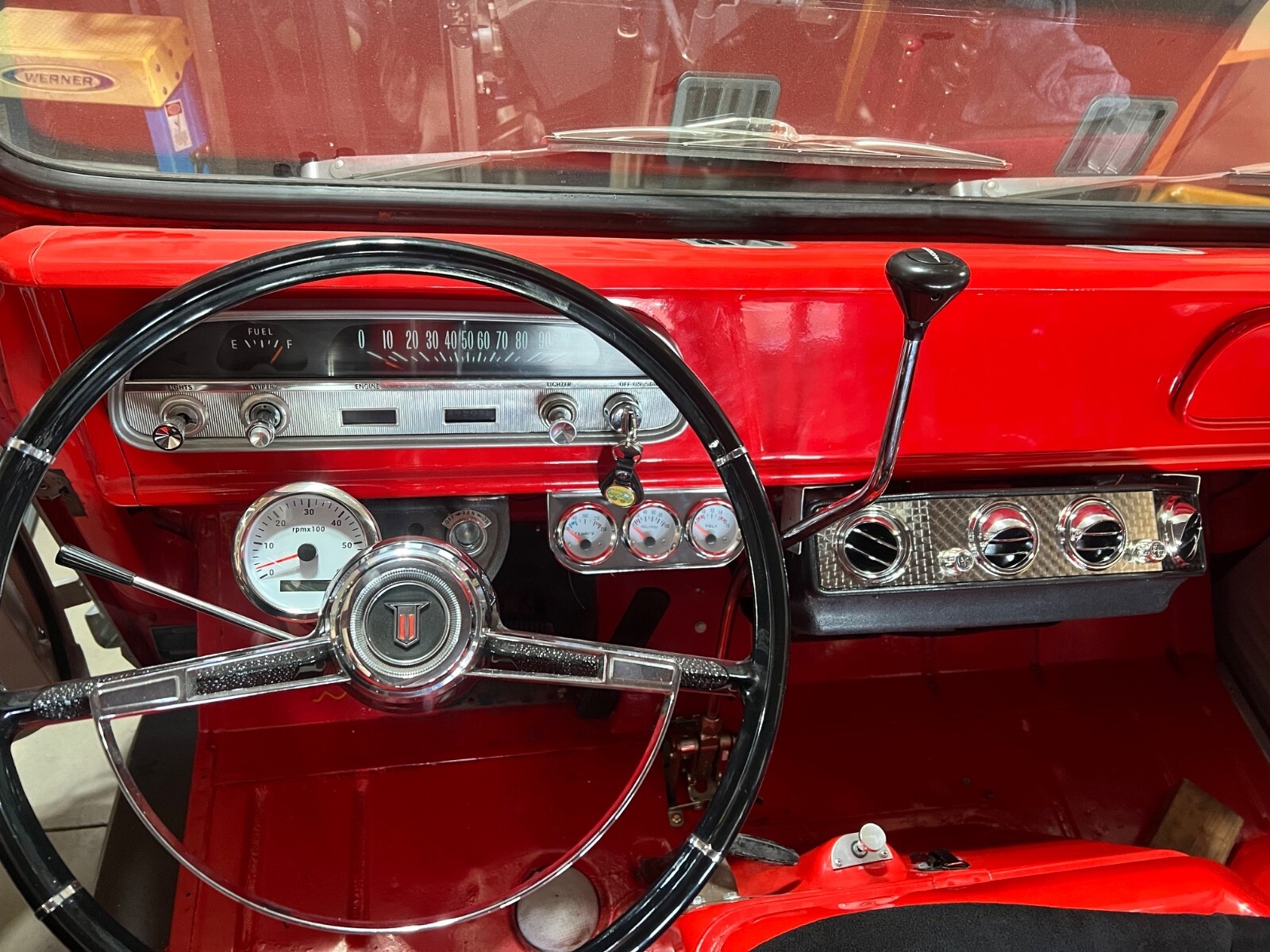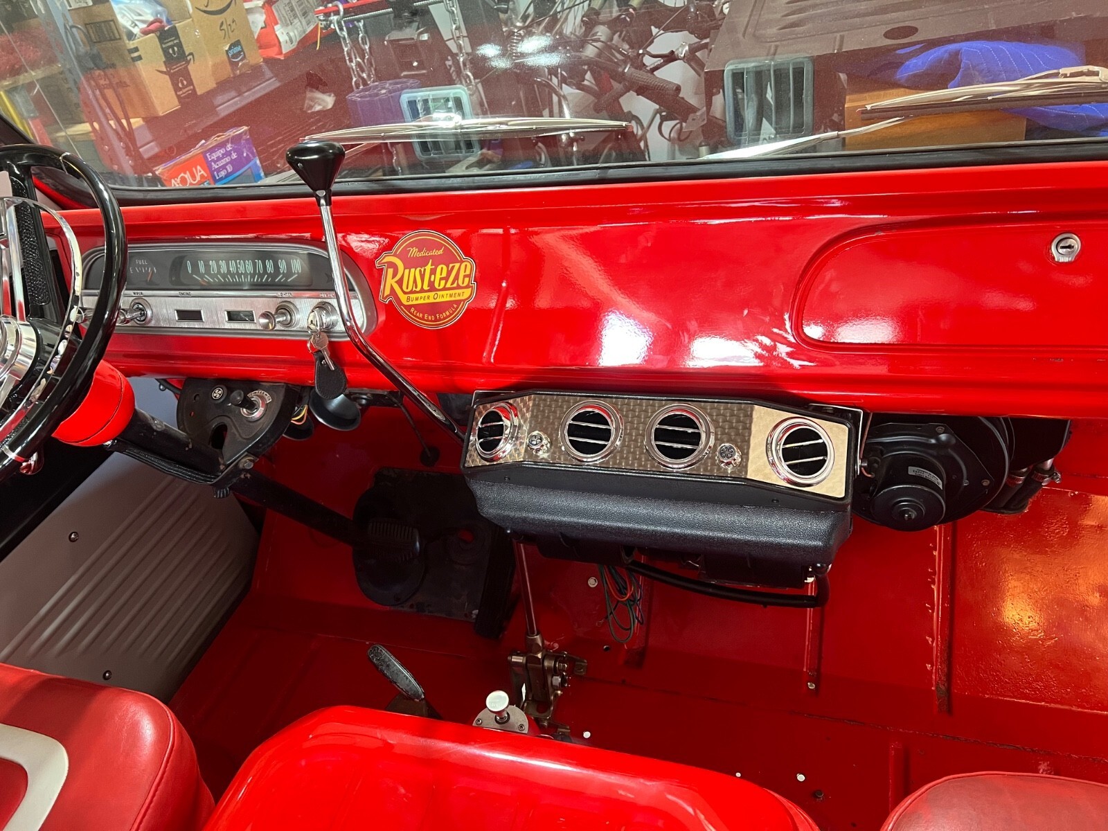 Fully Carpeted, with padding, Newer Upholstery on all seats and bench, Lap belts installed, Dash, floor, doghouse, etc. painted, dash radio delete, New Head liner, Fully insulated walls, and solar insulated ceiling, Two tone interior, grey and red combo, lower panels are a fiberglass used in commercial bathrooms, easy to clean, moisture and mold resistant. All top molded panels are original in great shape. New early old style 60's chevy Steering wheel 15", All new Stereo system 1000amp 4channel bluetooth (just hit play on your phone instead of a deck) with 4 three way 6x9 pioneer speakers. Stereo wired separate from vehicle wiring.