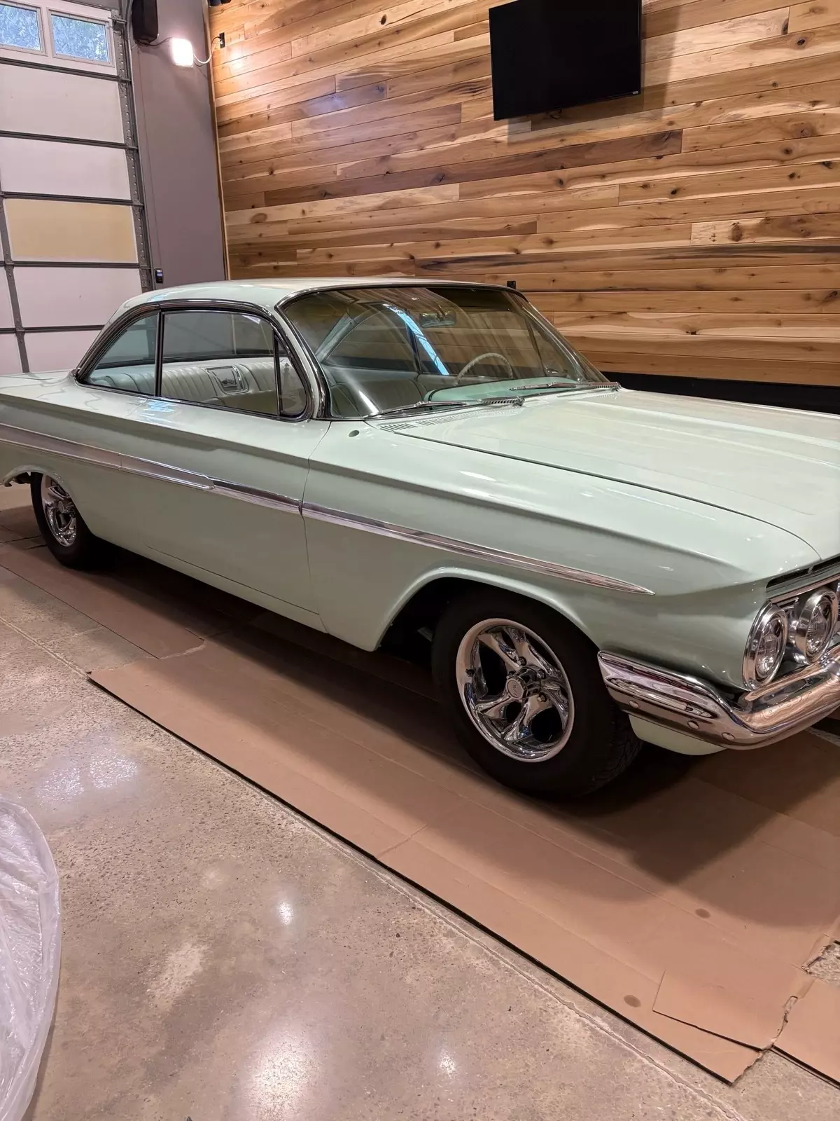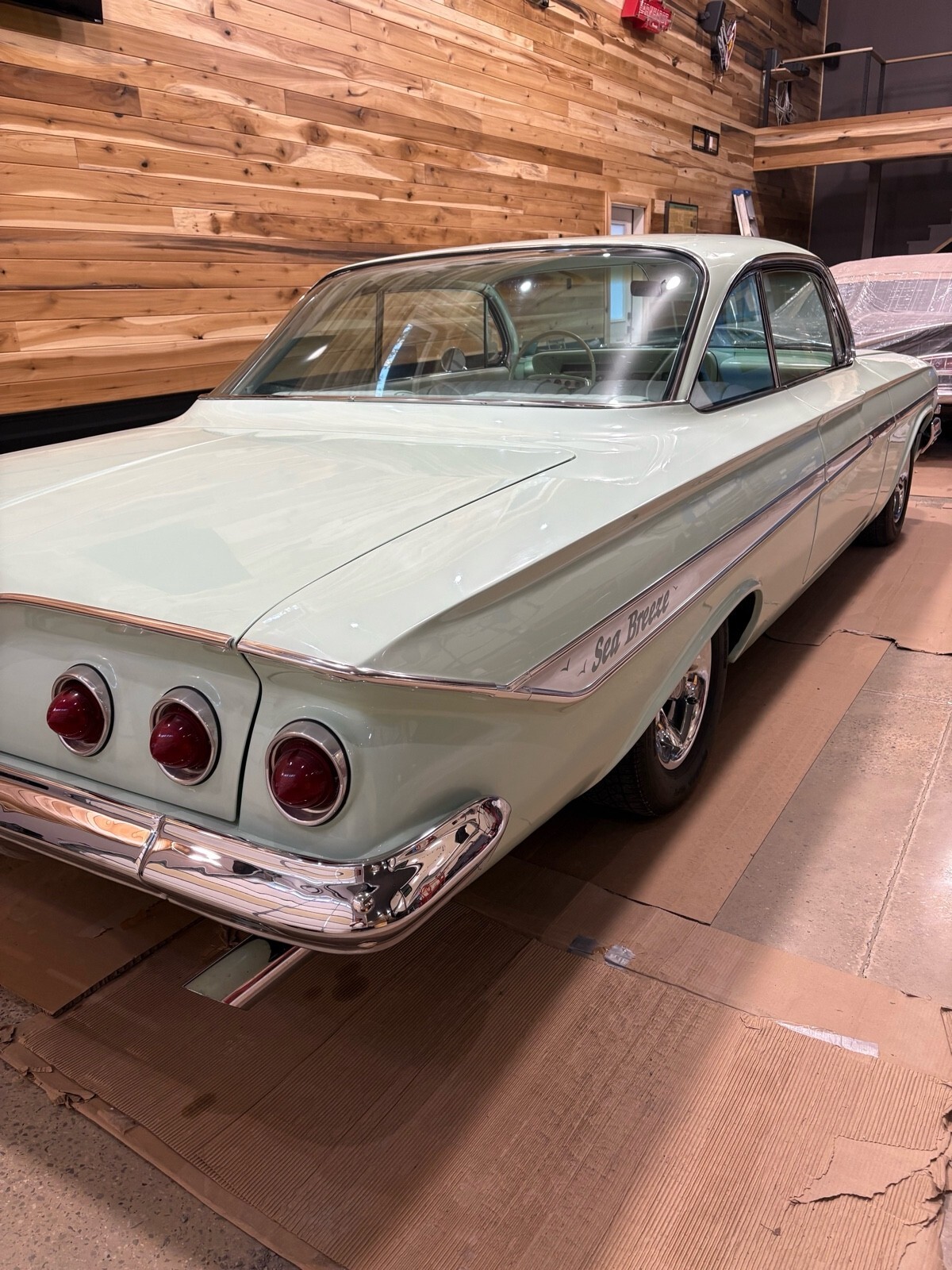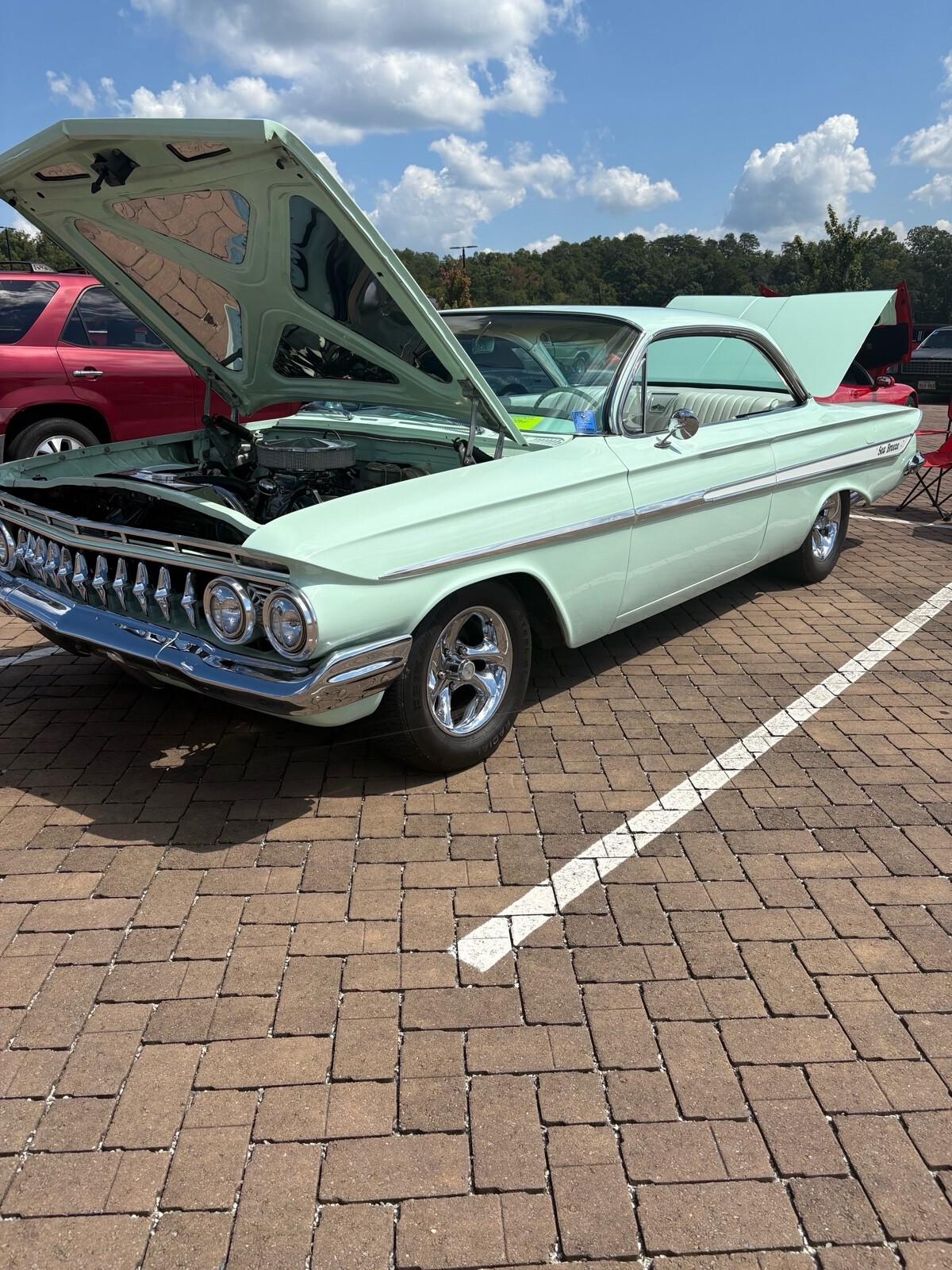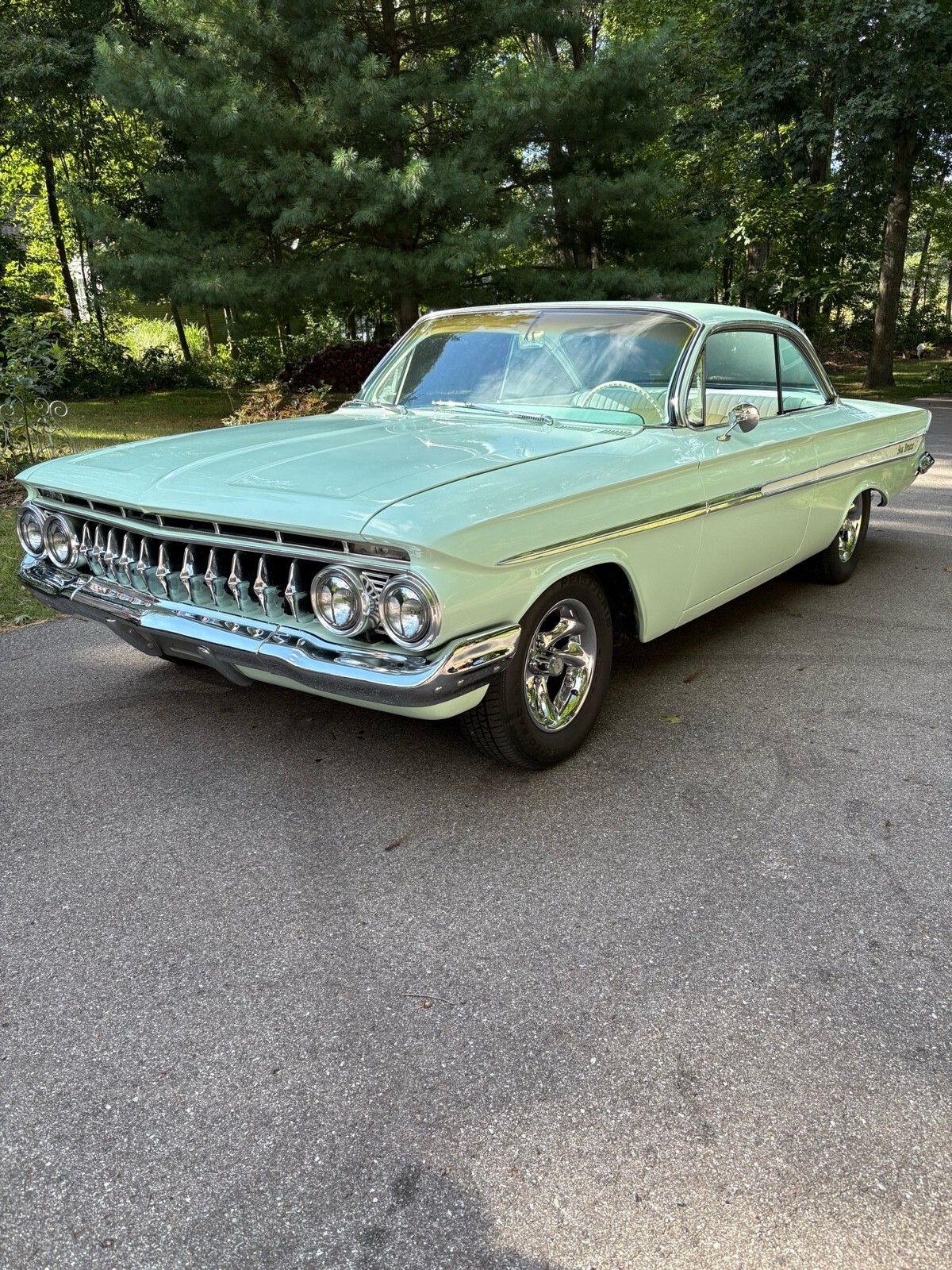 61 Impala 348/ 3speed automatic, sniper 2 EFI, power brakes, disc fronts, power rack and pinion steering, cold a/c, power frenched antenna, billit door handles and window cranks, electric doors and trunk opener, trunk upholstered to match interior, beautiful glass, custom corvette tooth grill,previous frame off restoration of a rust free straight car . Multiple show winner.