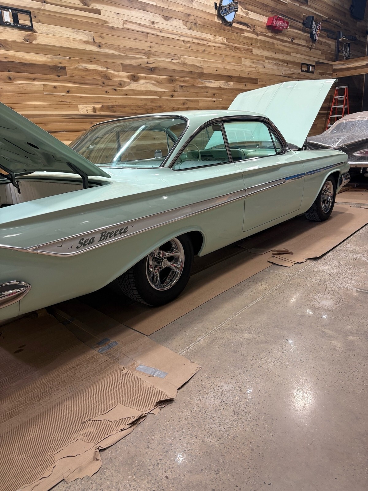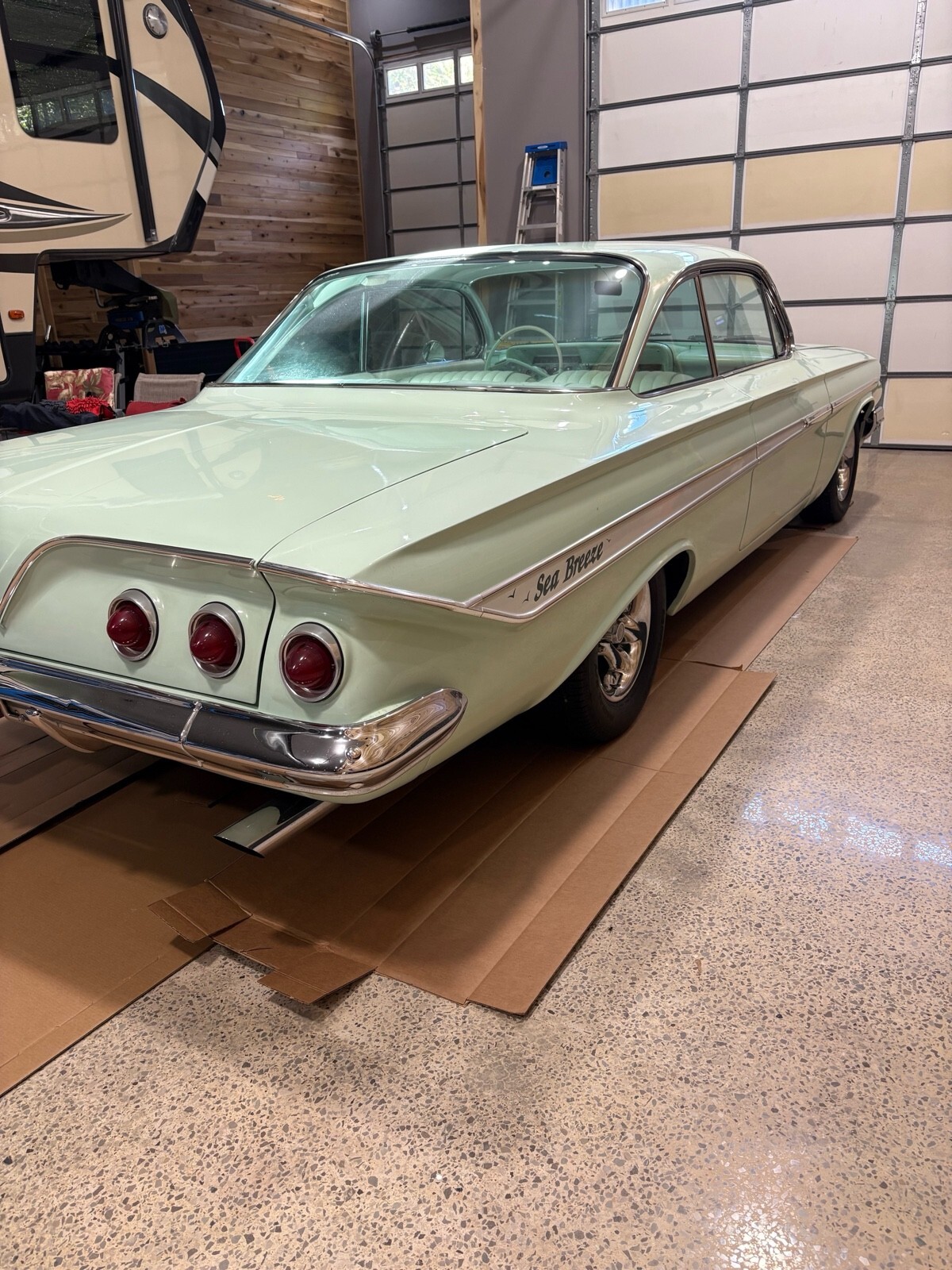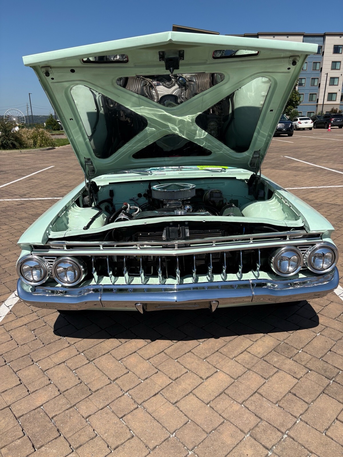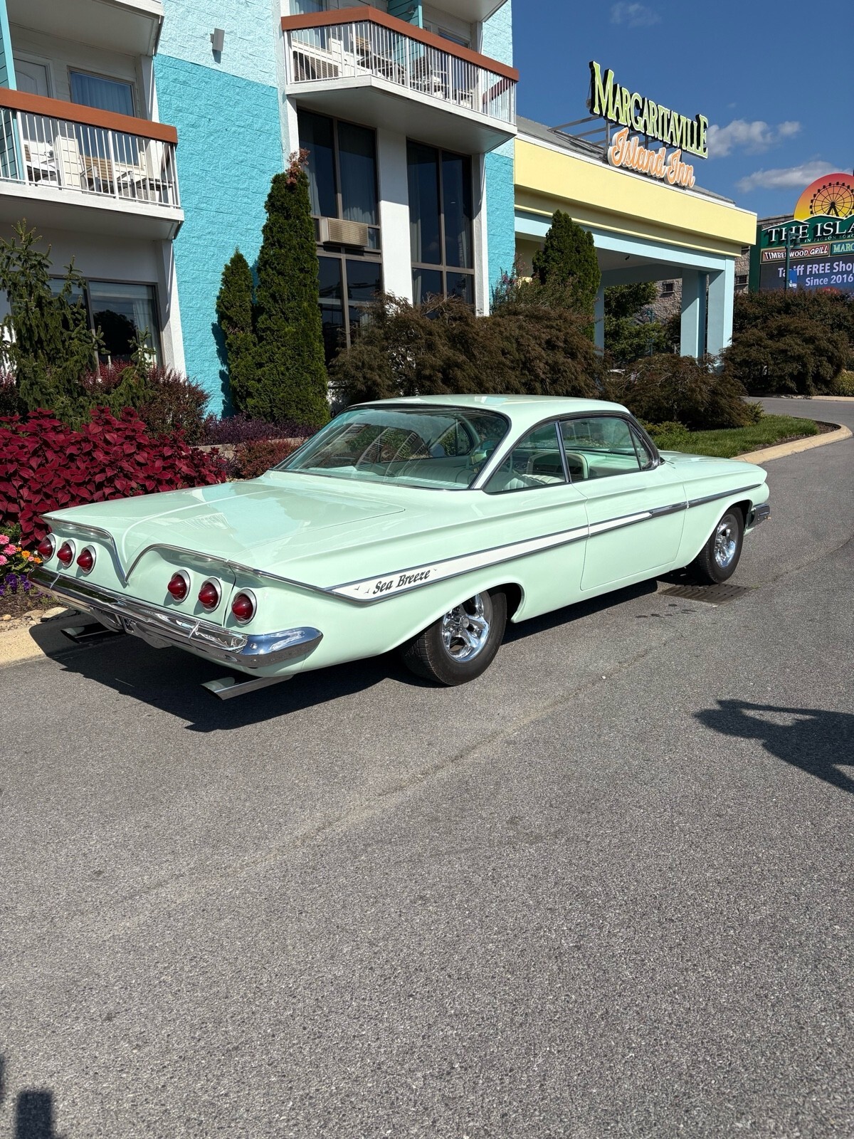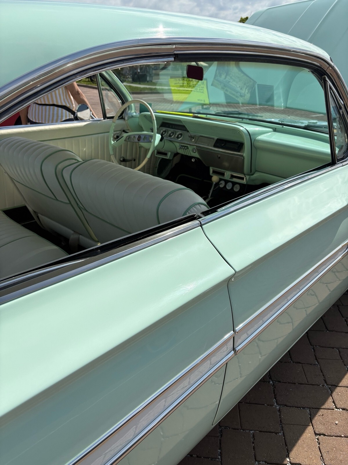 61 Impala 348/ 3speed automatic, sniper 2 EFI, power brakes, disc fronts, power rack and pinion steering, cold a/c, power frenched antenna, billit door handles and window cranks, electric doors and trunk opener, trunk upholstered to match interior, beautiful glass, custom corvette tooth grill,previous frame off restoration of a rust free straight car . Multiple show winner.