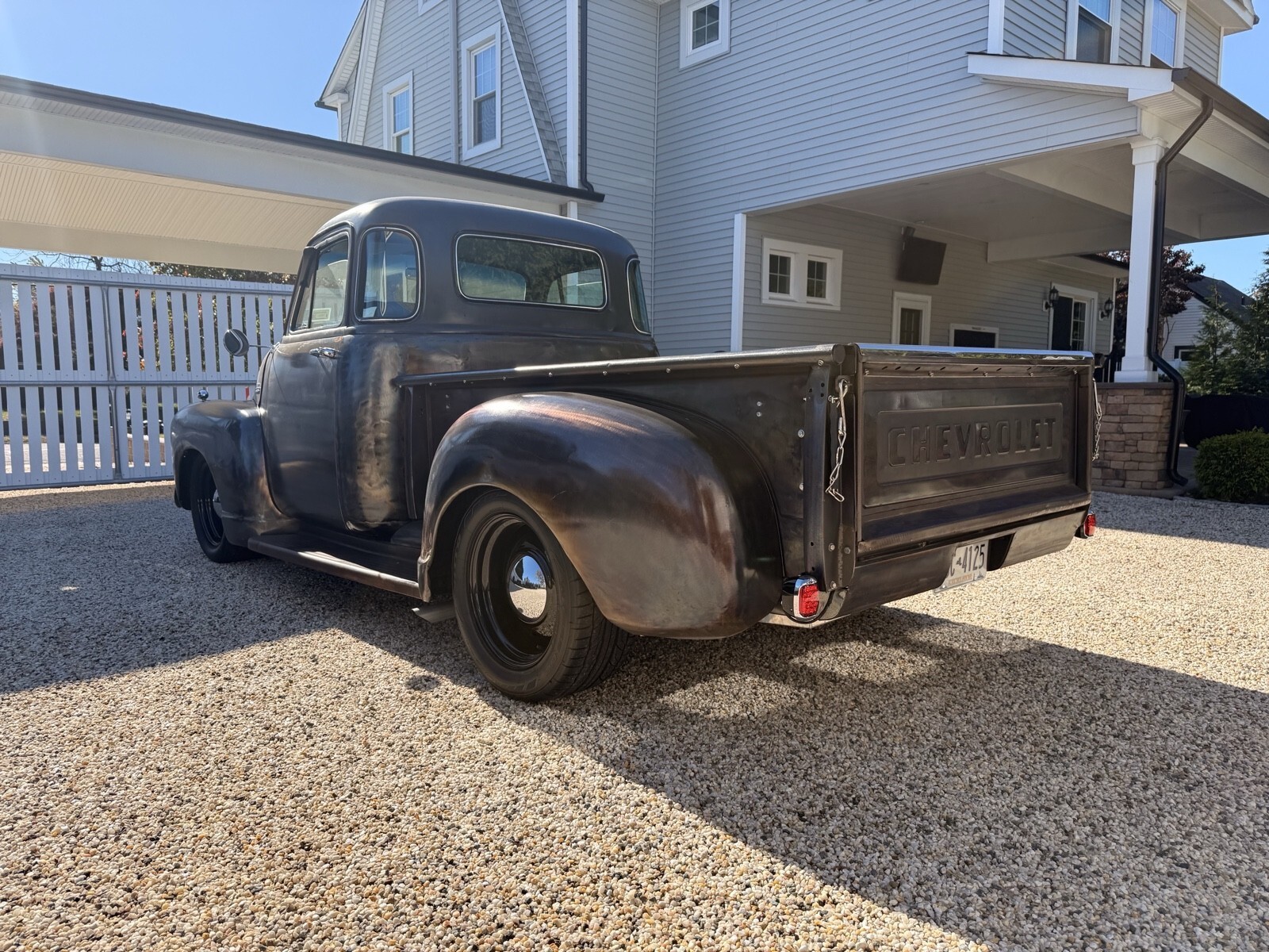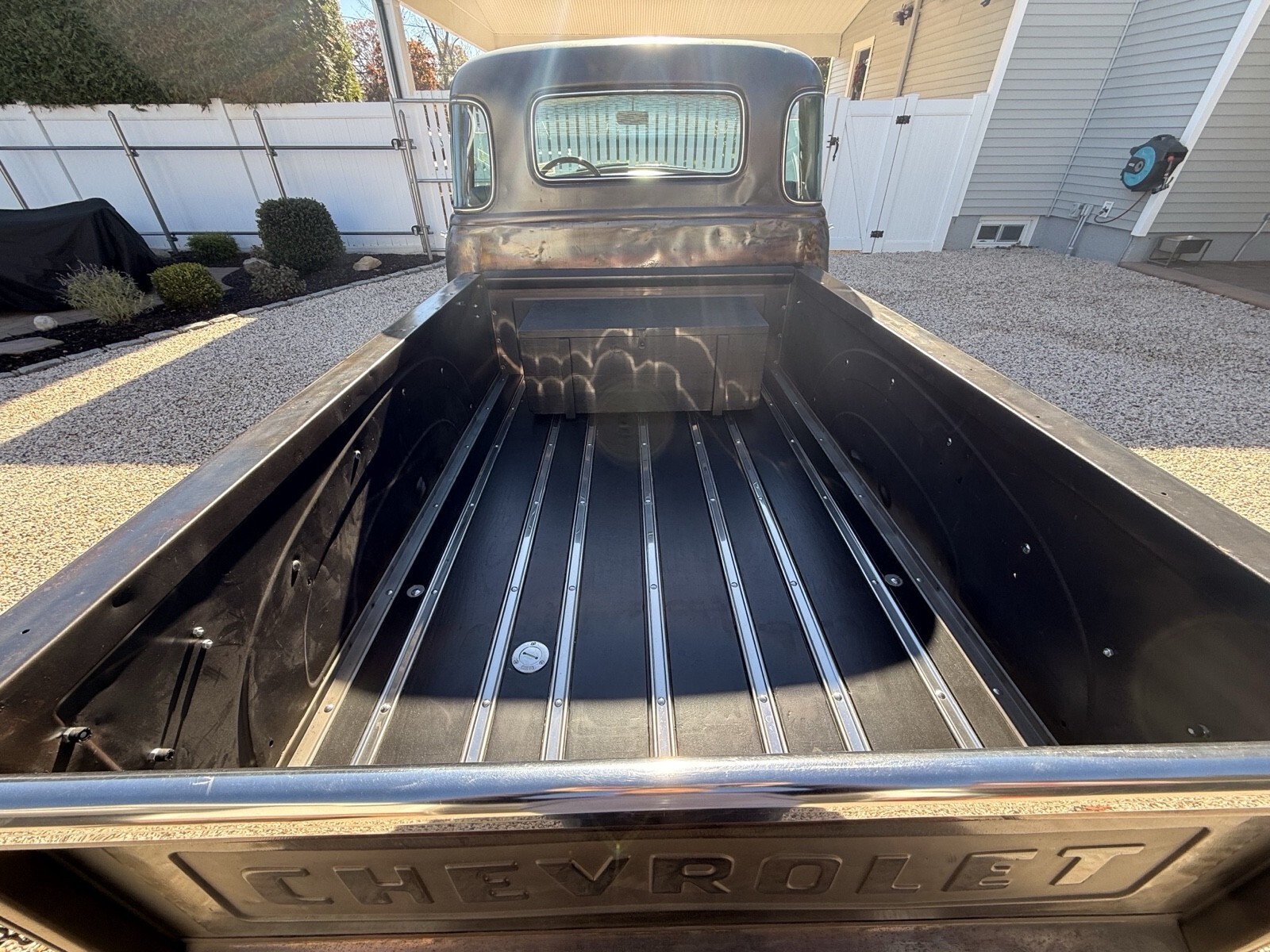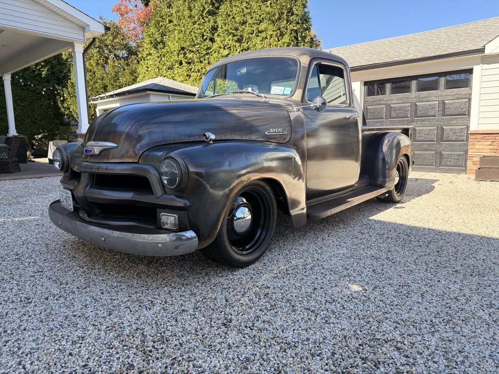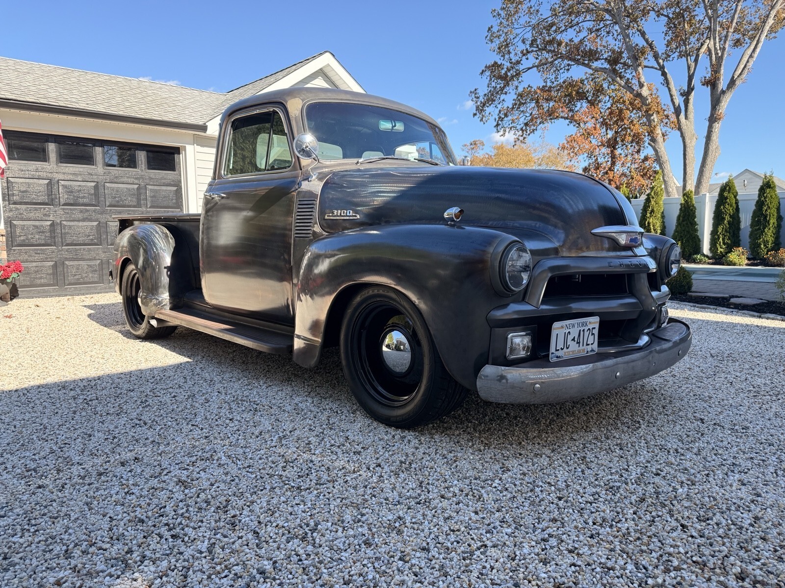 MAKE AN OFFER NEGOTIABLE Link to Video (Copy and Paste) Walkaround https://youtube.com/shorts/ie2El-6Vik4?feature=share Engine Running https://youtu.be/7xDh7w9o2s0 1954 3100 5 window clean all steel truck body has been grounded and heated blue, as well as satin clear coated, new windshield, side glass and back glass, corner windows are original in excellent condition, new rubbers and chrome lacing, new weather stripping and window felts, new side view mirrors, new door handles, original window door stainless moldings in excellent condition, hood ornament in good condition Hi-def LED headlights, new parking lights and lens; also has pair of cool blinker lights from a Harley Davison motorcycle, original grille has been painted charcoal gray, original patina front bumper, fuel tank has been moved to the rear very nice custom oak wood bed floor with stainless strips and hardware stainless tailgate chains with leather wrap custom rear roll pan, set of led tail lights. Inside of cab is charcoal gray Dakota Digital Classic look, complete up to date wire harness, turn signals and flashers, billet steering wheel, updated with 2 speed electric wipers, electric power steering, seat has also been nicely upholstered with blue and gray 2 tone leather, updated with seat belts, door panels have also been custom upholstered in blue and gray leather, new handles and window cranks, nice center console with cup holders and LoKar shifter; which works correctly with the 6 speed automatic trans, electronic accelerator, gray carpet and custom floor mats. Gen 5 2017 Silverado LT LS fuel injected motor, Brand new vintage ac and heat, electric power rack and pinion steering, power 4 wheel disc brakes, 6l80e automatic transmission with external cooler and fan Temperature controlled fans for Lt motors Computer is in medic box with fans inside the box Mustang II front suspension with rack and pinion, tubular upper and lower A-Arms, front sway bar, factory exhaust manifolds into 2 1/2 inch dual DynoMax stainless exhaust out the side, rear suspension has been custom done, boxed frame, 4 link suspension with fully adjustable coil overs, Ford 9 inch posi, disc brakes with drilled and slotted rotors. 17x8 Black Steelies Brand new nitro tires Bluetooth hidden audio and RF center speakers Truck drives like a dream and you can cruise anywhere you want anytime Everything is powder coated black with grade 8 hardware A black an fittings on entire truck Stainless steel upper and lower radiator hoses