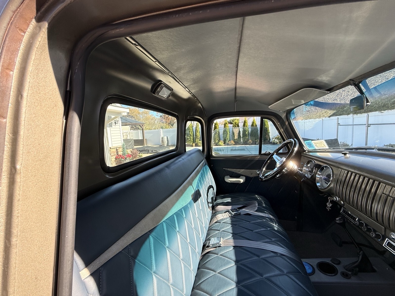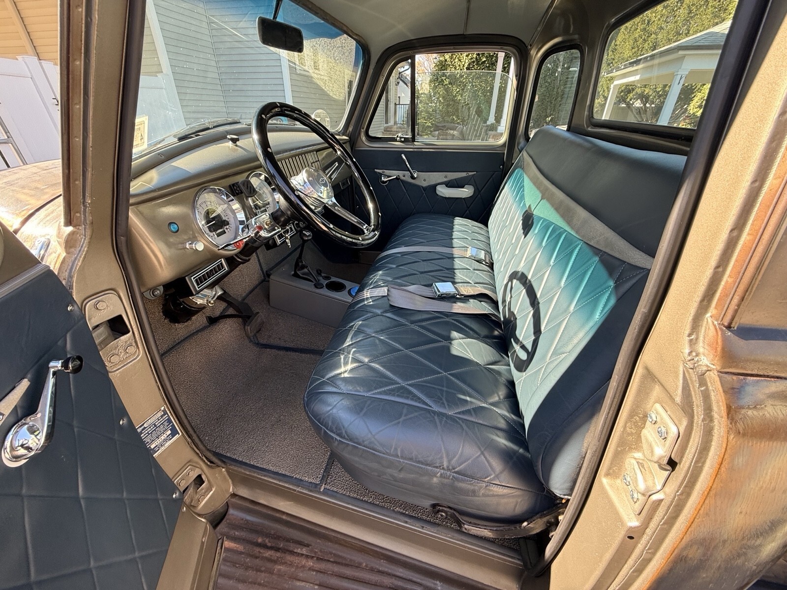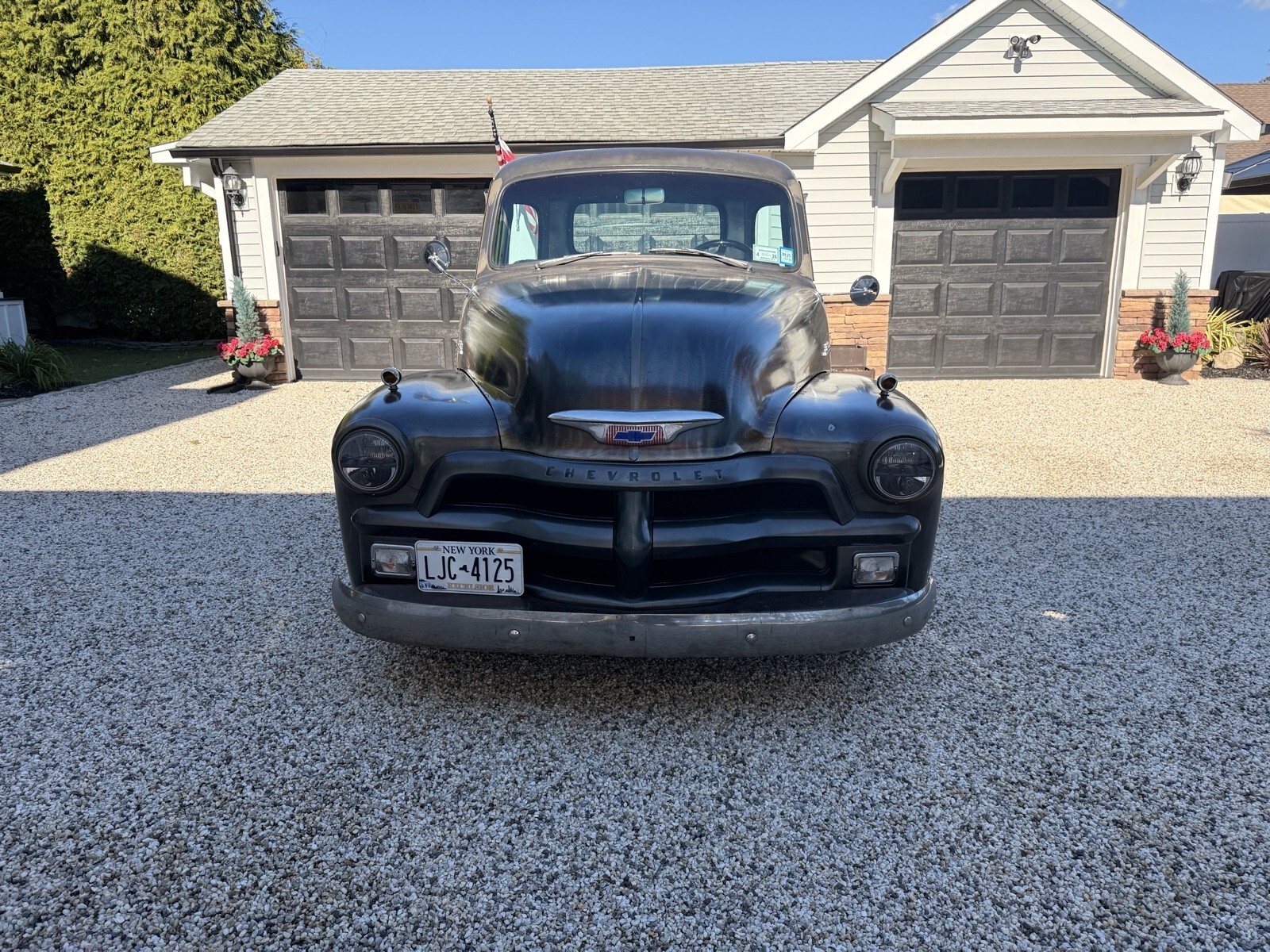 MAKE AN OFFER NEGOTIABLE Link to Video (Copy and Paste) Walkaround https://youtube.com/shorts/ie2El-6Vik4?feature=share Engine Running https://youtu.be/7xDh7w9o2s0 1954 3100 5 window clean all steel truck body has been grounded and heated blue, as well as satin clear coated, new windshield, side glass and back glass, corner windows are original in excellent condition, new rubbers and chrome lacing, new weather stripping and window felts, new side view mirrors, new door handles, original window door stainless moldings in excellent condition, hood ornament in good condition Hi-def LED headlights, new parking lights and lens; also has pair of cool blinker lights from a Harley Davison motorcycle, original grille has been painted charcoal gray, original patina front bumper, fuel tank has been moved to the rear very nice custom oak wood bed floor with stainless strips and hardware stainless tailgate chains with leather wrap custom rear roll pan, set of led tail lights. Inside of cab is charcoal gray Dakota Digital Classic look, complete up to date wire harness, turn signals and flashers, billet steering wheel, updated with 2 speed electric wipers, electric power steering, seat has also been nicely upholstered with blue and gray 2 tone leather, updated with seat belts, door panels have also been custom upholstered in blue and gray leather, new handles and window cranks, nice center console with cup holders and LoKar shifter; which works correctly with the 6 speed automatic trans, electronic accelerator, gray carpet and custom floor mats. Gen 5 2017 Silverado LT LS fuel injected motor, Brand new vintage ac and heat, electric power rack and pinion steering, power 4 wheel disc brakes, 6l80e automatic transmission with external cooler and fan Temperature controlled fans for Lt motors Computer is in medic box with fans inside the box Mustang II front suspension with rack and pinion, tubular upper and lower A-Arms, front sway bar, factory exhaust manifolds into 2 1/2 inch dual DynoMax stainless exhaust out the side, rear suspension has been custom done, boxed frame, 4 link suspension with fully adjustable coil overs, Ford 9 inch posi, disc brakes with drilled and slotted rotors. 17x8 Black Steelies Brand new nitro tires Bluetooth hidden audio and RF center speakers Truck drives like a dream and you can cruise anywhere you want anytime Everything is powder coated black with grade 8 hardware A black an fittings on entire truck Stainless steel upper and lower radiator hoses