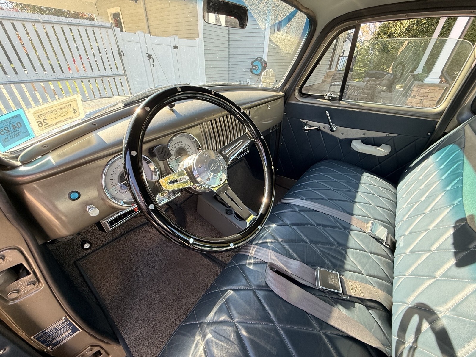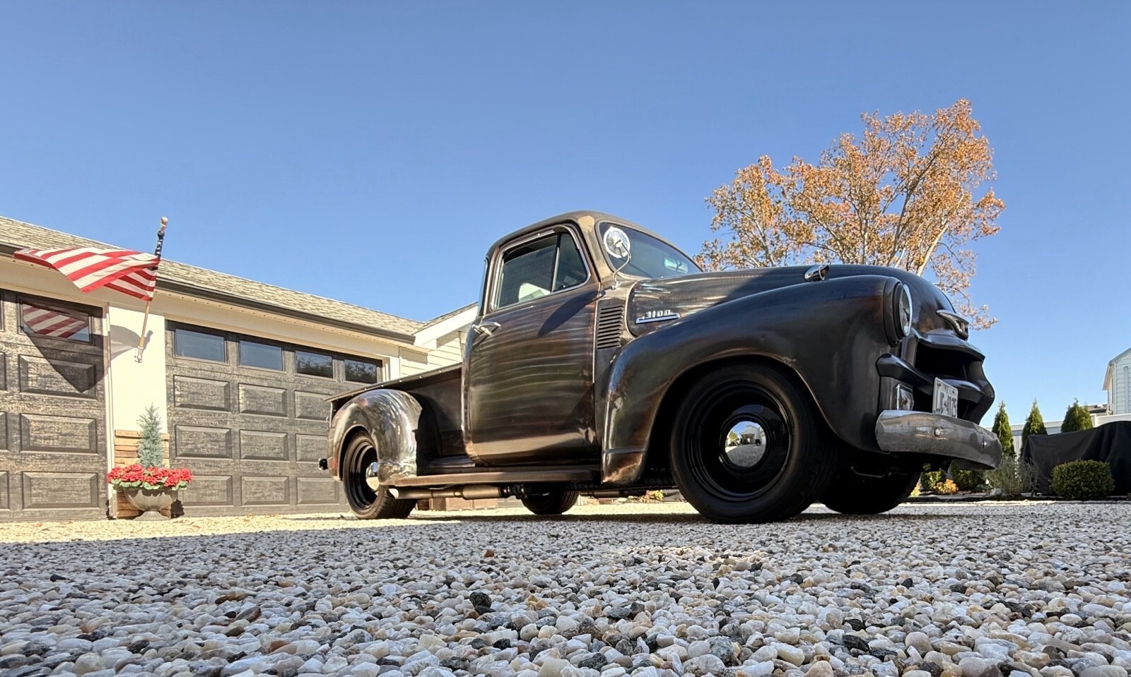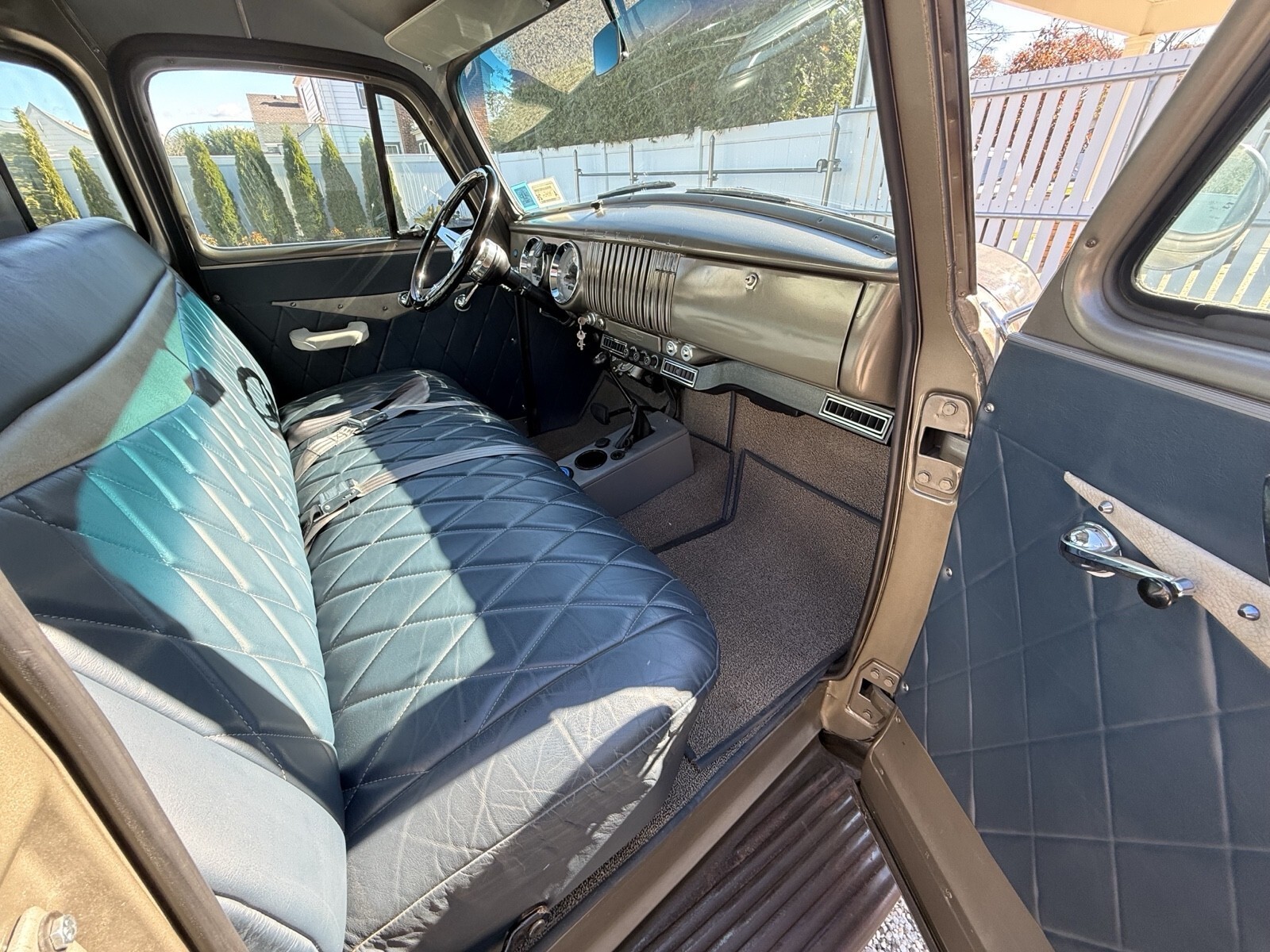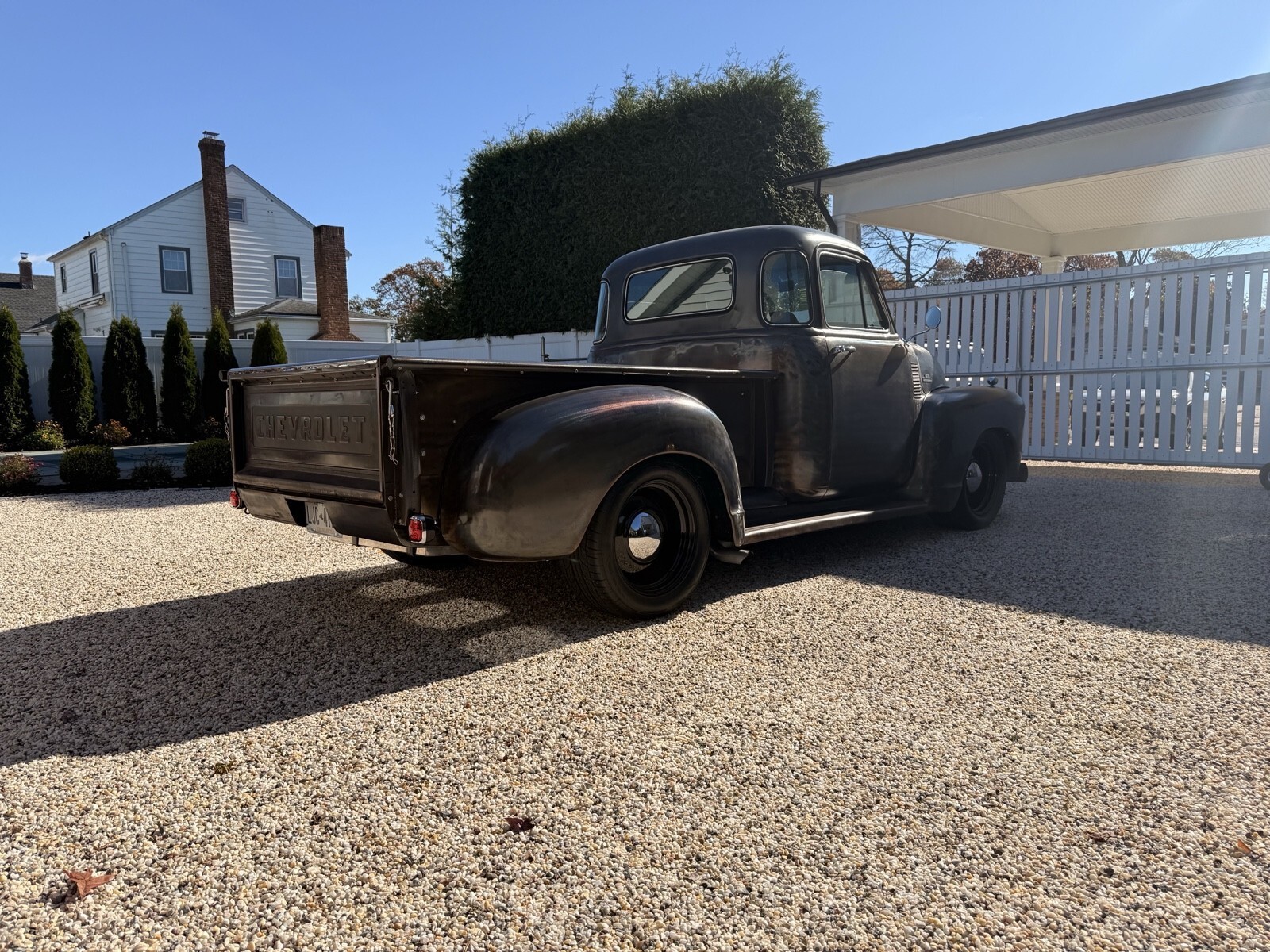 MAKE AN OFFER NEGOTIABLE Link to Video (Copy and Paste) Walkaround https://youtube.com/shorts/ie2El-6Vik4?feature=share Engine Running https://youtu.be/7xDh7w9o2s0 1954 3100 5 window clean all steel truck body has been grounded and heated blue, as well as satin clear coated, new windshield, side glass and back glass, corner windows are original in excellent condition, new rubbers and chrome lacing, new weather stripping and window felts, new side view mirrors, new door handles, original window door stainless moldings in excellent condition, hood ornament in good condition Hi-def LED headlights, new parking lights and lens; also has pair of cool blinker lights from a Harley Davison motorcycle, original grille has been painted charcoal gray, original patina front bumper, fuel tank has been moved to the rear very nice custom oak wood bed floor with stainless strips and hardware stainless tailgate chains with leather wrap custom rear roll pan, set of led tail lights. Inside of cab is charcoal gray Dakota Digital Classic look, complete up to date wire harness, turn signals and flashers, billet steering wheel, updated with 2 speed electric wipers, electric power steering, seat has also been nicely upholstered with blue and gray 2 tone leather, updated with seat belts, door panels have also been custom upholstered in blue and gray leather, new handles and window cranks, nice center console with cup holders and LoKar shifter; which works correctly with the 6 speed automatic trans, electronic accelerator, gray carpet and custom floor mats. Gen 5 2017 Silverado LT LS fuel injected motor, Brand new vintage ac and heat, electric power rack and pinion steering, power 4 wheel disc brakes, 6l80e automatic transmission with external cooler and fan Temperature controlled fans for Lt motors Computer is in medic box with fans inside the box Mustang II front suspension with rack and pinion, tubular upper and lower A-Arms, front sway bar, factory exhaust manifolds into 2 1/2 inch dual DynoMax stainless exhaust out the side, rear suspension has been custom done, boxed frame, 4 link suspension with fully adjustable coil overs, Ford 9 inch posi, disc brakes with drilled and slotted rotors. 17x8 Black Steelies Brand new nitro tires Bluetooth hidden audio and RF center speakers Truck drives like a dream and you can cruise anywhere you want anytime Everything is powder coated black with grade 8 hardware A black an fittings on entire truck Stainless steel upper and lower radiator hoses