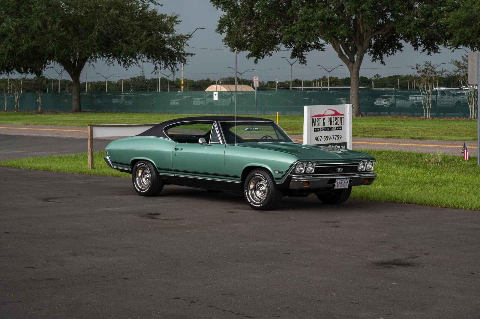 1968 Chevrolet Chevelle SS 396 (138 VIN), Numbers Matching Finished in its correct factory Code H Grecian Green with a black vinyl top and black interior, this genuine 138-code Super Sport checks all the boxes for originality, presentation, and pedigree. Under the hood sits the numbers-matching 396/325 HP big block V8, paired with factory power steering and power brakes for a confident driving experience. This Chevelle retains its original sheet metal, including the factory floors and trunk pan, and was professionally restored using high-quality GM chrome and trim sourced from Ausley Chevelle in North Carolina. The body remains laser straight with very nice paint that presents beautifully today. The interior showcases factory details throughout, including bucket seats, a factory tach and gauge package, tinted glass, and an AM/FM radio. Riding on 8-inch GM Rally wheels with Cooper Cobra White Letter Radial Tires, this Chevelle captures the classic muscle car stance perfectly. A true icon of the muscle car era, this numbers-matching 1968 SS 396 represents the best of Chevrolet performance and styling. it’s a fantastic example ready for both show and go. While we do our best to provide the highest quality muscle cars with an honest and reliable description and realize the importance of transparency when selling vehicles. That being said, we have not built, modified, changed or personally owned this vehicle. Whether this vehicle is consigned or owned by Past & Present Motor Cars we do not know the vehicles complete history since new. We want to be clear and try to answer any questions our customers might have prior to purchasing. Additionally, we not only welcome but we encourage 3rd party independent inspections. Please inquire prior to purchase to make sure the advertised vehicle has not already been sold. We list our vehicles on multiple websites and a vehicle can sell at any time. If a customer chooses to purchase sight unseen (many of our customers choose this option) the customer accepts the vehicle AS IS and WHERE IS and understands we cannot address concerns after purchase. For this reason, it's important all concerns are addressed prior to purchase. We make every effort to present accurate and reliable information, but use of this information is voluntary, and should only be deemed reliable after an independent review of its accuracy, completeness, and timeliness. It is the sole responsibility of the customer to verify the existence of options, accessories and the vehicle condition before time of sale. Financing is Available with low rates and Vehicle Shipping is available from our Showroom to your Garage. A Classic Car Warranty is Available for Purchase from a 3rd Party. Please speak to our Sales Associate or Company Representative for more information. Our team is working and available anytime by Phone or Text for your convenience at 407-559-7759. Thank you for your interest!