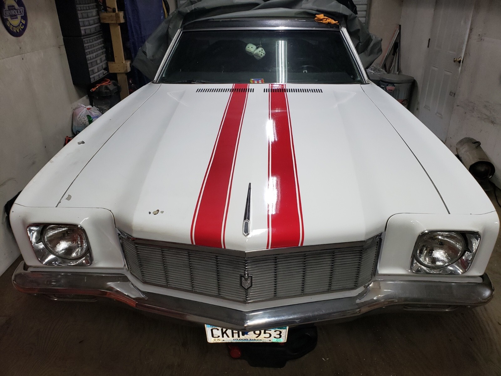 Car has sunroof vynil top removed have new black vinyl top for it now has bucket seats and b&m ratchet shifter 20” rallys wider in back rims dual exhaust long tube headers straight pipe sounds nice exhaust hangers need be welded back up needs front brake pads interior work carpet headliner needs replacement engine has erson cam 4 barrel edelbrock 600 electric choke carb hei distributor new wires plugs water pump alternator radiator and hoses new vacuum lines clean engine compartment new steering box upper lower control arms tie rods stabilizer links ball joints alot work done on it new front windshield body needs work and paint decent project have it insured with hagerty collector insured guaranteed value 20k as is right now anyway solid frame floors trunk car has bodywork on it and needs rear window seal leaks little sunroof to like said project you can drive anywhere clean title main pic is how car looks now and interior other ones was before having trouble loading pics any?s three eBay I will send more pics or add to listing car is sold as is use pics as description I reserve the right to end auction or listing at any time if sold 500 none refundable deposit and remaining amount in 3days thanks you for looking and bidding