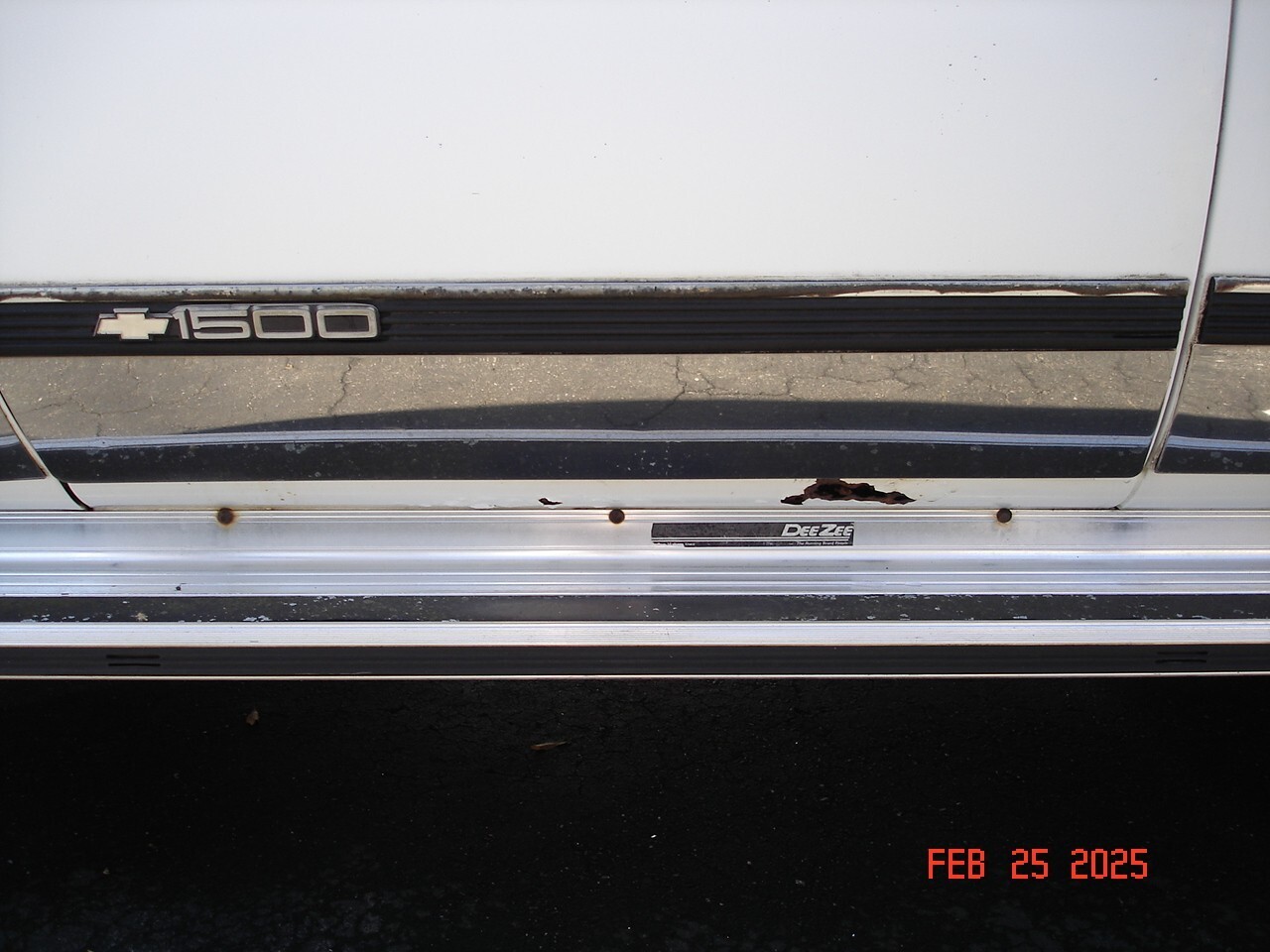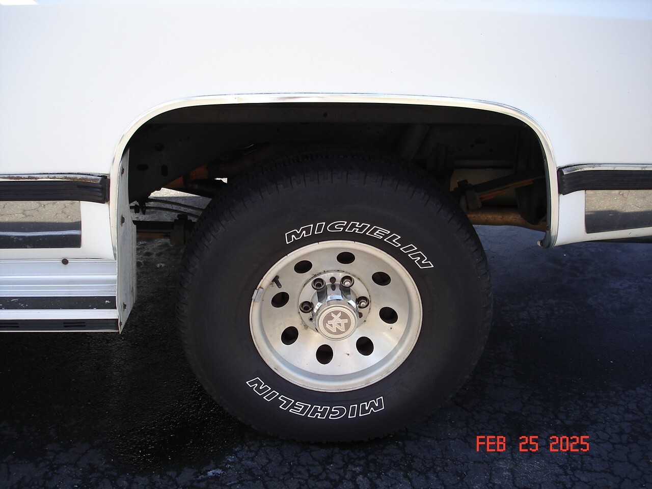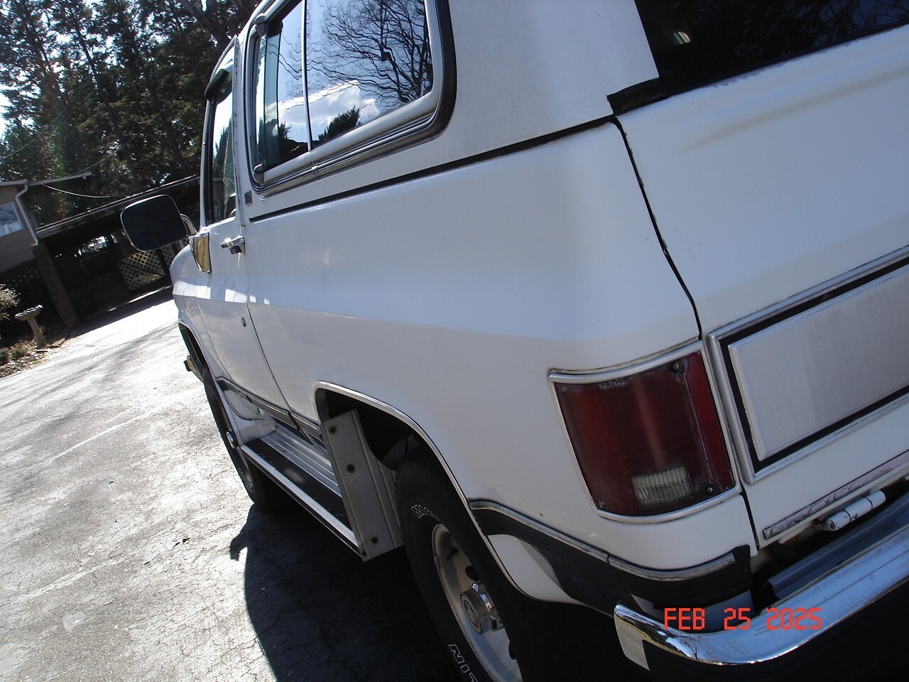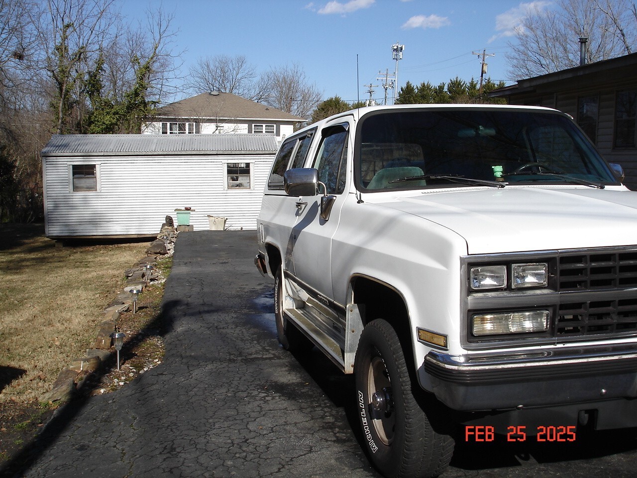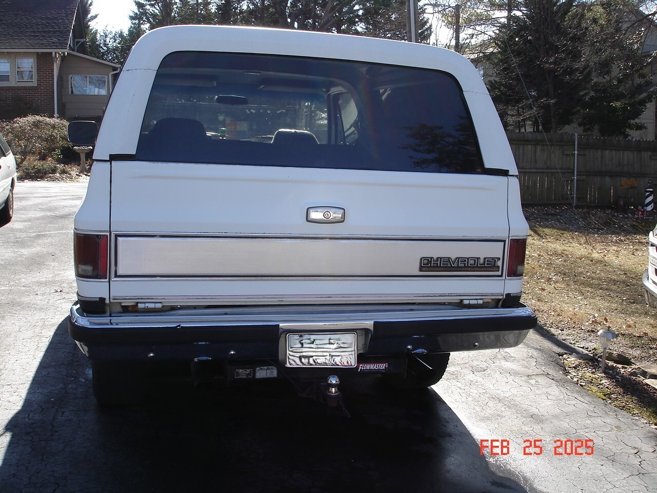 The 1989 Chevrolet Blazer with running boards has a blue interior and white exterior and is a classic SUV featuring a 5.7L V8 engine, automatic transmission, and is a 4WD drive. This vehicle is a 1 owner and has a mileage of 194,500. It comes with various features such as power windows, air conditioning (does not work), cruise control, radio with cassette player (does not work) and a trailer hitch. The Blazer also has cloth seats, a tilt steering wheel, and power steering, making it a comfortable and versatile option for off-road adventures or everyday use. It is a true square-body classic with all original features including the spare tire that has never been used, user manual and strong mechanical performance. It is perfect for collectors, off-roaders (even though it has never been off road), or for restoration enthusiasts. The removeable top has never been removed!