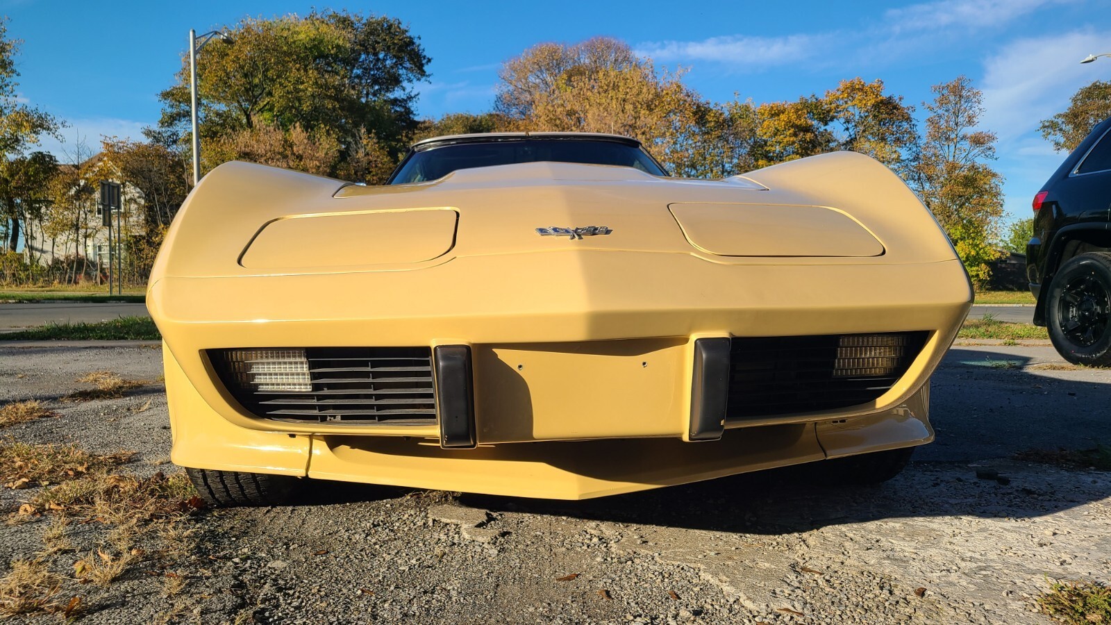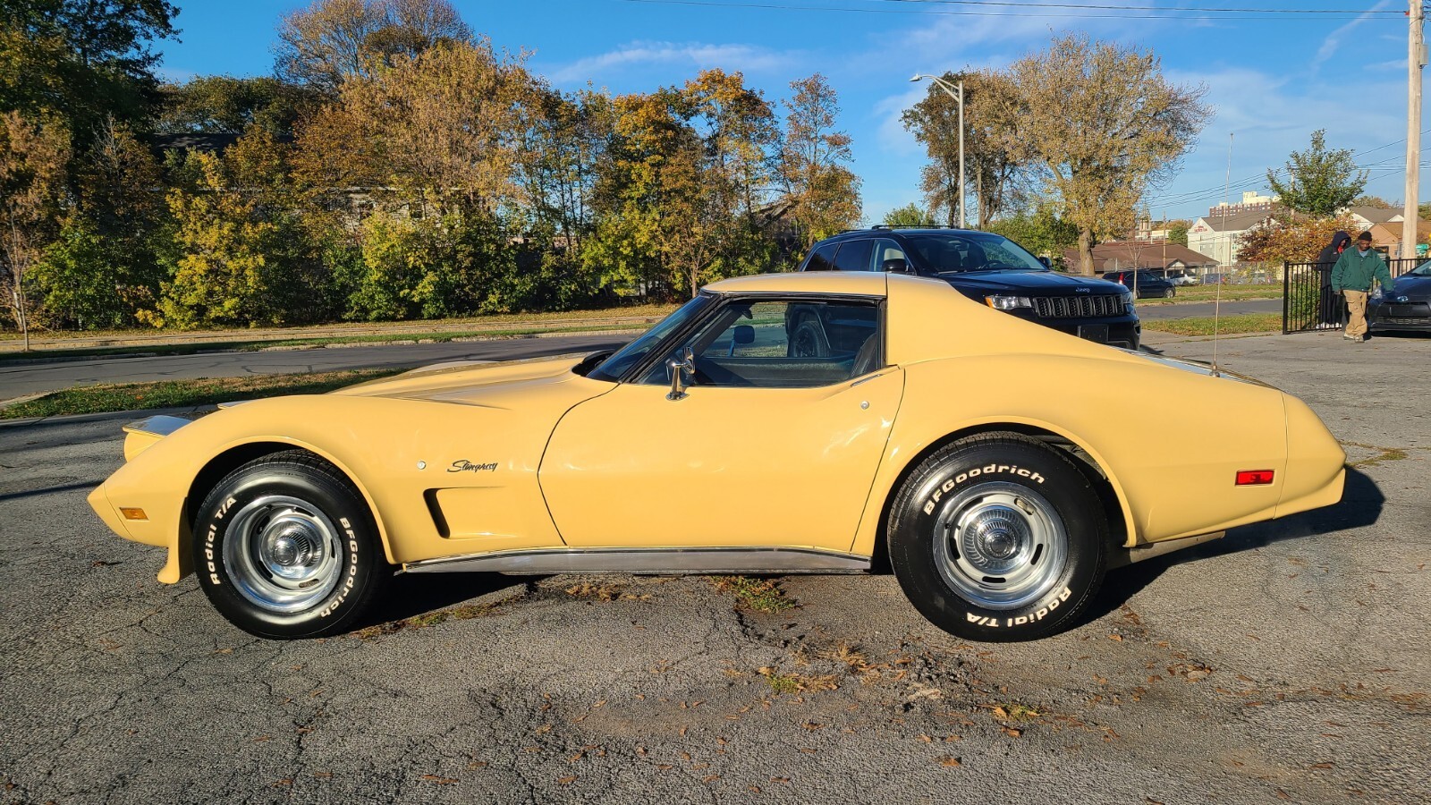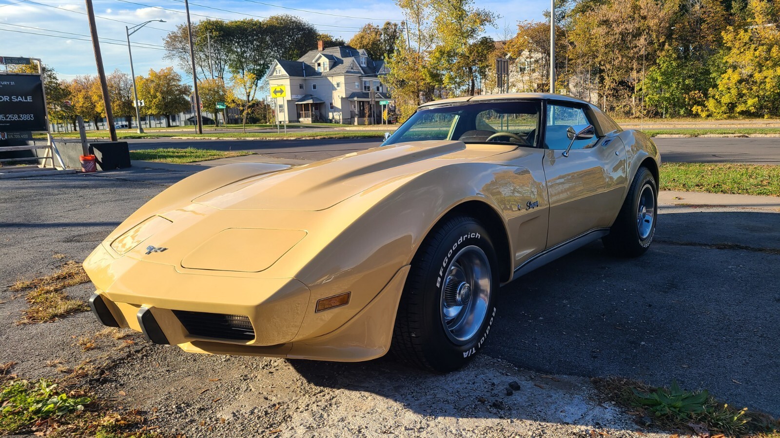1977 Chevrolet Corvette with T-Tops and a nice brown leather interior and tan exterior. This iconic car features an 8-cylinder engine, automatic transmission, and a 5.7L engine size.