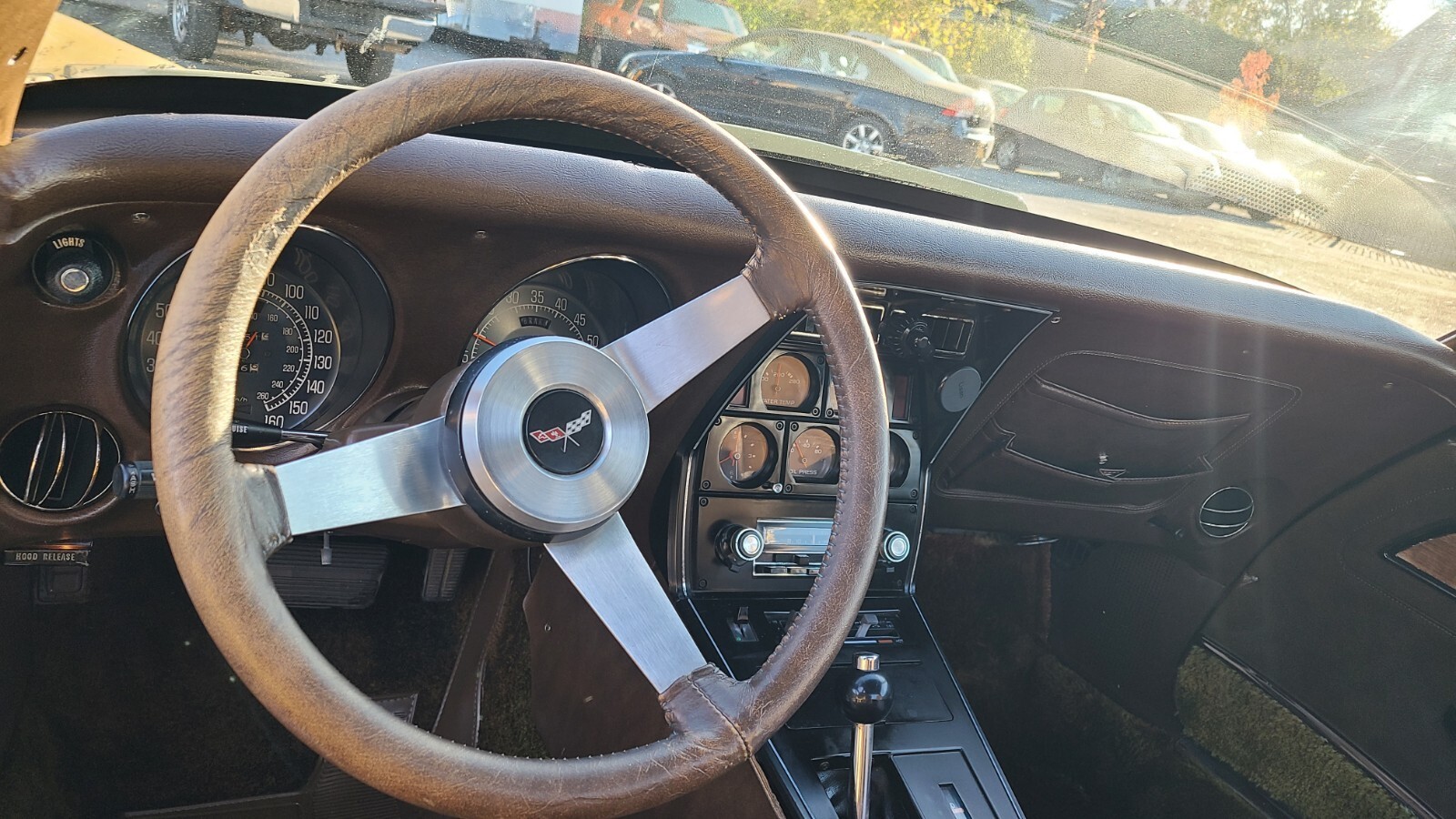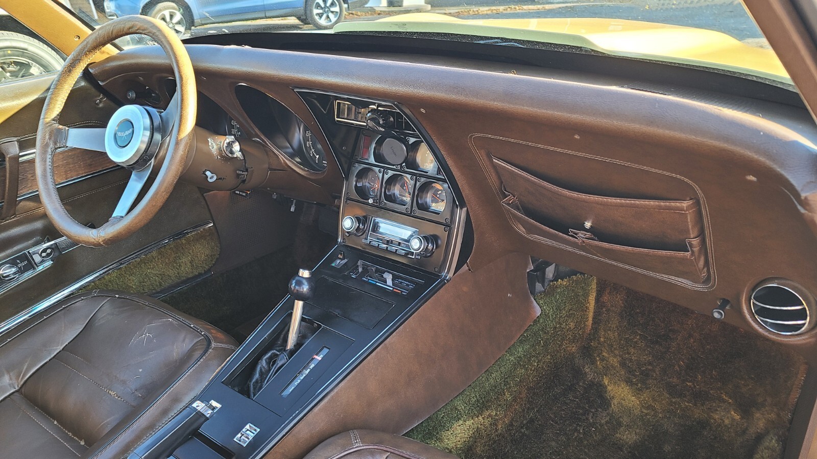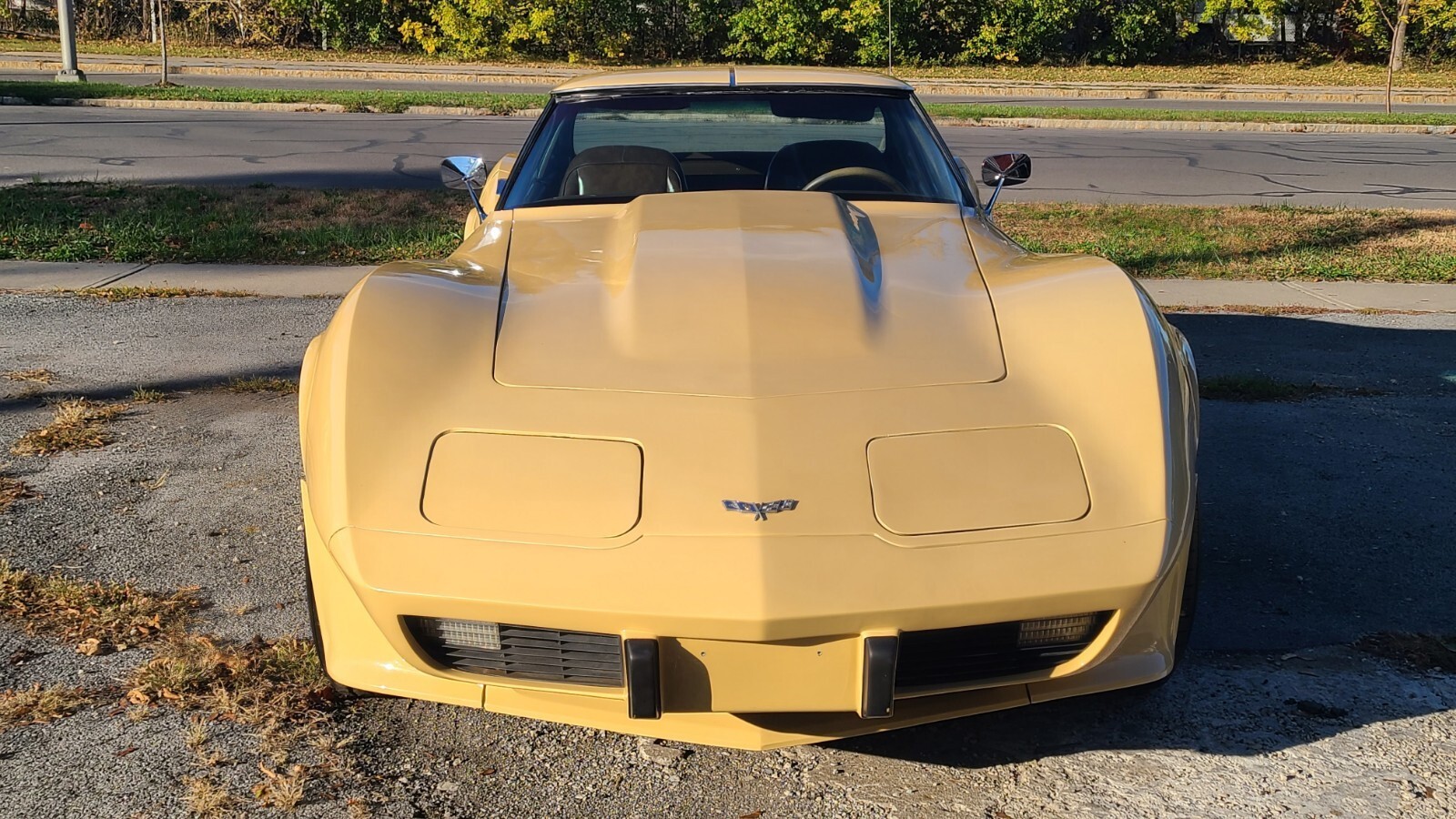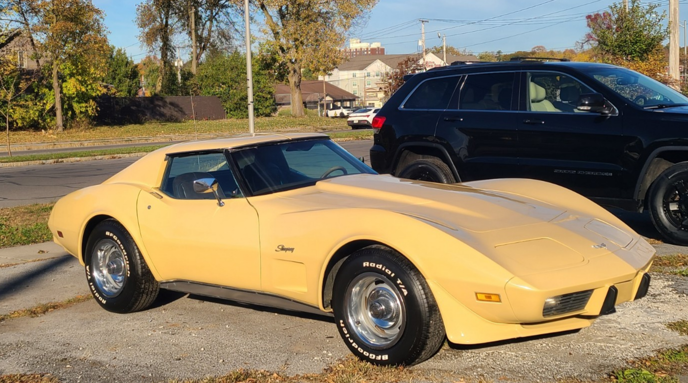 1977 Chevrolet Corvette with T-Tops and a nice brown leather interior and tan exterior. This iconic car features an 8-cylinder engine, automatic transmission, and a 5.7L engine size.