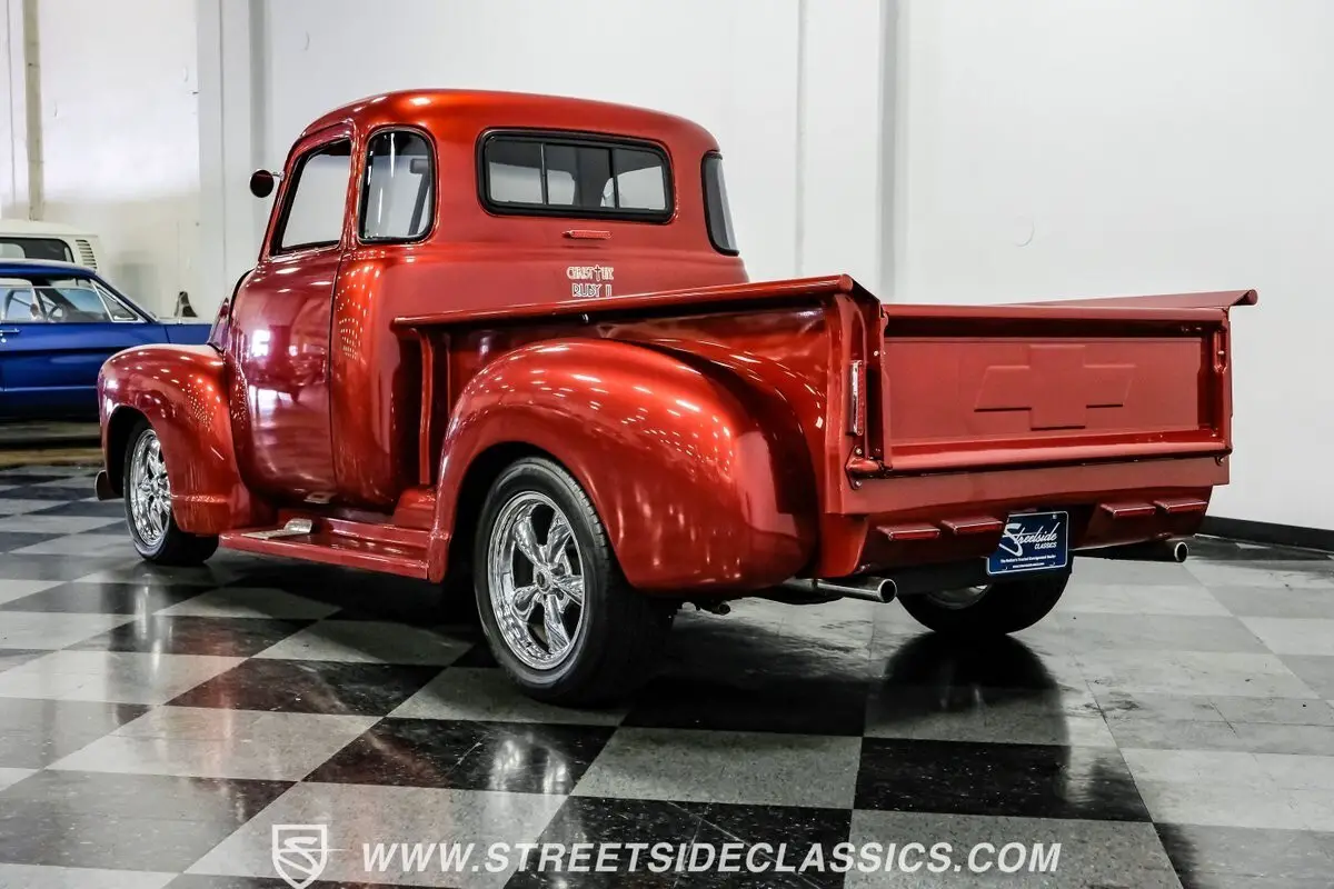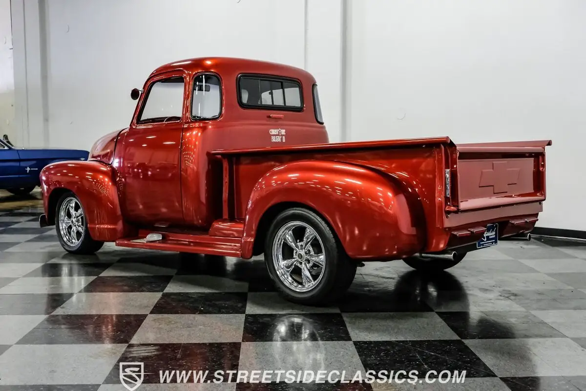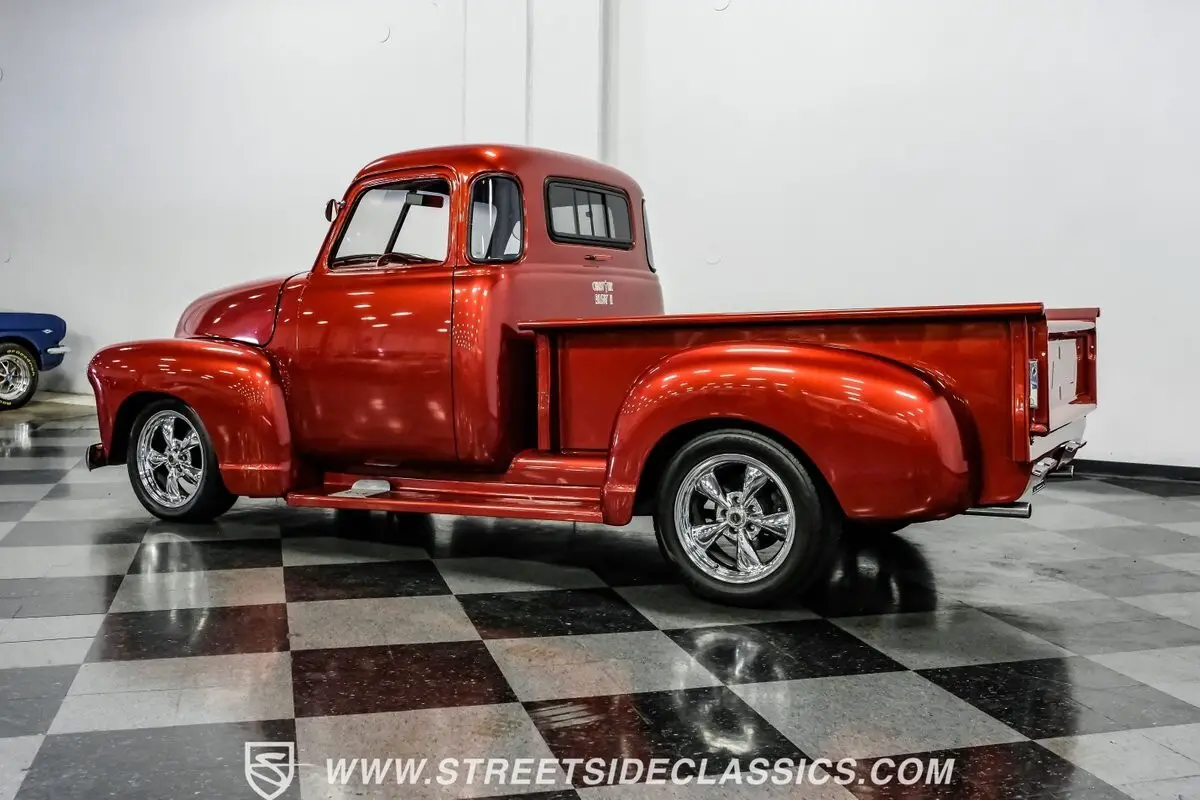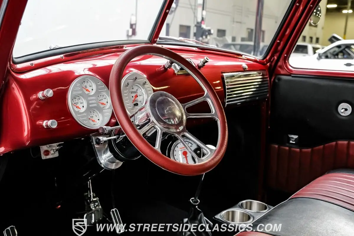 • 383 Stroker V8 w/ Holley carb, Pro Comp intake, Edelbrock heads • TH350 Three speed automatic transmission with Lokar shifter • 9 inch rear axle, 3.50 gearing with 31 spline axles. • Aluminum radiator, and electric fans • Mustang II style front suspension with tubular A-arms, leaf springs in rear, and front and rear sway bars. • Four wheel disc brakes • Power steering • 17 inch American Racing wheels with Toyo tires: 225/50R17 front and 235/55R17 rear. • LED headlights and taillights, sliding rear glass, and a custom bow tire tailgate. • Fuel tank relocated under the bed • Receipts and documentation with a second key and remote fob included. This 1950 Chevrolet 3100 5 Window delivers classic looks, upgraded performance, and a comfortable interior that makes it ready for many weekends of enjoyment. Call today!