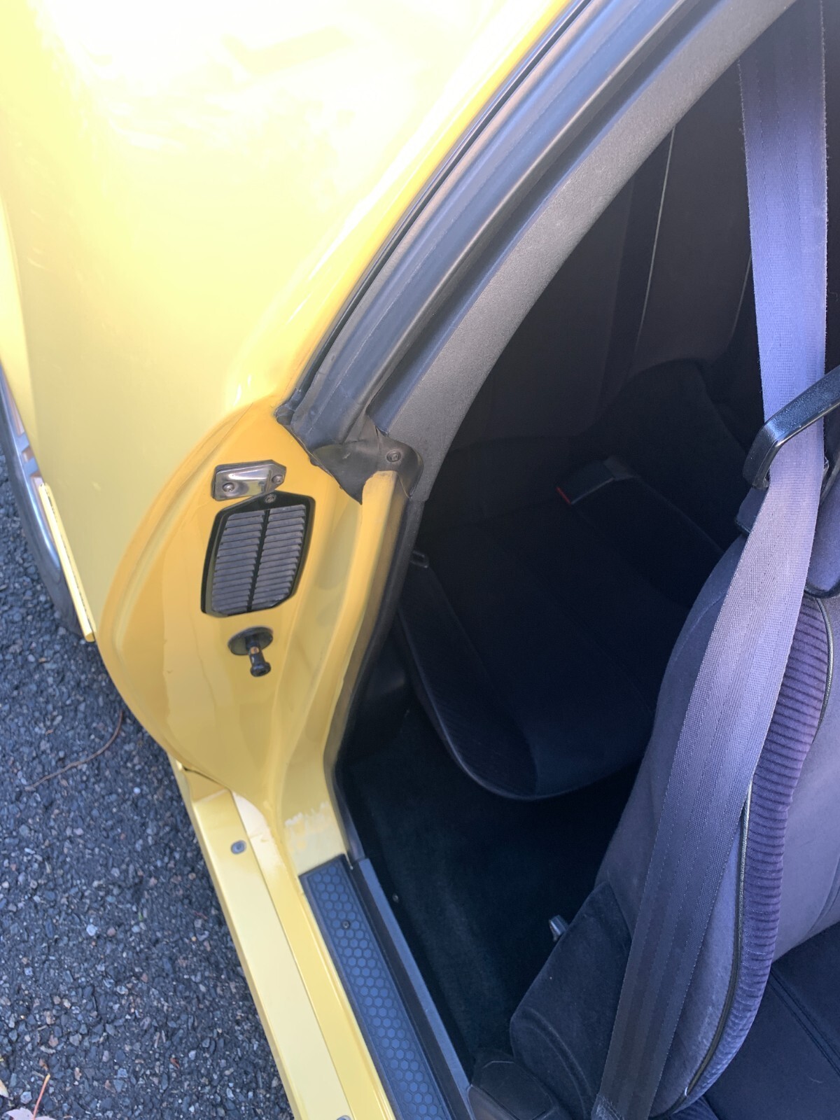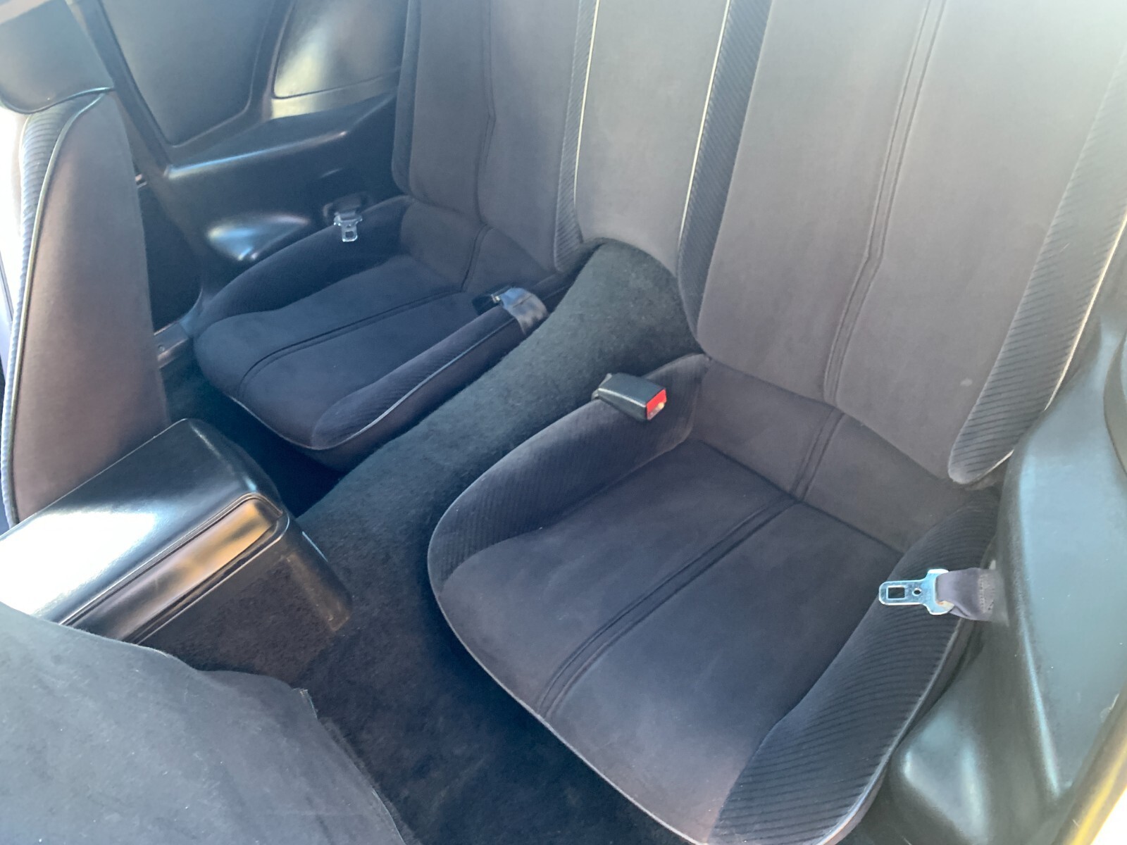 Interior: The beautiful black interior is considered in very good condition. No rips or tears in the seats or cracks in the dash. There is one crack in the passenger’s door front top trim. The center console looks great with no cracks or staining. All factory belts are present and in very good condition. Power door locks and power windows are in working order. All gauges are working. A/C is working. Original radio works off and on. (Appears to be a loose speaker wire).