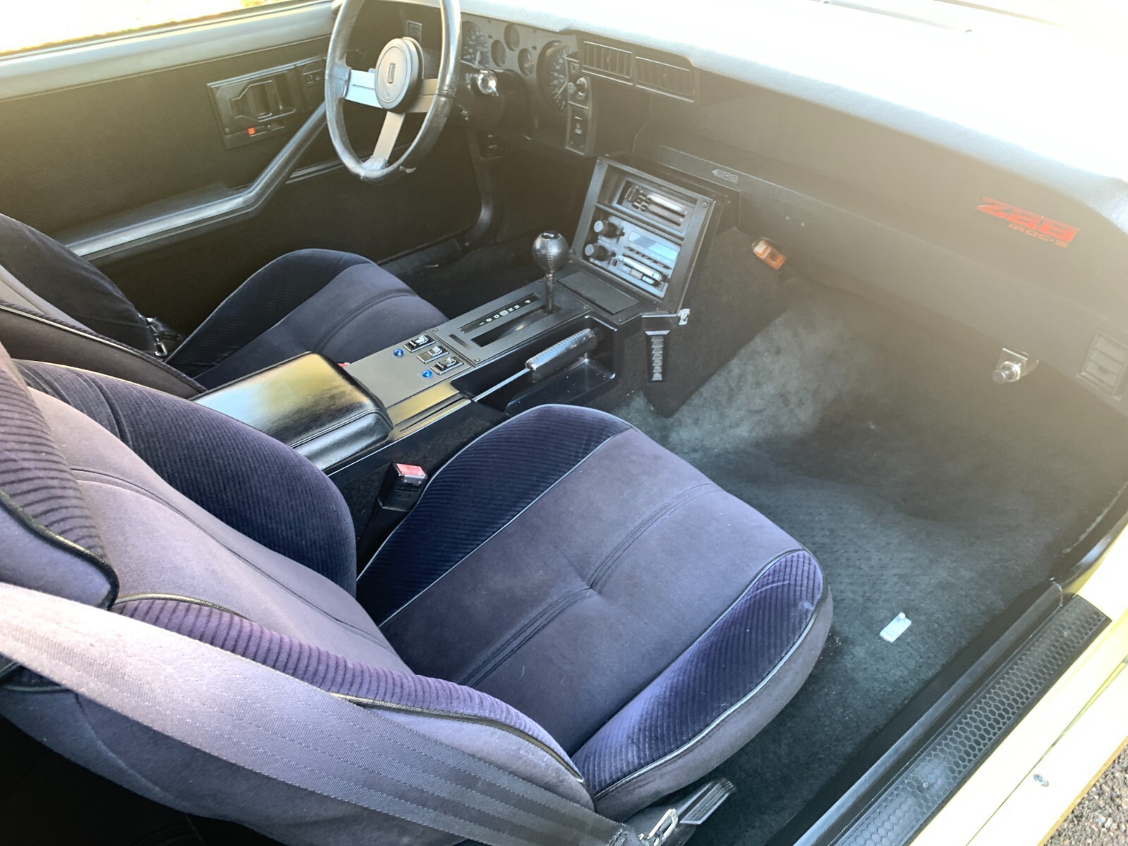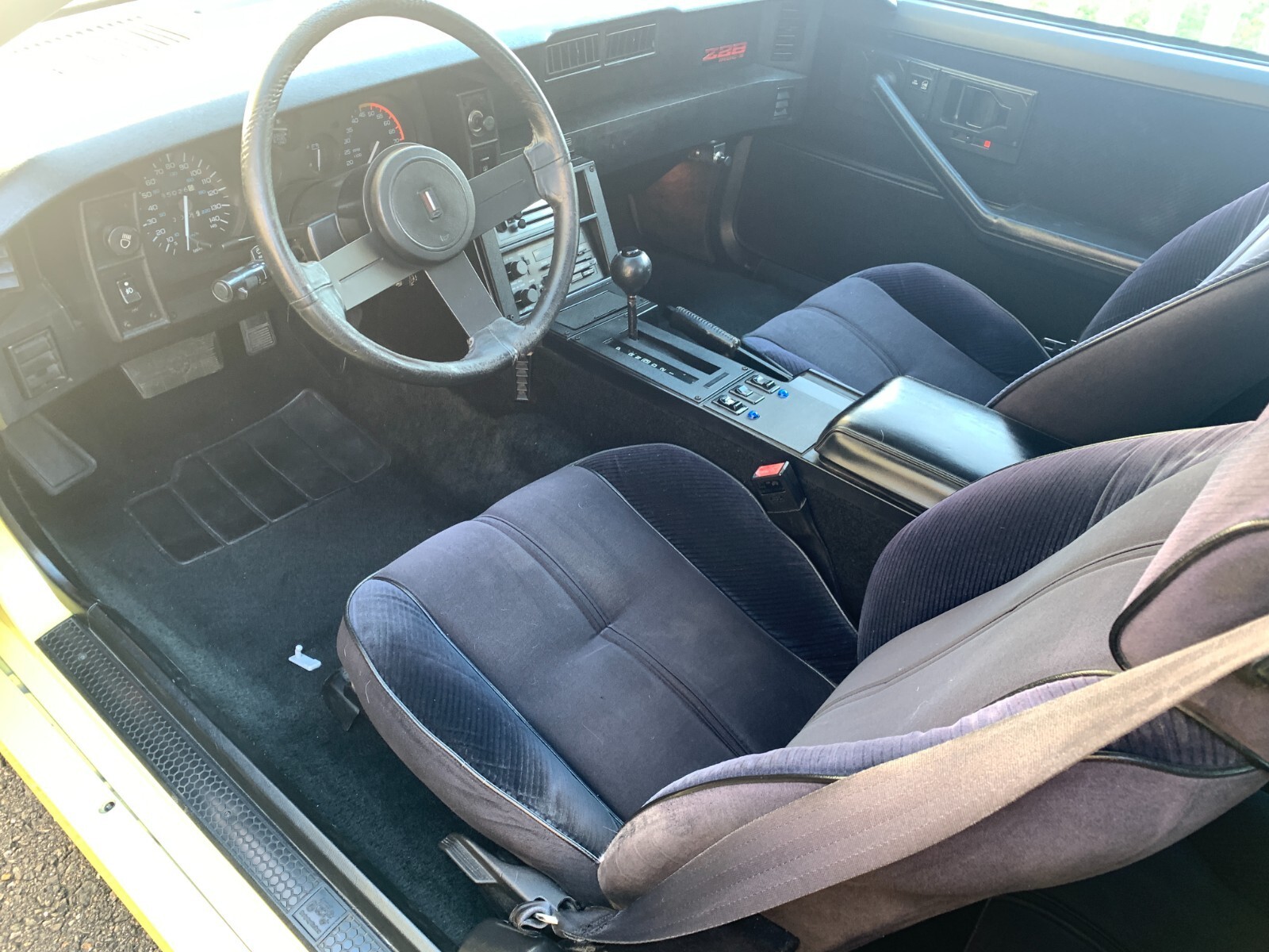 Up for sale is this beautiful and excellent condition 85,026 mile 1986 Chevrolet Camaro IROC Z28. I don’t know what to say about this IROC Camaro other than it is wicked nice and looks to be in great condition and not 39 years old. Please refer to the Hagerty Value Change Over Time and you will see that the 1986 Chevrolet Camaro IROC Z28, in fair condition is at $12,300, and good condition is at $19,500, This IROC appears to be in good to excellent condition. This is a real code 51, Yellow Gold exterior paint, IROC Z28, LB9 305 HO engine IROC, and DE1 original rear window louvers IROC.