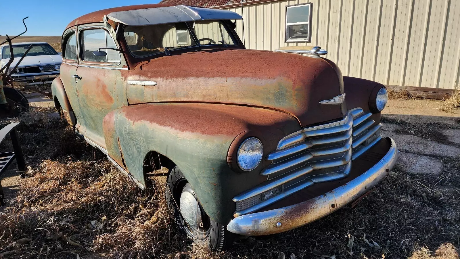 For Sale is a 1947 Chevrolet Fleetmaster 2-door Sedan. Clean and Current Iowa title. It's a roller project so NO ENGINE OR TRANSMISSION included. Great patina. Restore, ratrod or whatever you want it's a clean slate. Overall the body is pretty decent, there are no major dents or body damage. The floor pans and trunk pans are solid, rear inner fender are solid as well. The rocker panels have some rust holes and the both front fender has some holes in the rear, especially the right side. There is some some rust below the right windshield. See the photos.