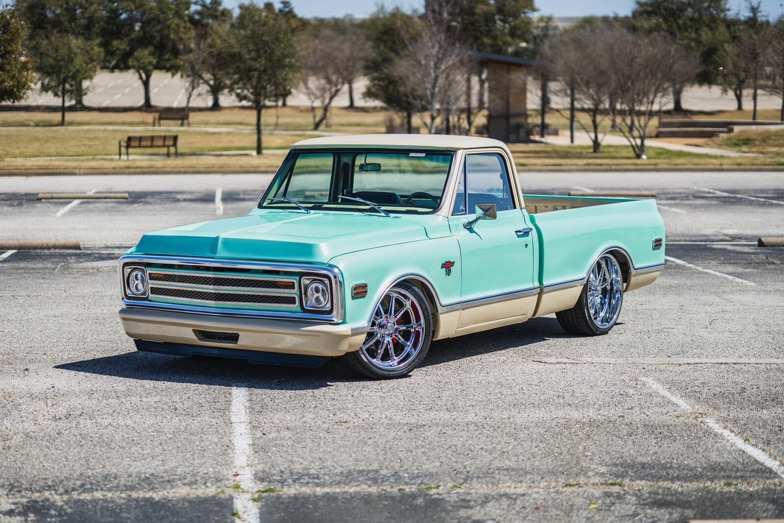 Earth Motorcars is excited to offer this amazing: 1970 Chevrolet C10 Custom Restomod Custom. This work of art is ready to win shows.This complete custom 1970 Chevrolet C10 factory short-bed pickup is powered by a 350ci small-block carbureted crate V8 engine mated to a 700R4 automatic transmission and a Lokar floor shifter. It is equipped with a 12-bolt rear end, Billet Specialties front-runner system, polished compressor, alternator and pulleys, MSD ignition, billet valve covers, Hedman headers with a 3-inch exhaust and an aluminum radiator with electric fans. It features QA1 tubular upper and lower control arms, front and rear coilovers, rear trailing arms, and front and rear sway bars. Stopping power is courtesy of a Wilwood master cylinder with power booster, 4-piston Wilwood brakes front and rear, drilled and slotted rotors and braided brake lines. It features a Borgeson power steering box and a Lokar emergency brake. The interior features TMI bucket seats and door panels, power windows, tilt column with billet wheel, Classic Instruments gauges, custom center console, Kenwood audio system, billet pedals and seatbelts. It also features an oak bed floor, rear-mounted fuel tank, 20x10 U.S. Mags wheels in the rear with 295/30/20 tires and 20x8 in the front with 245/40/20 tires, plus a custom hood treatment. Head turner and names "Deminted".All of our classic cars go through our rigorous inspection and items that need repair get fixed unlike cars bought at auctions, So rest assured that you are getting a quality classic car! All classics are sold Miles Exempt regardless of what the odometer shows. This vehicle may be eligible for our EXTENDED WARRANTY that covers a wide variety of components (certain exclusions apply).....Please ask your sales representative for details. Welcome to Dallas Fort Worth's Premier Lotus, Luxury, Exotic and Classic Cars Dealership. We specialize in offering the Finest Vehicles, Providing Outstanding Customer Service, Obtaining the Best Financing Options and Stocking a Large Selection of Luxury Vehicles, Exotics, Classic Cars and More! See for Yourself what Thousands of Customers have Discovered over the Years and Make your Next Purchase from Earth MotorCars! Our Goal is to Make you a Customer for Life! Learn more about us by calling 214-483-9040 or via e-mail at . Visit us on our Website at
