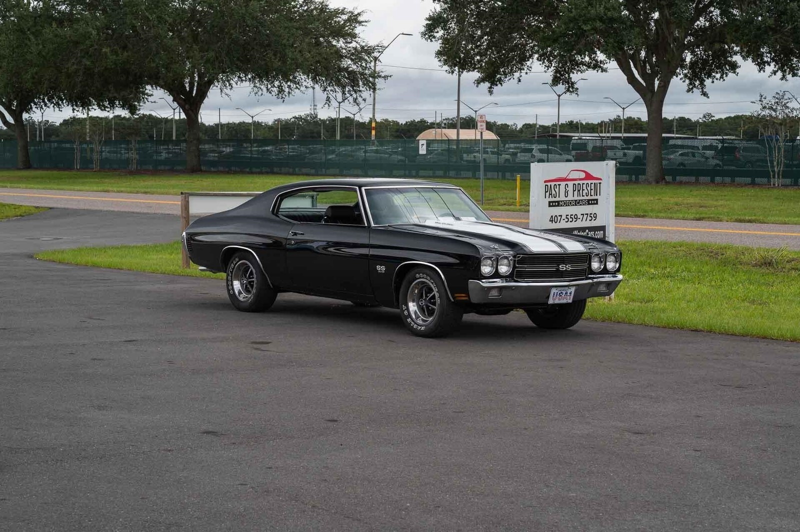 1970 Chevrolet Chevelle SS L78, Rare 396/375 HP, Tuxedo Black, with Build Sheet This stunning 1970 Chevrolet Chevelle SS L78 is a rare and exceptional example of one of Chevrolet’s most powerful and respected muscle cars ever produced. With only 2,144 L78s built, this car stands tall among the most collectible Chevelles on the market today. Finished in Tuxedo Black with a mirror-gloss, high-dollar paint job, this car turns heads before the engine even starts. Under the hood sits a date-correct replacement 396 cubic inch / 375 horsepower engine, backed by a Turbo 400 automatic transmission. The car retains its original full build sheet, verifying its pedigree as a true L78 Super Sport. The attention to detail under the hood and throughout the undercarriage is exceptional everything has been meticulously maintained, detailed, and presented to show-quality standards. Inside, the Chevelle features black bucket seats, center console, and the iconic SS trim package. Every gauge, piece of chrome, and panel reflects the care this car has received over the years. Sitting proudly on 15 SS wheels wrapped in rare reproduction Goodyear Eagle GT tires, this Chevelle has both the look and stance that define American muscle at its peak. The undercarriage is exceptionally clean, showing the same level of detail as the topside no corners cut, no shortcuts taken. From top to bottom, this is a show-quality example that’s as impressive in person as it is on paper. If you’ve been searching for an authentic, well-documented, and beautifully finished 1970 Chevelle SS L78, this is the one to own. Rare. Documented. Powerful. And finished in one of the most sought-after color combinations ever built. Highlights: Rare 1970 Chevelle SS L78 – 1 of only 2,144 produced 396 / 375 HP engine (date-correct replacement block) Full build sheet verification Turbo 400 automatic transmission Tuxedo Black with bucket seats and center console 15 SS wheels with reproduction Goodyear Eagle GT tires Extremely clean undercarriage and engine bay Stunning, high-end paint finish This Chevelle represents the golden era of American muscle—power, presence, and prestige. A true investment-grade classic. While we do our best to provide the highest quality muscle cars with an honest and reliable description and realize the importance of transparency when selling vehicles. That being said, we have not built, modified, changed or personally owned this vehicle. Whether this vehicle is consigned or owned by Past & Present Motor Cars we do not know the vehicles complete history since new. We want to be clear and try to answer any questions our customers might have prior to purchasing. Additionally, we not only welcome but we encourage 3rd party independent inspections. Please inquire prior to purchase to make sure the advertised vehicle has not already been sold. We list our vehicles on multiple websites and a vehicle can sell at any time. If a customer chooses to purchase sight unseen (many of our customers choose this option) the customer accepts the vehicle AS IS and WHERE IS and understands we cannot address concerns after purchase. For this reason, it's important all concerns are addressed prior to purchase. We make every effort to present accurate and reliable information, but use of this information is voluntary, and should only be deemed reliable after an independent review of its accuracy, completeness, and timeliness. It is the sole responsibility of the customer to verify the existence of options, accessories and the vehicle condition before time of sale. Financing is Available with low rates and Vehicle Shipping is available from our Showroom to your Garage. A Classic Car Warranty is Available for Purchase from a 3rd Party. Please speak to our Sales Associate or Company Representative for more information. Our team is working and available anytime by Phone or Text for your convenience at 407-559-7759. Thank you for your interest!