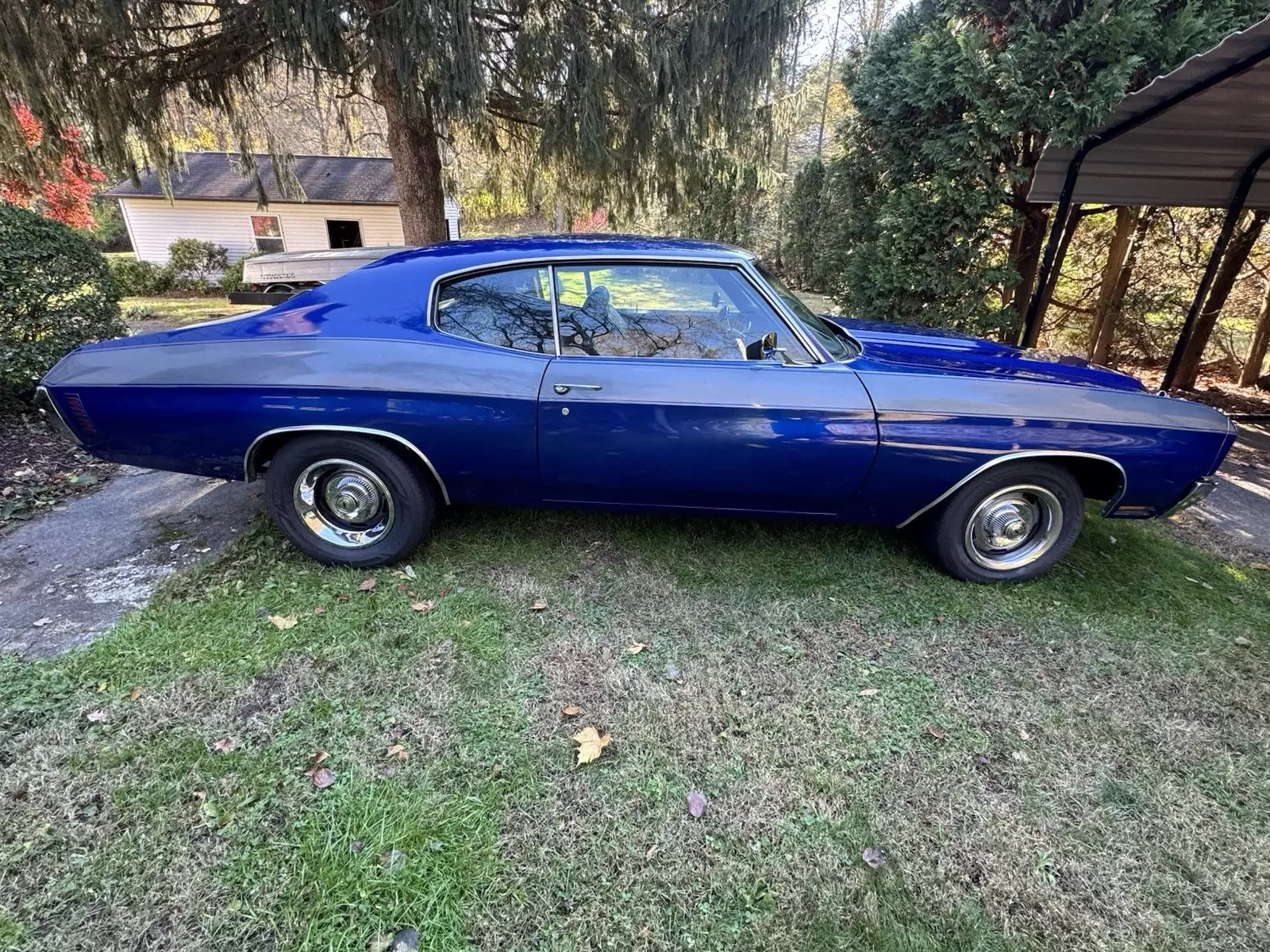 1970 Chevelle SS Tribute. Malibu.358 small block engine, 350 bored .40 over. 4 speed Saginaw transmission with new clutch, originally a column shift car. Front disc brakes. 10 bolt posi rear with drum brakes. Driver quality car that runs and drives good. Car was painted in March with PPG Viper Blue paint with silver strips, both are metallic paint. Brand new radiator fan. 4 New Hankook Kinergy ST tires.Has a small dent on passenger side quarter panel, a noticeable vertical scratch on drivers side fender and a small chip on fender at the hood. Rear wheel houses were patched. Rear seat floor pans have a softball size rust hole on both sides.Selling for my dad, he can’t do the clutch anymore. Answers to questions may take a bit longer to get answered since I would need to ask him.