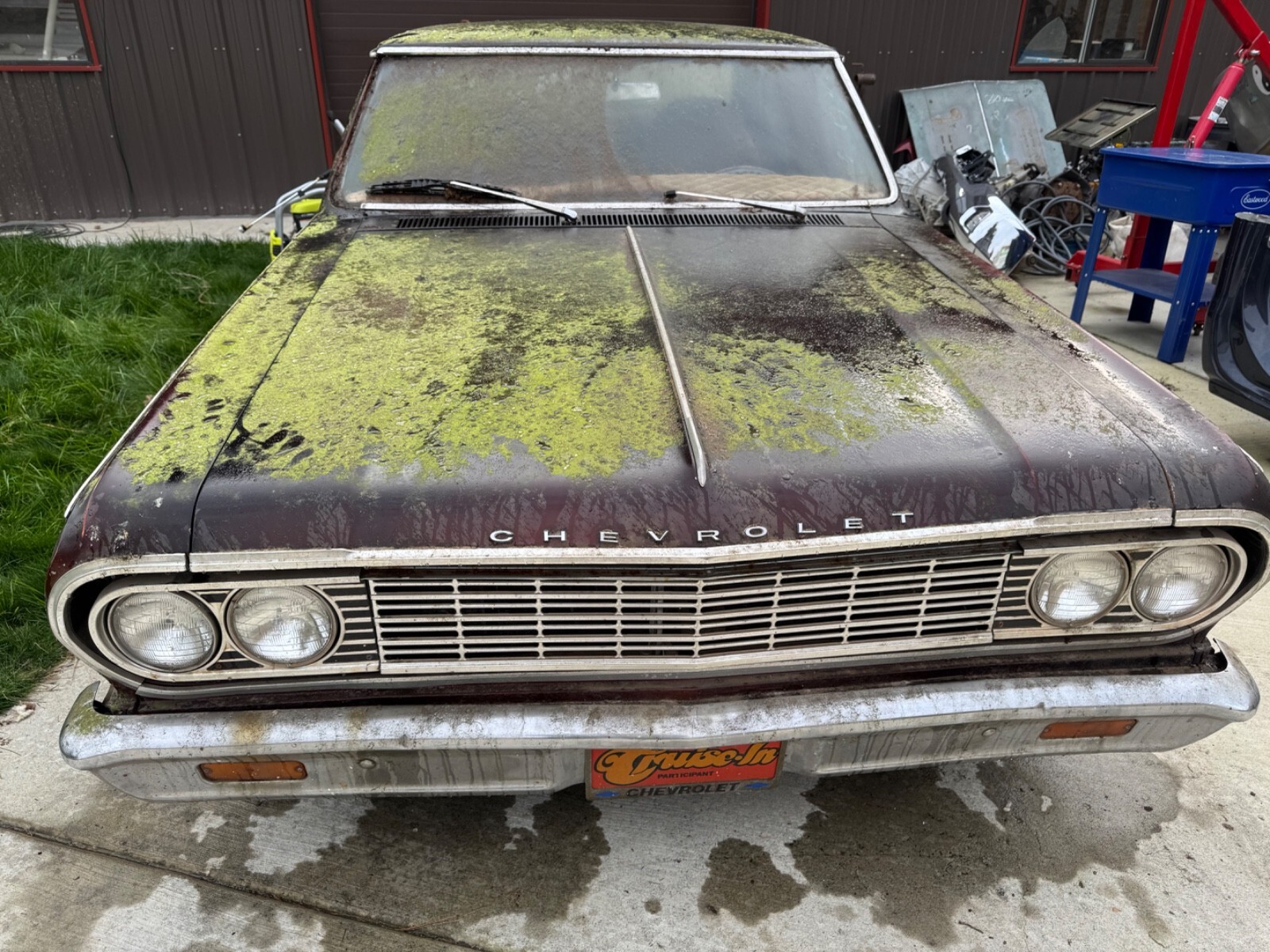 OK, here we go 1964 Chevelle SS a true SS car a true four speed car. This is a northwest car. body is in above average condition. Very little rest. I bought this car with seven other vehicles it has been setting for 15 years or more. This car was last licensed in Washington state in 1992. You’re buying it just how I bought it. I did clean it off as you can see by the pictures, it did have a lot of moss-on it. The car turns over, but I cannot get it to start. I do not know if it is the correct engine so do your diligence. It’s all there The 1964 Chevrolet Chevelle is a classic coupe with a sleek design and comfortable seating for up to 5 passengers. This manual transmission vehicle features a clean title and a stylish brown exterior color, making it a desirable choice for collectors and enthusiasts of Chevrolet vehicles. With 1,111,111 miles on the odometer, this Chevelle offers a blend of nostalgia and modern driving experience for fans of vintage cars.