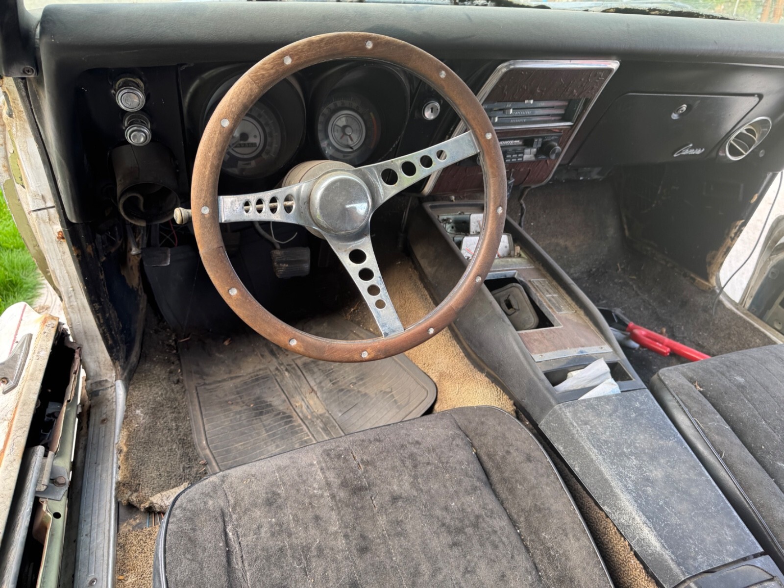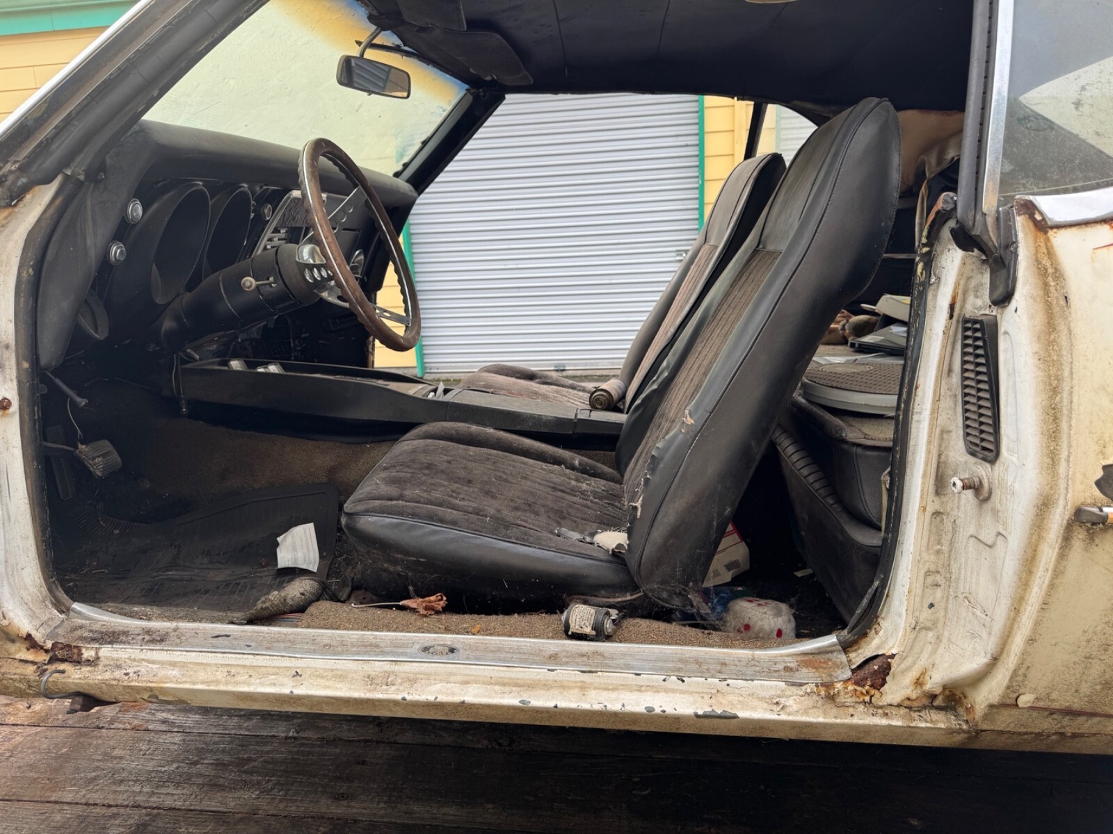 I recently bought this car as a fleet purchase with seven other vehicles or projects lol I don’t know much about this car other than it is a true RSSS 4 speed car it’s got the 5500 RPM red line with the TikTok clock. It has a console with the factory gauges in if. It also has a heater core cover with the cores coming out of it, which indicates it could’ve been a big block car. I don’t know if it is a big or small block car. It has a 10 V rear end, which has been replaced with a double leaf spring, which is not correct rust is minimal. I really don’t think there’s a place where it’s all the way through. This has been a northwest car. It’s whole life. It was last licensed in Washington state in 1992.