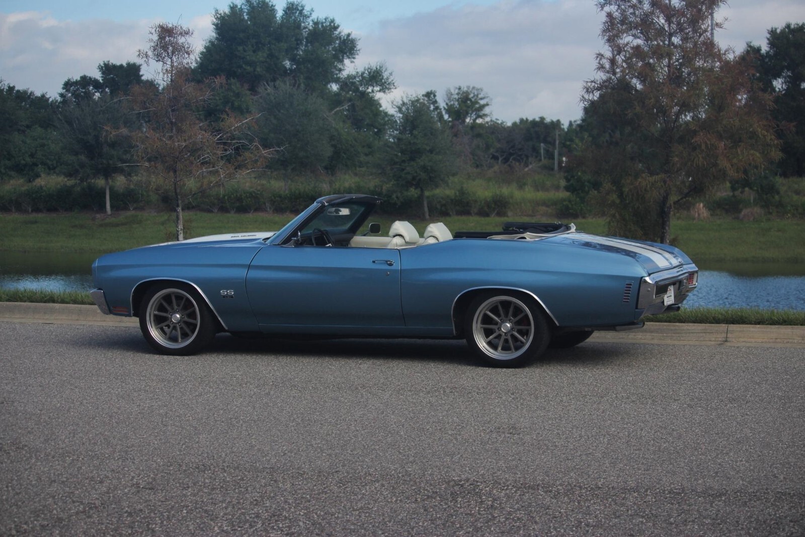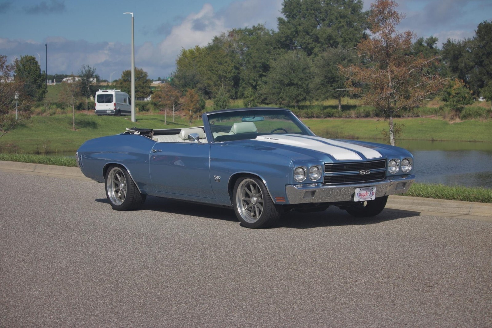 1970 Chevrolet Chevelle Convertible, LS Powered, Modern Comforts, Classic Looks! This stunning 1970 Chevrolet Chevelle Convertible blends timeless muscle car styling with modern performance and comfort. Finished in its original color, Astro Blue, this car received one professional repaint and still retains all original panels except for the hood. The paint shows beautifully with a deep shine and mirror finish that truly stands out in the sun. Under the hood sits a 5.3L LS V8 engine paired with a 4L60 automatic transmission, delivering smooth, reliable power with the right amount of punch. The drivetrain is backed by a 12-bolt posi rear end with 3:73 gears, providing the perfect balance between acceleration and cruising capability. The suspension and handling have been thoughtfully upgraded with UMI upper and lower front control arms, adjustable QA1 shocks, and 2-inch lowering springs in the rear, giving the car an aggressive stance and excellent road feel. Four-wheel disc brakes, power steering, and Vintage Air conditioning make this convertible as enjoyable to drive as it is to look at. Inside, the cabin features bucket seats with a center console, tilt steering column, a Dakota Digital dash, and a RetroSound radio that keeps the classic look while adding modern sound. The power convertible top operates smoothly, letting you drop the roof and enjoy every mile. Finishing off the look are 18-inch American Racing wheels that complement the car’s muscular profile perfectly. This Chevelle checks all the boxes—style, performance, comfort, and reliability. A true turn-key cruiser that runs and drives excellent, combining the best of classic muscle and modern upgrades. Astro Blue – LS Power – 4L60 Auto – Vintage AC – Power Top – 4-Wheel Disc – QA1 Suspension – 18” American Racing Wheels. While we do our best to provide the highest quality muscle cars with an honest and reliable description and realize the importance of transparency when selling vehicles. That being said, we have not built, modified, changed or personally owned this vehicle. Whether this vehicle is consigned or owned by Past & Present Motor Cars we do not know the vehicles complete history since new. We want to be clear and try to answer any questions our customers might have prior to purchasing. Additionally, we not only welcome but we encourage 3rd party independent inspections. Please inquire prior to purchase to make sure the advertised vehicle has not already been sold. We list our vehicles on multiple websites and a vehicle can sell at any time. If a customer chooses to purchase sight unseen (many of our customers choose this option) the customer accepts the vehicle AS IS and WHERE IS and understands we cannot address concerns after purchase. For this reason, it's important all concerns are addressed prior to purchase. We make every effort to present accurate and reliable information, but use of this information is voluntary, and should only be deemed reliable after an independent review of its accuracy, completeness, and timeliness. It is the sole responsibility of the customer to verify the existence of options, accessories and the vehicle condition before time of sale. Financing is Available with low rates and Vehicle Shipping is available from our Showroom to your Garage. A Classic Car Warranty is Available for Purchase from a 3rd Party. Please speak to our Sales Associate or Company Representative for more information. Our team is working and available anytime by Phone or Text for your convenience at 407-559-7759. Thank you for your interest!