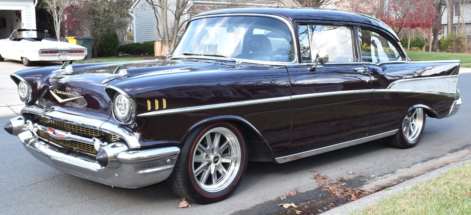 1957 Chevrolet Bel Air 2-Door sedan Resto-Mod in Black Cherry metallic and powered by a 350 cu. in. V8 with a Turbo 350 3-speed automatic transmission. This show winner was purchased from a dealership approximately 7 years and about 2,000 miles ago and has had several upgrades performed during that time including a new AM/FM/USB & Bluetooth system, LED lights, and power windows. This ’57 draws attention wherever it goes and is a great cruiser for long trips. No disappointments. The Chevy has a clear Maryland title. Selling for personal reasons.
