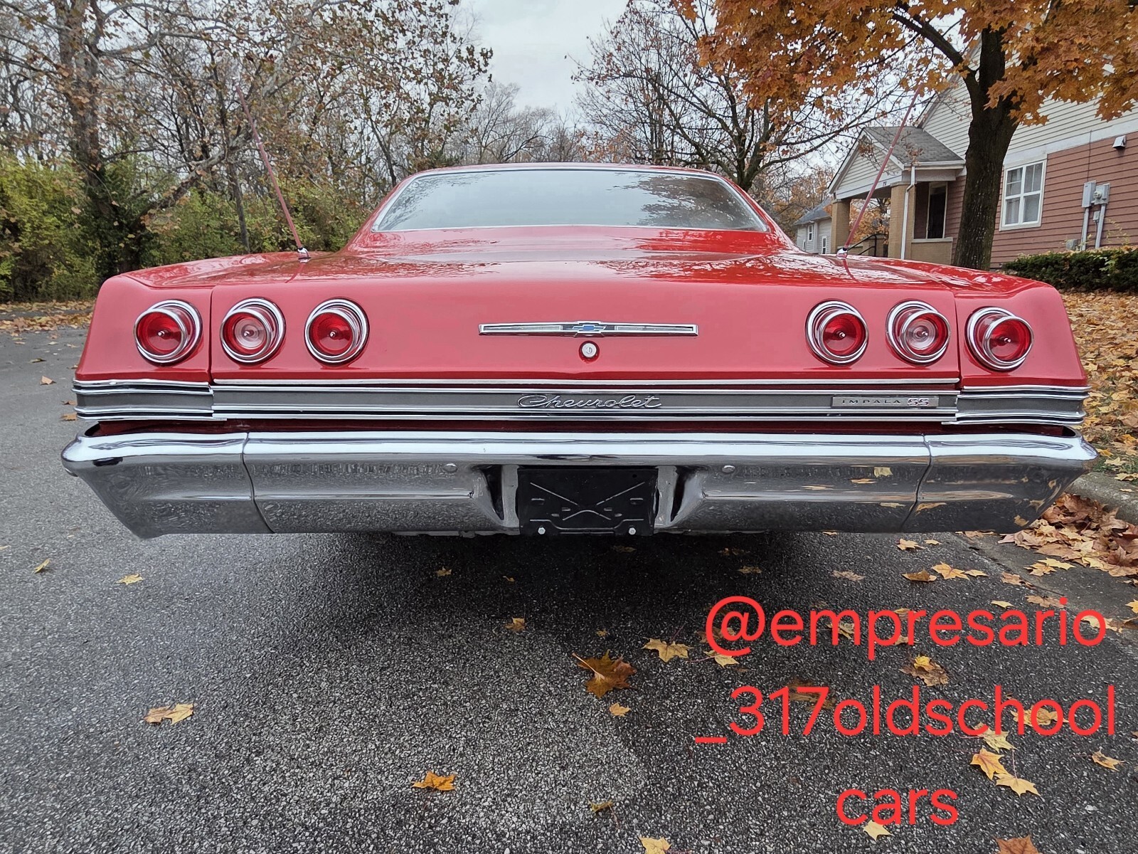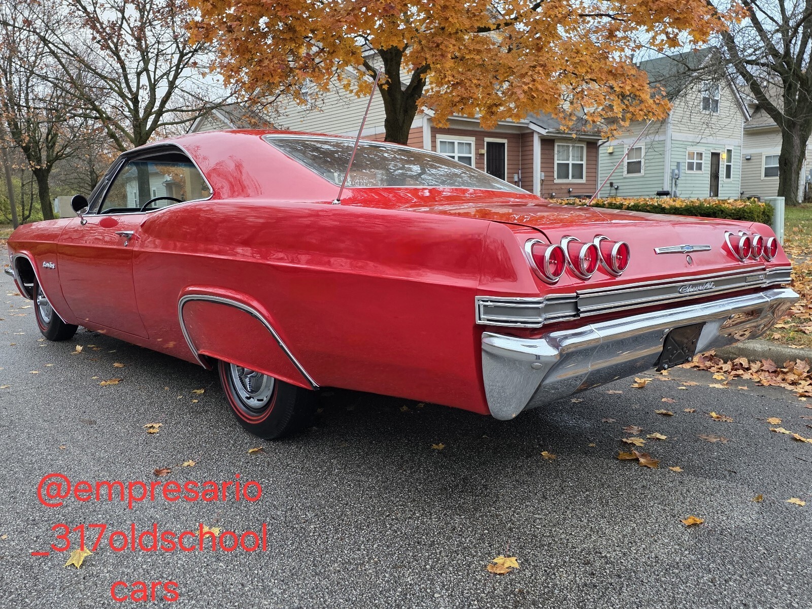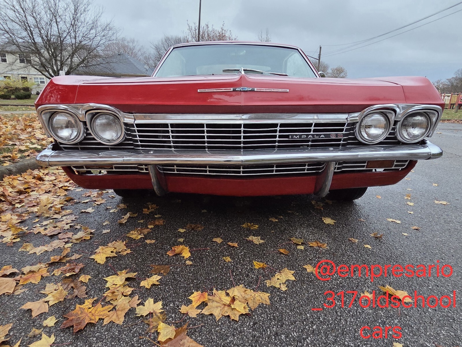 1965 Chevrolet Impala Super Sport. Factory color combo, Rally Red with Black vinyl interior. 327 V8 engine with 2 speed powerglide automatic transmission. Power steering. Power brakes. 12 bolt posi rear end. All new front & rear suspension. Stock wheels on U.S. Royal Dual Redline Tires. Runs & drives excellent. Nice interior. Clean body. Nice paint. Skirts. Dual antenna. Drive it anywhere. Clean title. $32,000. Located in Indiana.