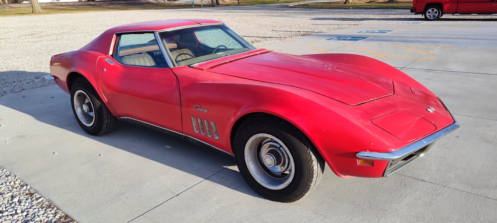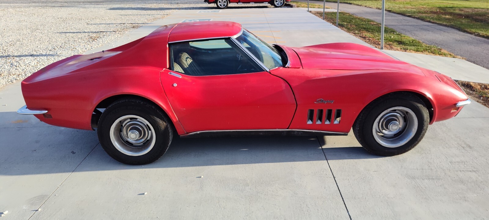 For your consideration..1969 Corvette Coupe. The cheapest early C-3 you will find on the market that runs, drives, and stops well enough to drive it away. Car came to us locally and though we all have dreams of grandeur, I have to many that need attention at the moment, so throwing it out there for a great project for someone. This car has an incredible running 327 with a close ratio Muncie 4 speed. Great drivetrain front to back. Including all the brakes already being done. It has the common C3 frame rust right at the uppers in front of the rear tires. I've seen them much worse and certainly seen them better. ( plenty of pics to see to make your own decisions ) Left trail arm has rust on the bottom. Birdcage in general is in decent and usable condition. Car is currently red over tan and began life as a Blue over blue car which i think it would show best in if restoring. Interior pics added this weekend .I welcome any questions and am happy to send pics of swing by and well put her in the air and you make the decision. all contact info at the ad bottom. Ask any questions and or pick up the phone and call if you're looking for a great winter project. P.J.