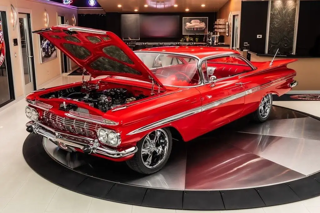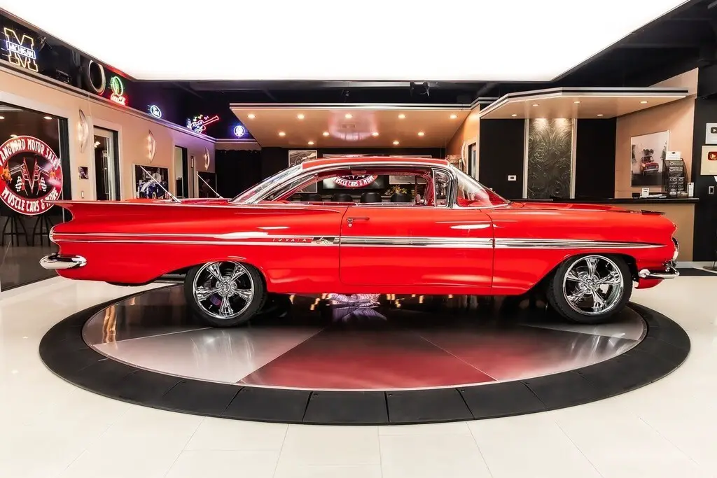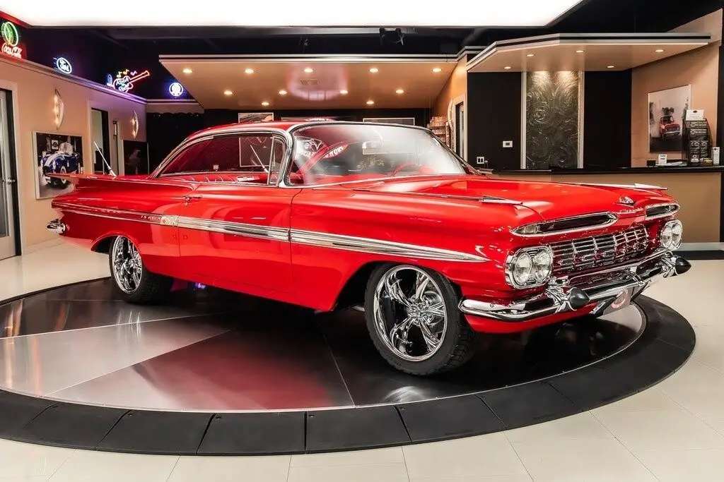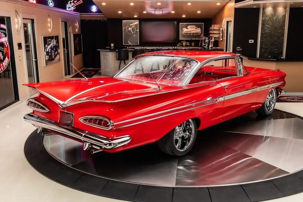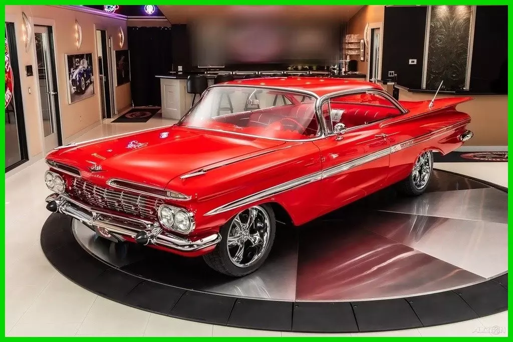 1959 Chevrolet Impala Restomod (Frame-Off Rotisserie Restoration) for Sale in Little Falls, MN 56345 A true American icon, this 1959 Chevrolet Impala represents the pinnacle of late-’50s automotive design — and this example has been completely reimagined and rebuilt from the ground up with meticulous attention to detail. Every surface, component, and line has been refined to blend classic show-car style with modern performance and drivability. Powertrain & Performance New Chevrolet 350 ci V8 Crate Engine – 345 HP Holley 4-Barrel Carburetor & Aluminum Intake 700R4 4-Speed Automatic Transmis