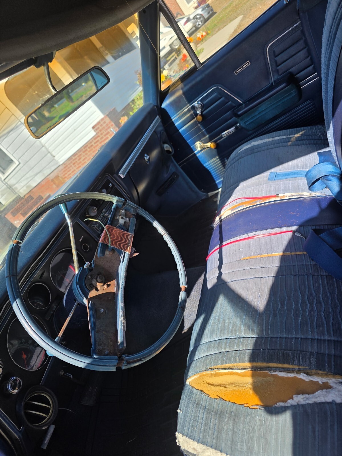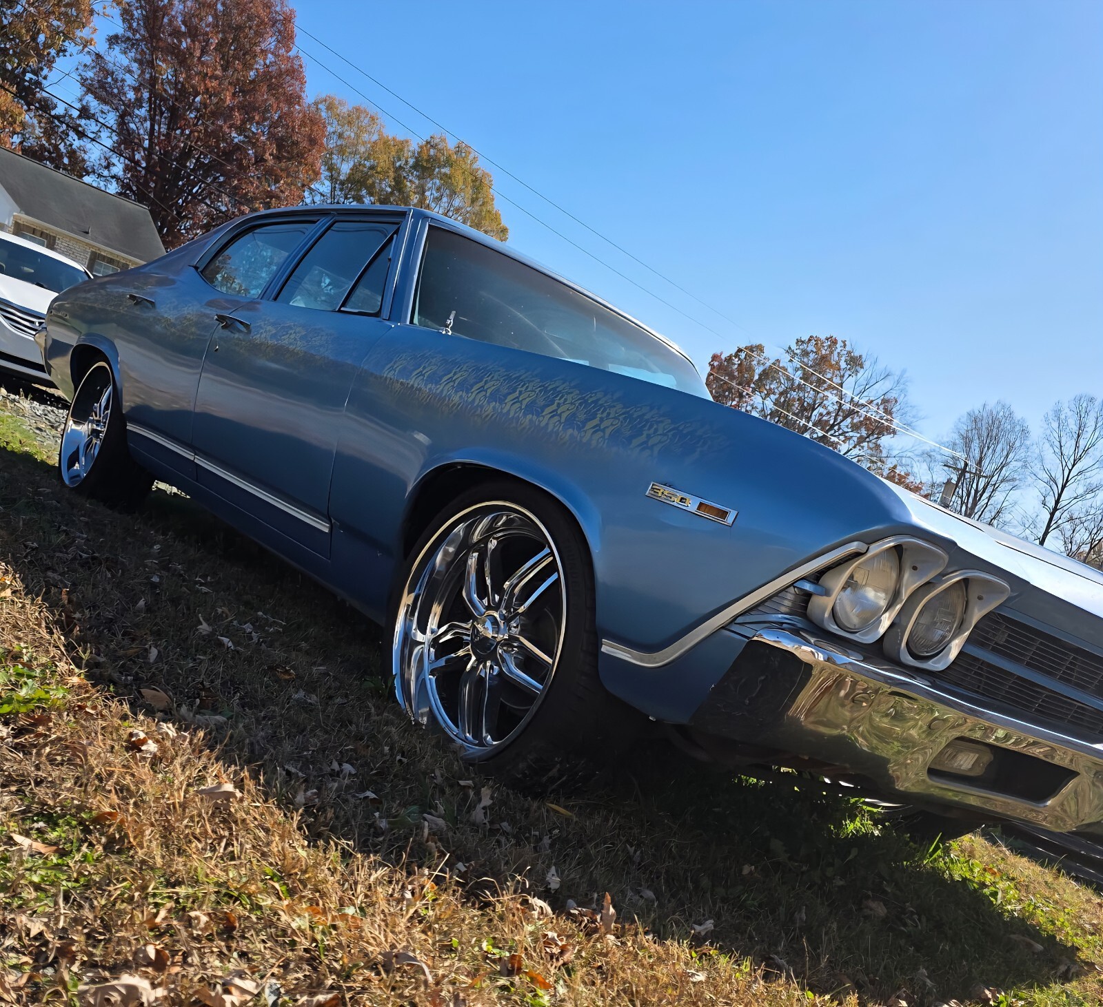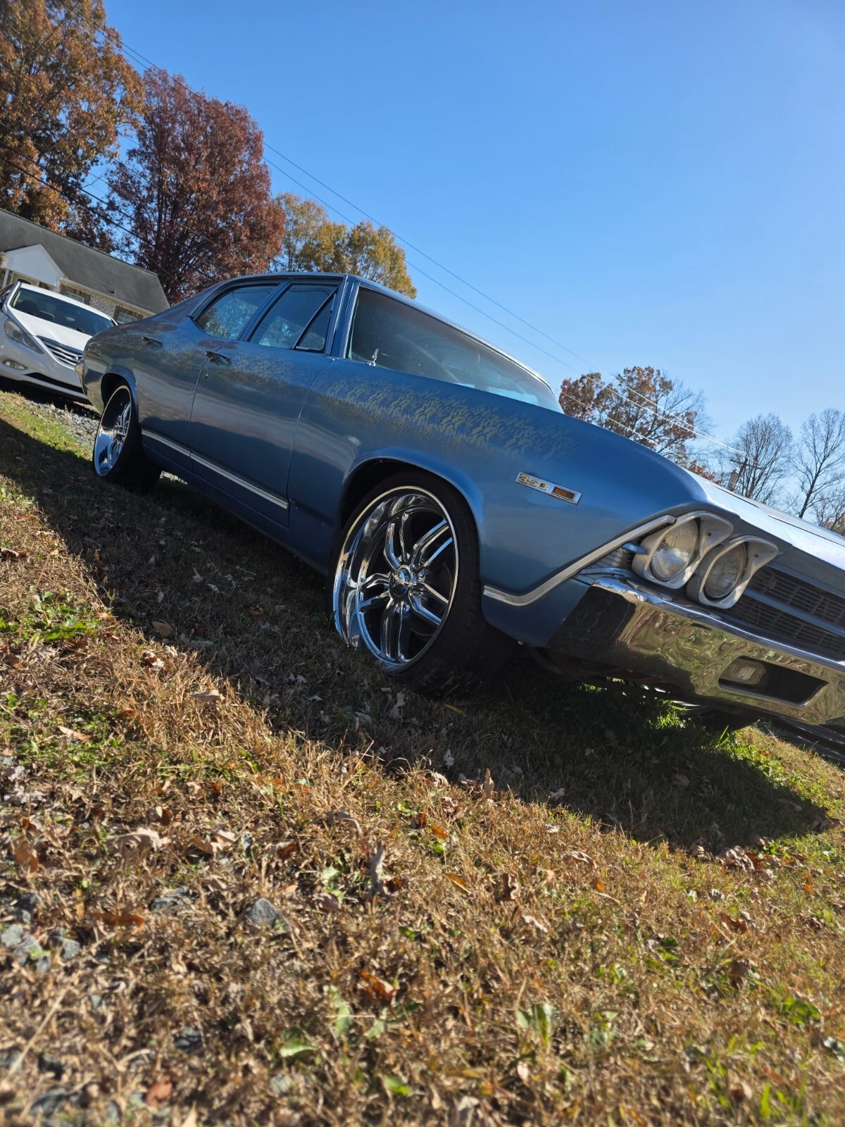 1969 Chevrolet Chevelle Malibu Trim Package 350 engine.The car was a daily driver for years in the 12 I have owned it.Cranks and drives however long distance would be at buyers descretion.I am 3rd owner of the vehicle, I have limited knowledge about cars.Does not have original tires and wheels and have 22 Rims you see in the picture.interior is the original interior and needs update as you see in photo.I do have new steering wheel for it I can include in the sale.the trunk keys are lost at the moment.Has a aftermarket stereo in place of the original.the title is clean and ready to go.