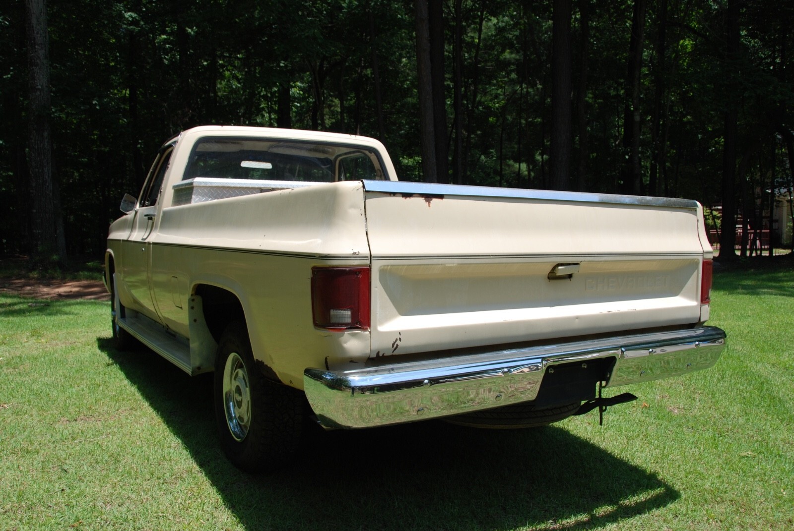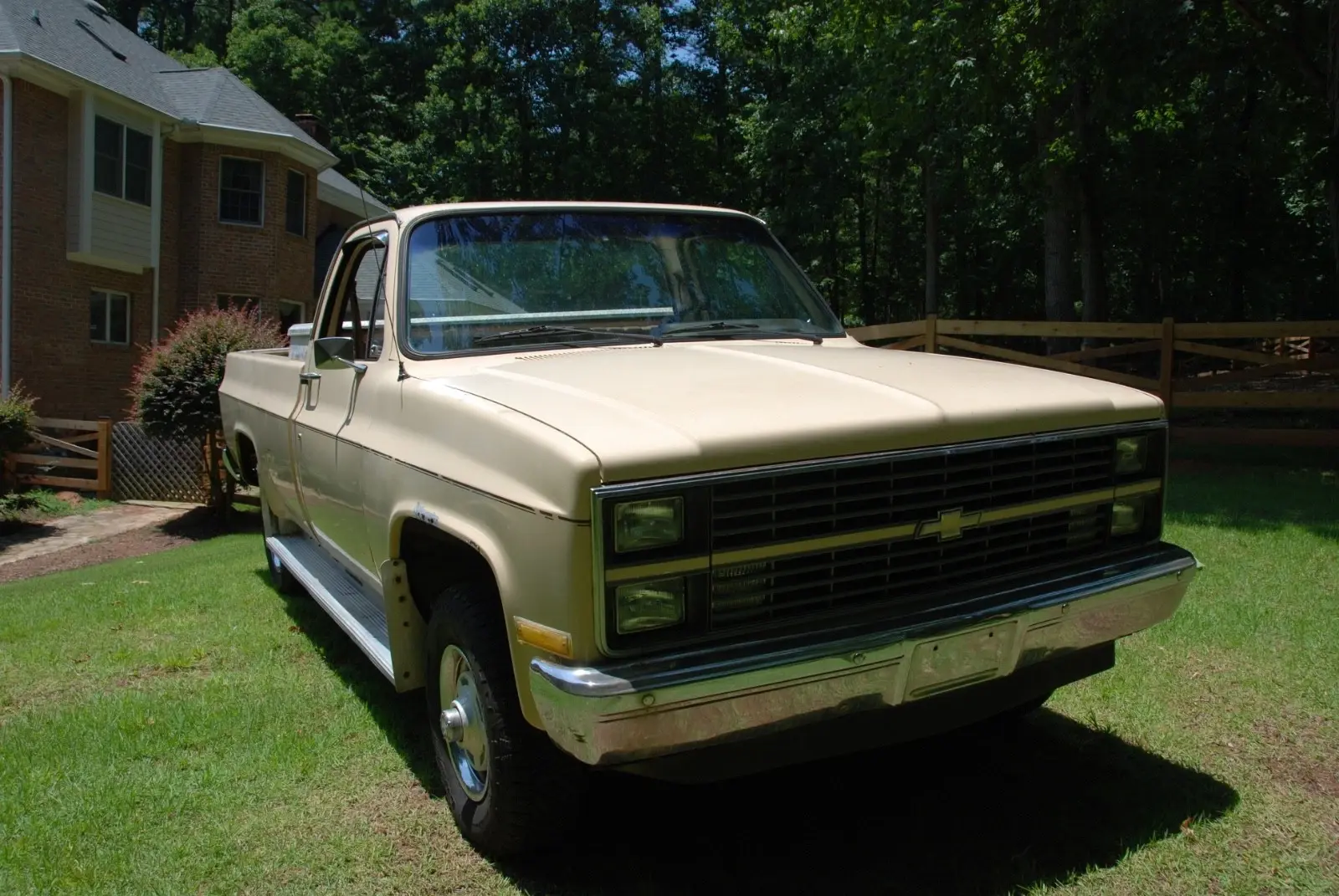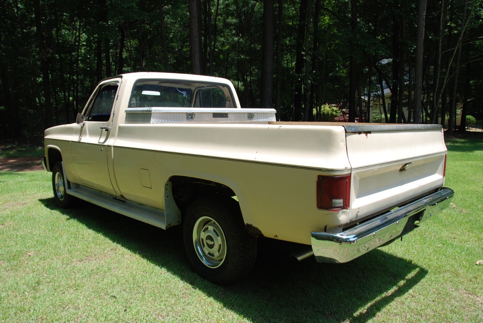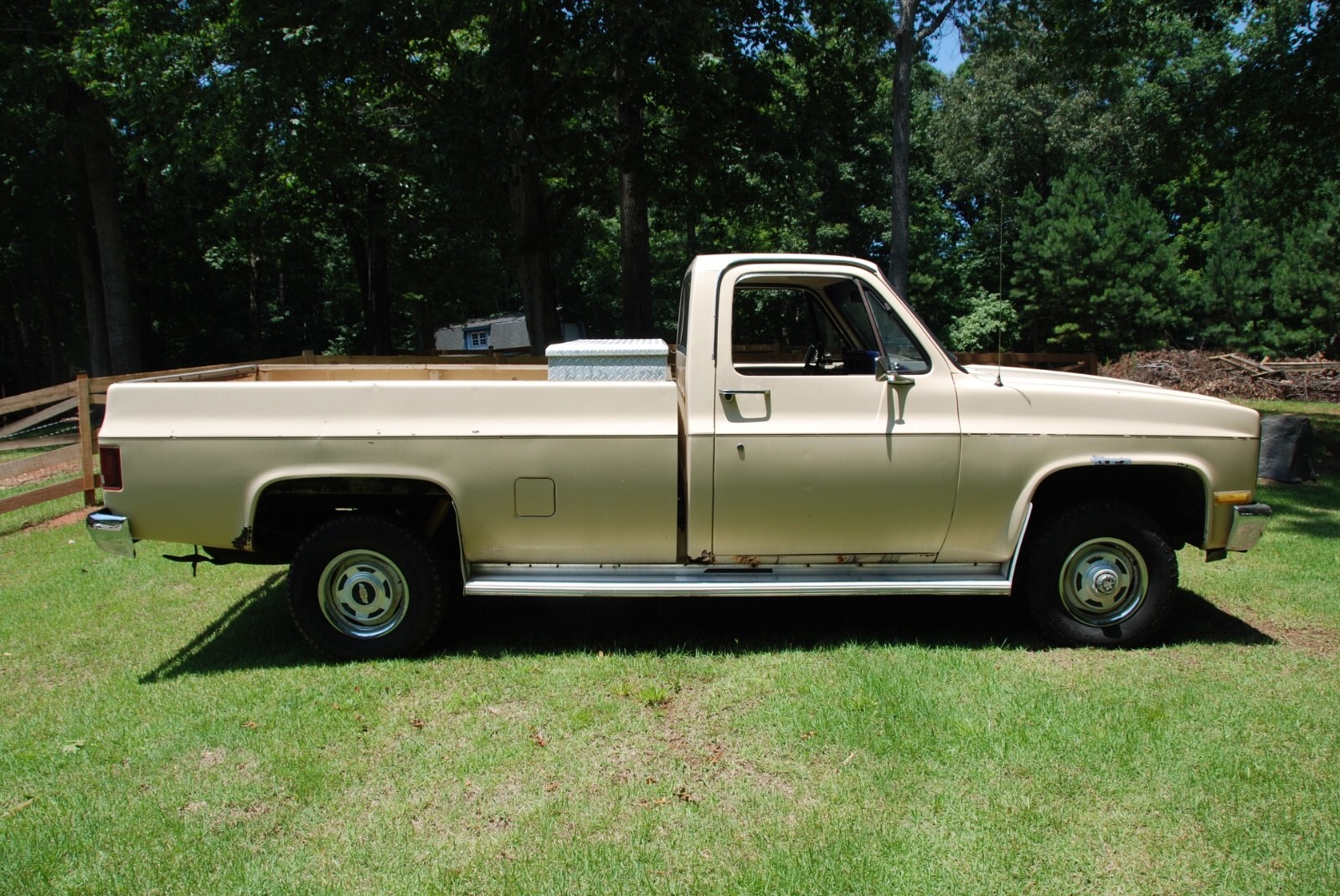 1984 K10 Scottsdale 4WD pick up, factory air, 5.0 V8, G80 locking differential, fleet side, factory gauges, saddle tan exterior, doeskin tan interior and original drive train. One owner original truck from Raleigh, North Carolina. Mechanically very good, new: tires, shocks, brakes, aluminum radiator, battery, and miscellaneous. The vehicle is need of interior, body and paint work. The frame and undercarriage are very good. The cab corners, rocker panels, behind the rear wheel area have rus, see photos. Excellent square body truck for restoration. Vehicle being sold by a North Carolina dealer, Classic Car Investments, 10207 Chapel Hill Road, Morrisville, NC. Located 5 miles from the RDU airport. We have been opened since 1985 with the same ownership.