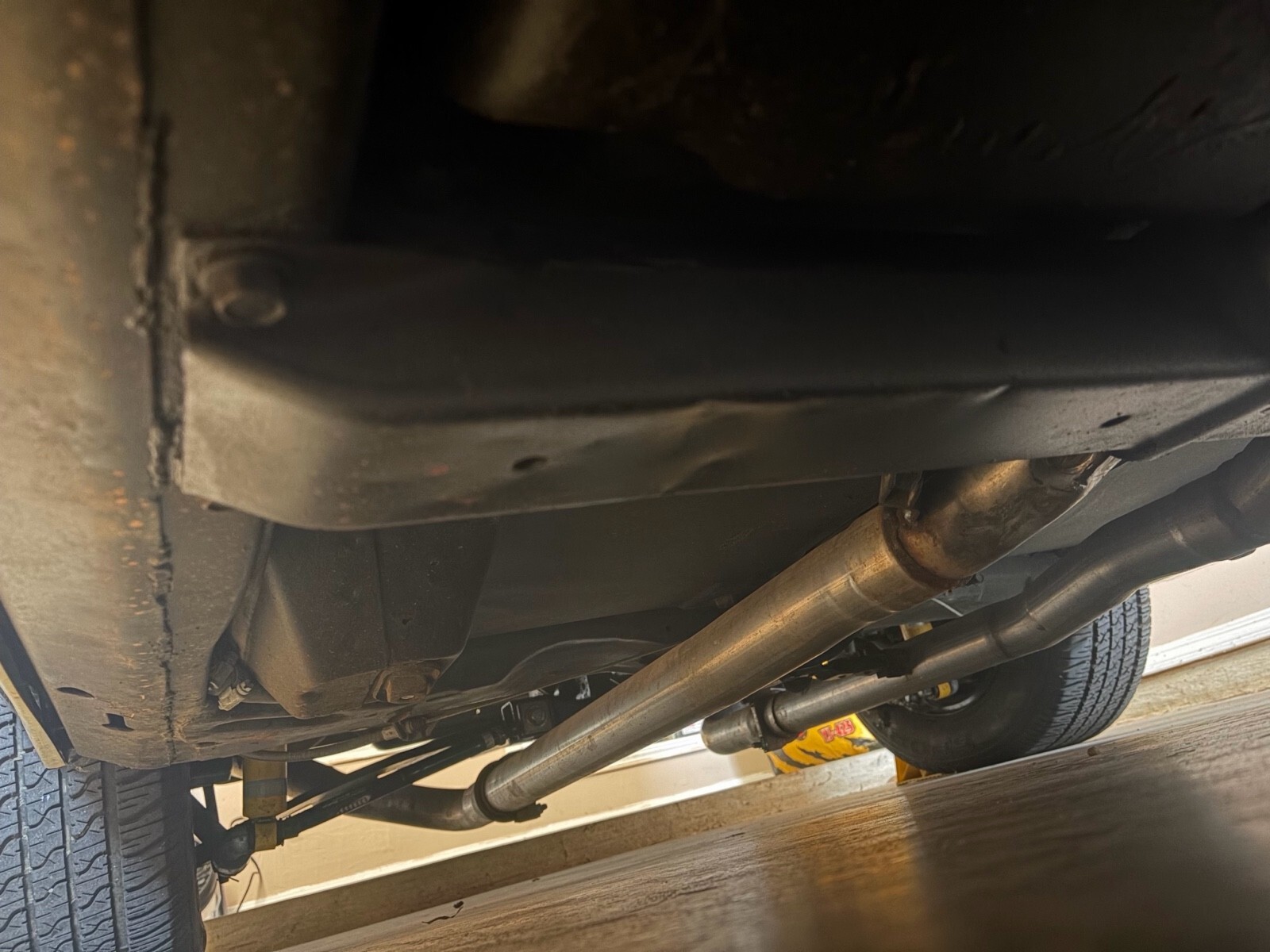 TH400 transmission, TCI Street Fighter Stall Converter, new suspension in early 2000s (Bilstein), Holly 750cfm Carburetor, 3.55 differential, original engine block bored out 0.030, Edelbrock Performer RPM intake, MSD Ignition, 4 core radiator, Dynomax ceramic coated headers, and the car sits on a set of 15" Chevy rally wheels with 245/60/15 Defender Sport SR tires.