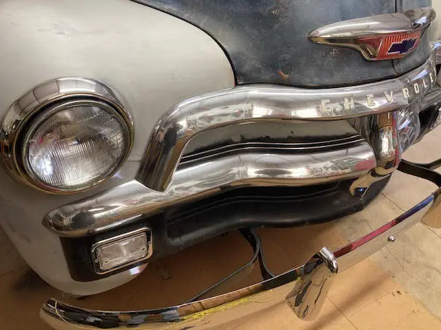 New Parts (with receipts); complete new 12v Autowire wiring harness, professionally installed; new alternator; rebuilt starter; Pertronix ignition kit; new gas tank and sending unit; new headlight and tail light assemblies; wipers converted to 12v; new reproduction running boards, tailgate with chains, front bed panel, chrome front and rear bumpers; new windshield and rear glass; all new window rubber; new radiator and hoses; Best original chrome grille I have ever seen, with a trace of fine pits and a rare few stone pecks; Deluxe cab has polished exterior door window stainless and stainless trim in the windshield rubber.