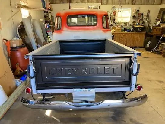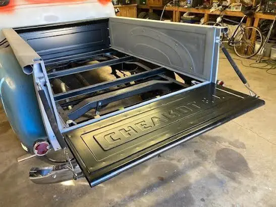 I bought this truck as in unfinished body-off restoration project in 2024. The frame had been sand blasted and painted chassis black, engine (235), transmission (Chevy Car 3 speed), later truck rear end with open driveshaft, and brakes had been rebuilt by the previous owner (have receipts). The cab, front clip and bed had been removed from the chassis.