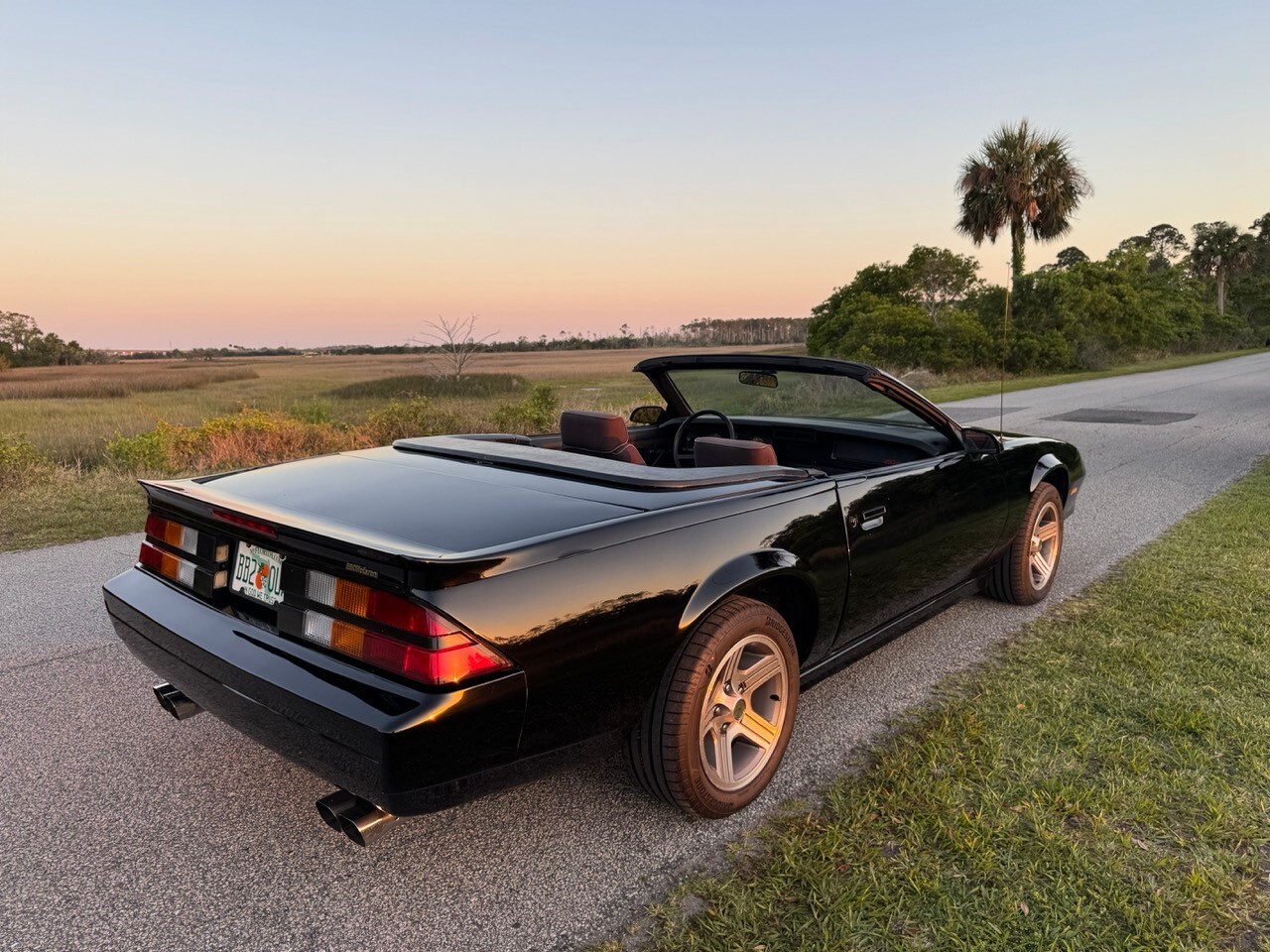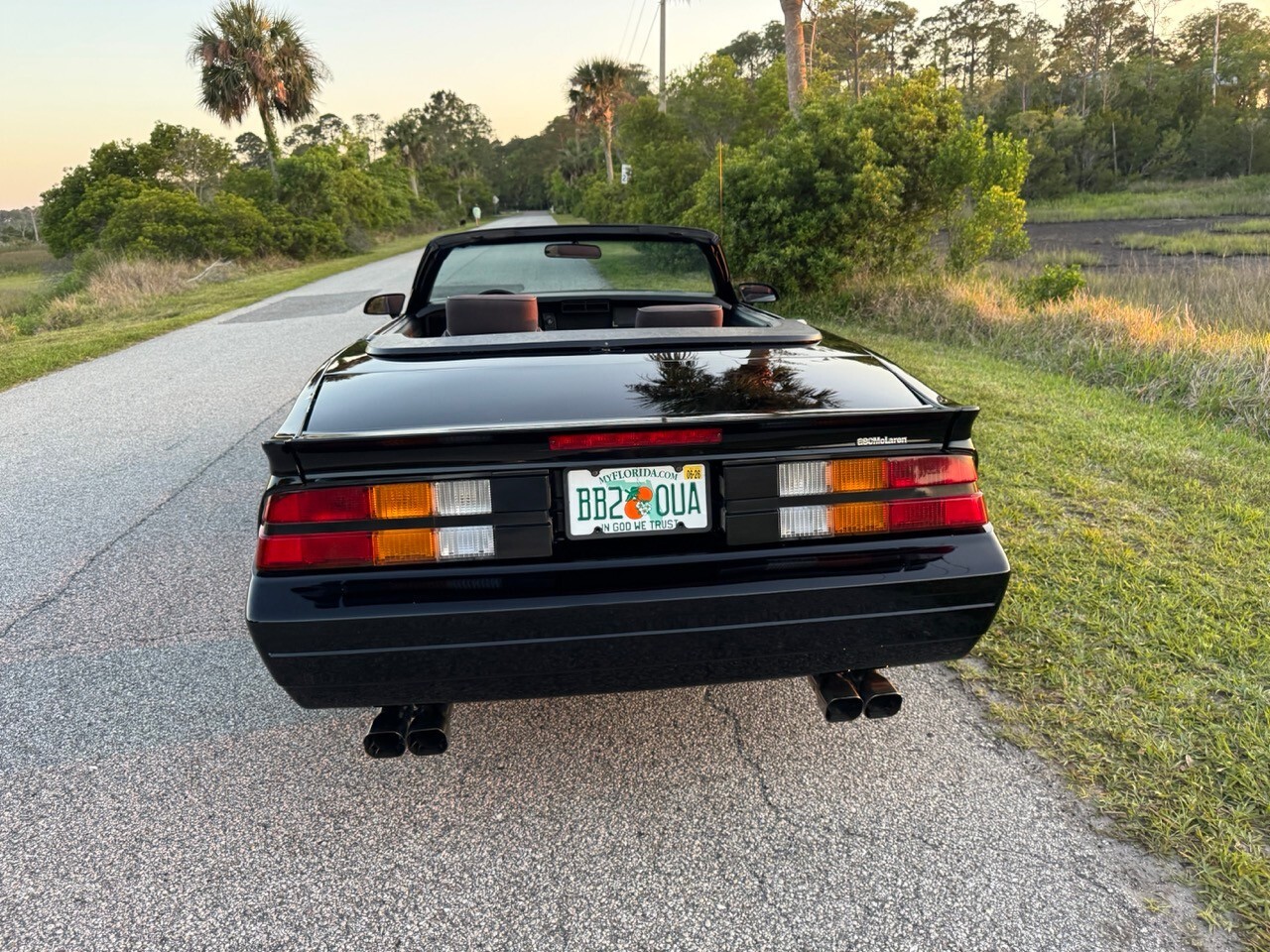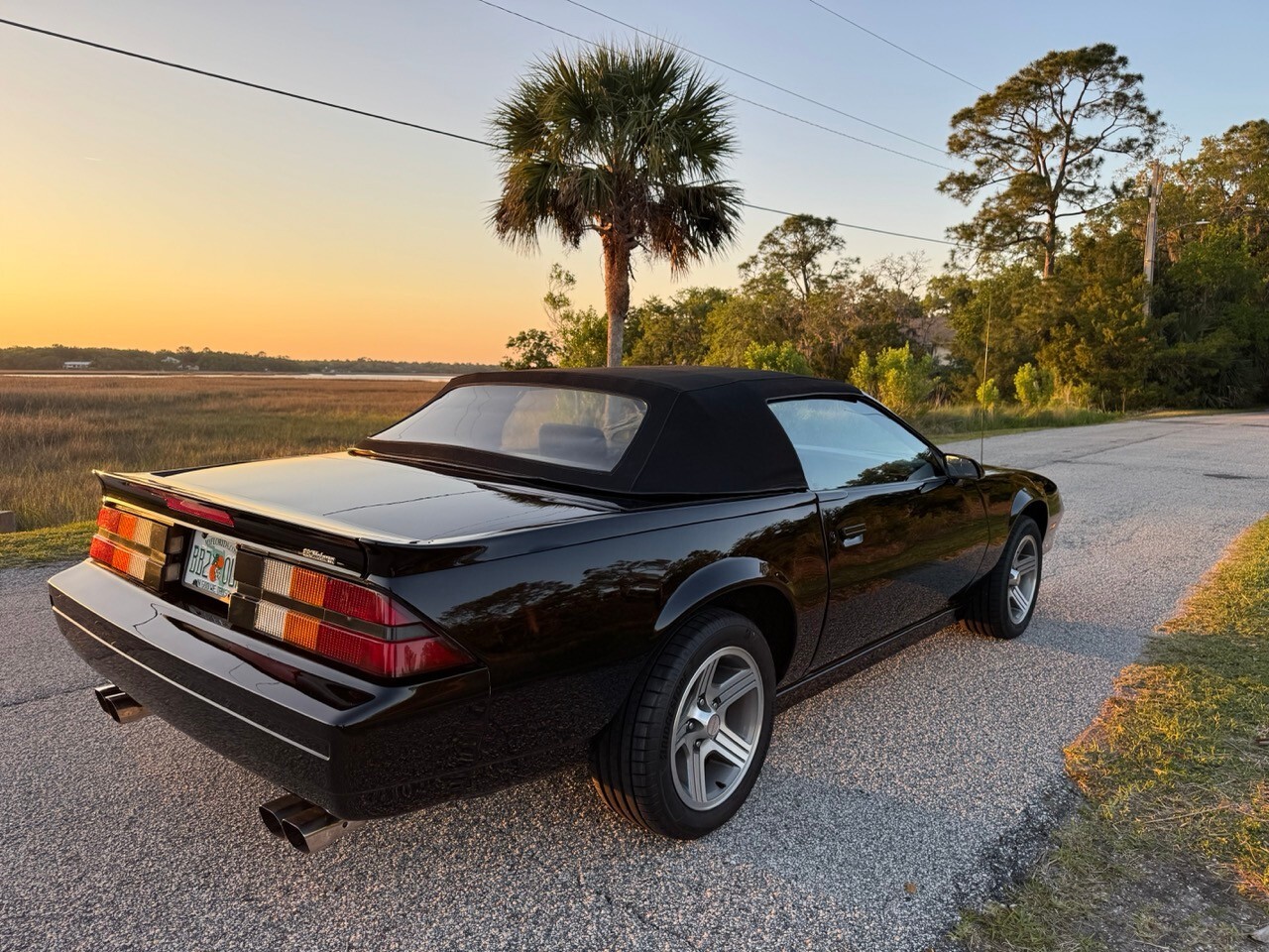 The executive commissioning the work had a high quality Wet sanded and buffed Jet-Black paint job done. As you can see in the photos it still looks amazing. He also had quick shift modifications to the transmission which at the time cost $6,500 in the late 80’s. A custom Recaro driver seat in matching Camaro fabric was added along with Borla exhaust from the headers back. The Top and back window are both in great condition. The convertible is a manual not powered top. Not for sale in California, due to modifications it will no longer pass Smog tests.