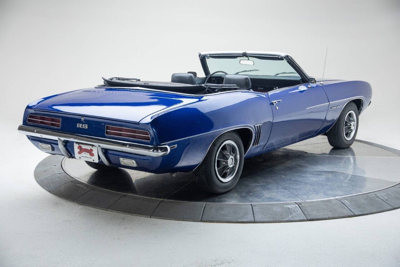 New arrival!! 1969 Chevrolet Camaro RS convertible 2 owner with the second owner buying in 1971 for $1200 Black deluxe interior Painted in 2001 Corvette blue 4 speed manual with console 350 engine out of a 1970 impala was rebuilt with hardened valves 20,000 miles ago protecto-plate original body panels Power front disc brakes, power black vinyl top Being checked out in our shop now and call for questions! VISIT US AT OUR SHOWROOM LOCATED AT 250 Classic car Ct SW Cedar Rapids, Iowa, 52404! Open 9-5 CST M-F. Financing available with classic cars are done with JJ Best Banc 1-800-USA-1965 with terms of 24-84 months. Shipping is available. Terms of Sale for all vehicles sold at Duffy's Classic Cars/ Jetset Auto LLC: We strongly encourage inspections before purchasing to avoid any misunderstandings or representations. * All used vehicles should be assumed to have some degree of wear. No Vehicle is perfect for everyone. Despite our efforts to verify a