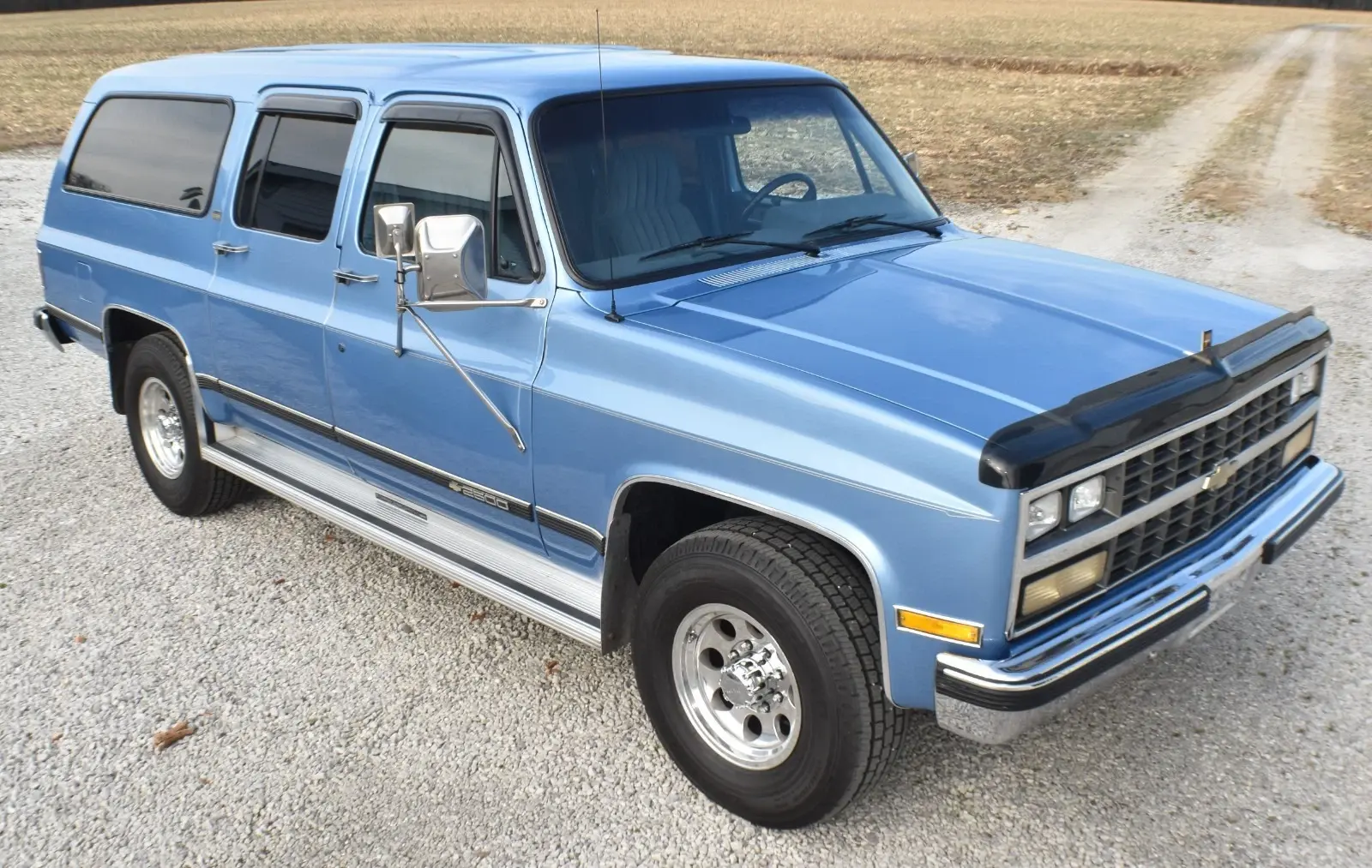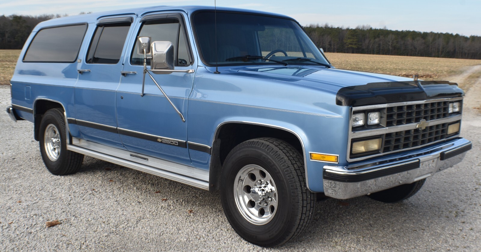 1989 Chevrolet Suburban 2500 4x2 powered by the original 454 cu. in. throttle body fuel-injected V8 rated at approximately 230 horsepower and a heavy duty Turbo 400 3-speed automatic transmission. The Suburban is currently on its third owner who has had it for about 27 years and logged less than 40,000 miles during that time.