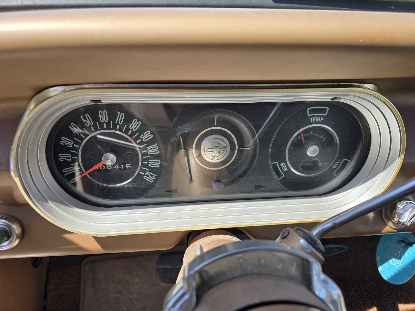 Original 13in tires with factory hubcaps. Engine has been upgraded to electronic ignition. 2 speed power glide transmission.