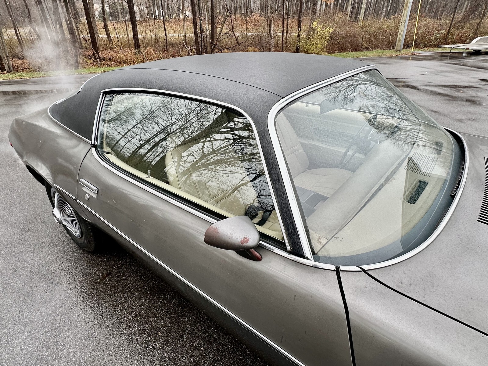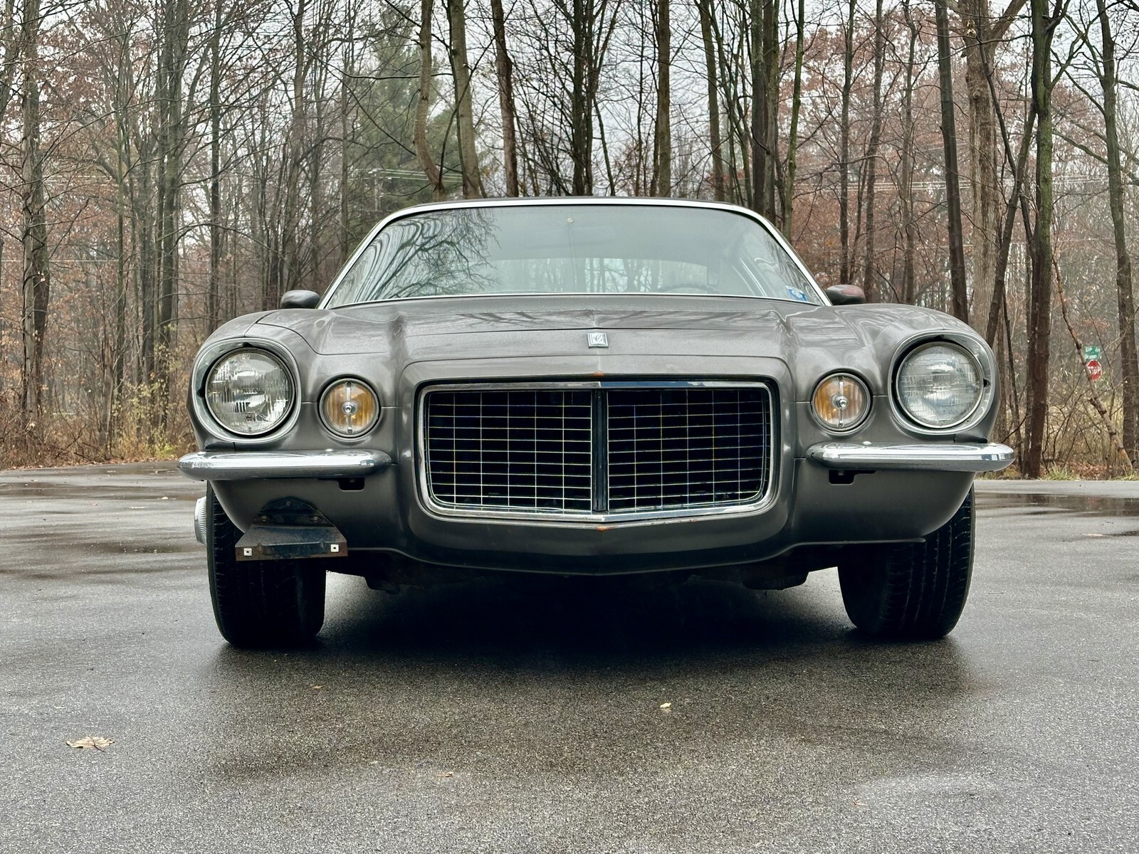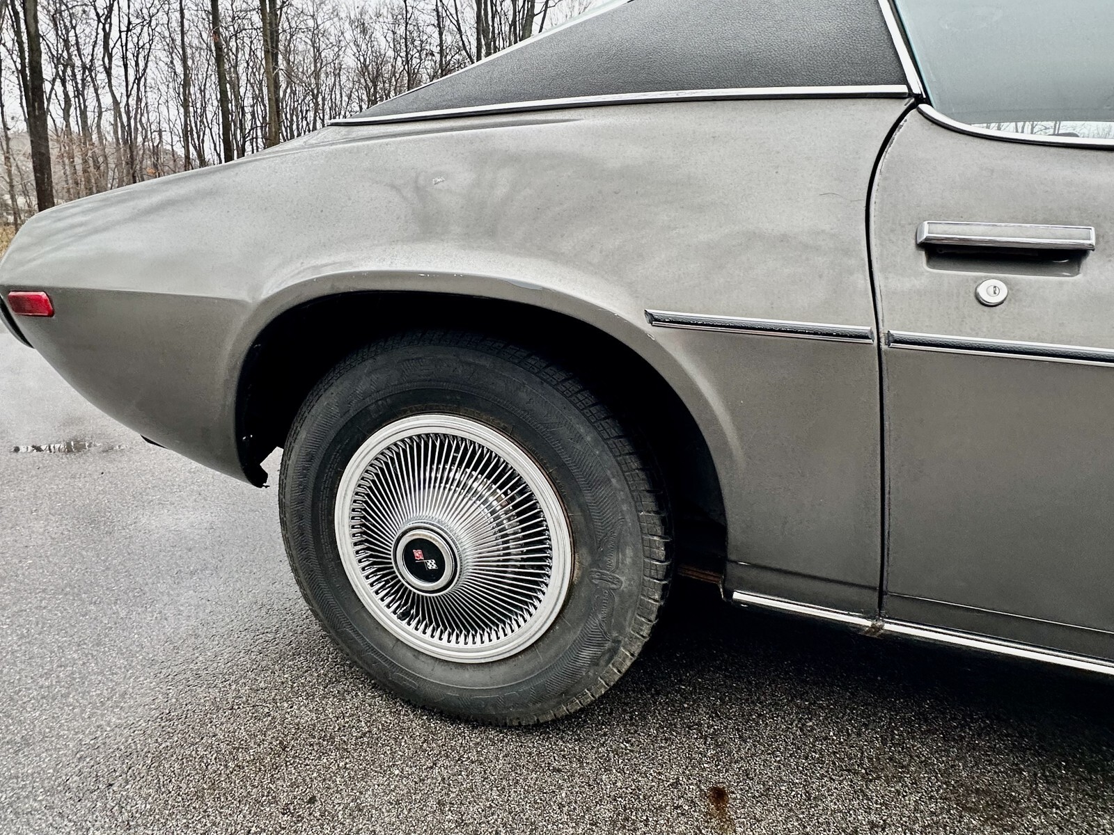 Finished in factory Shadow Grey (Paint Code 17), the car received a respray some years back. While driver-quality and not show-level, the body remains nice and straight with what appears to be all-original sheet metal. The rare RS split-bumper configuration is intact and presents well. The vinyl top is a standout feature—tight, clean, and in excellent condition with no bubbling or separation. The overall exterior appearance is consistent with a low-mileage, largely untouched RS.