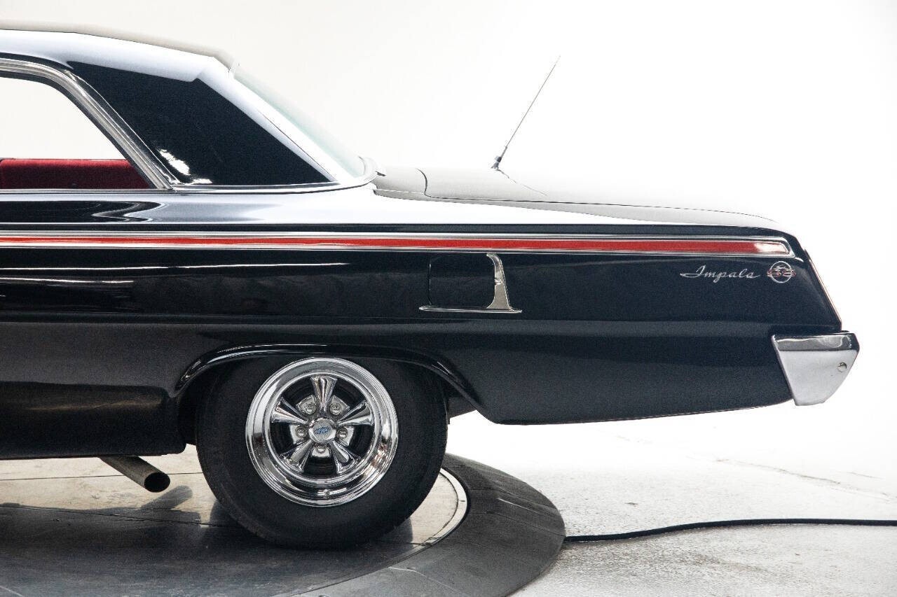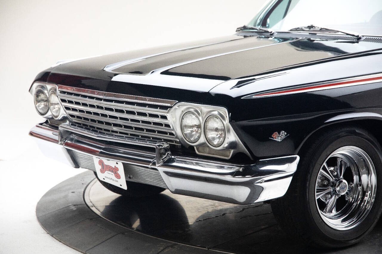 1962 Chevrolet Impala with SS tri, 9,976 Miles Showing, 454 V8 Engine, HEI, aluminum intake, 4 Speed Manual Transmission With Hurst Shifter, Power Steering, Power Brakes, Dual Exhaust, Front Disc Brakes, Code 900- Born Black Exterior Paint, Updated Red vinyl/cloth Interior, Front Bucket Seats, drivers side power, Center Console, Updated Engine Gauges, tachometer, Older Restoration But A Rock Solid Impala, 15 Cragar Wheels, Radial Tires, Am radio(non-working) optional front bumper grill guard, rear bumper guards, dual mirrors, rear antenna, gas door guard, finished trunk with spare tire and mats. Very fun driver! VISIT US AT OUR SHOWROOM LOCATED AT 250 Classic car Ct SW Cedar Rapids, Iowa, 52404! Open 9-5 CST M-F. Financing available with classic cars are done with JJ Best Banc 1-800-USA-1965 with terms of 24-84 months. Shipping is available. Terms of Sale for all vehicles sold at Duffy's Classic Cars/ Jetset Auto LLC: We strongly