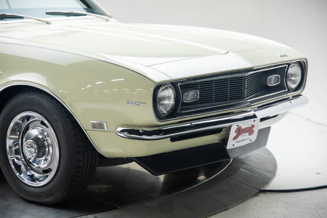 Fresh Trade-in! 1968 Chevrolet Camaro convertible Numbers matching 327 engine with 2bbl carb Powers steering Powerglide automatic transmission 10 bolt rear end with Highway 2:73 rear end gears Aftermarket stereo system with rear antenna Manual vinyl convertible top Optional deluxe Houndstooth bucket seat interior package with console Front and rear spoilers Original Protecto plate Very nice driver that has had recent paint and chrome. As always, we will consider all types of trades. Transportation is available. Why buy from us? We are one of the oldest and largest Midwest dealers who specializes in collector cars, modern muscle cars and imports. We normally have 40-90 collector cars in stock. All of our cars are handpicked purchases, not consignments, that have been evaluated for quality, value and checked over in our shop to assure drivability. These cars are available to look over, test drive and evaluate at our location, by
