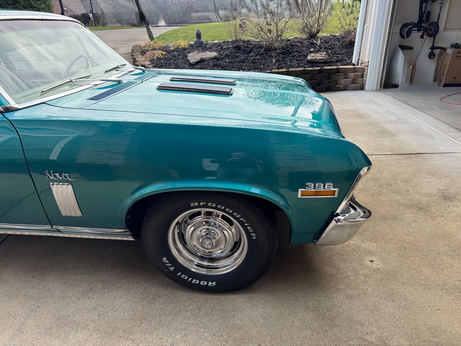 1970 Nova SS 396, true L-78 396/375 car, currently has a 468 ci 4-bolt main full roller engine, with less than 500 miles on it. Brand new Tremec TKX 5-spd trans with Tilcon hydraulic clutch. The car has the original 12 bolt rear end with 3.73 gears and a Moroso Brute Strength differential, C-clip and crush collar eliminator kits. The car had a full rotisserie restoration in 2001 and was then stored in a climate controlled garage until 2023. The car has all the original body panels, including floors and trunk. The car has never been driven in the snow, nor was it ever rusted. I have the original POP (Protect-O-Plate).