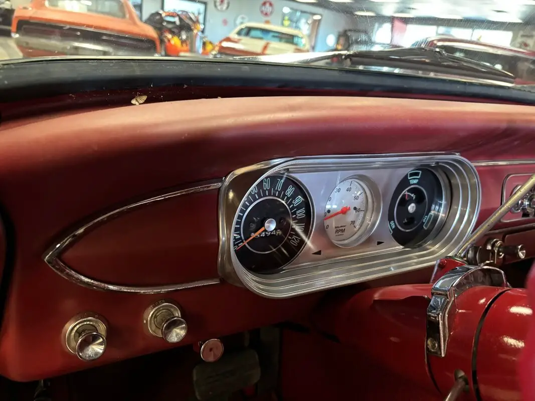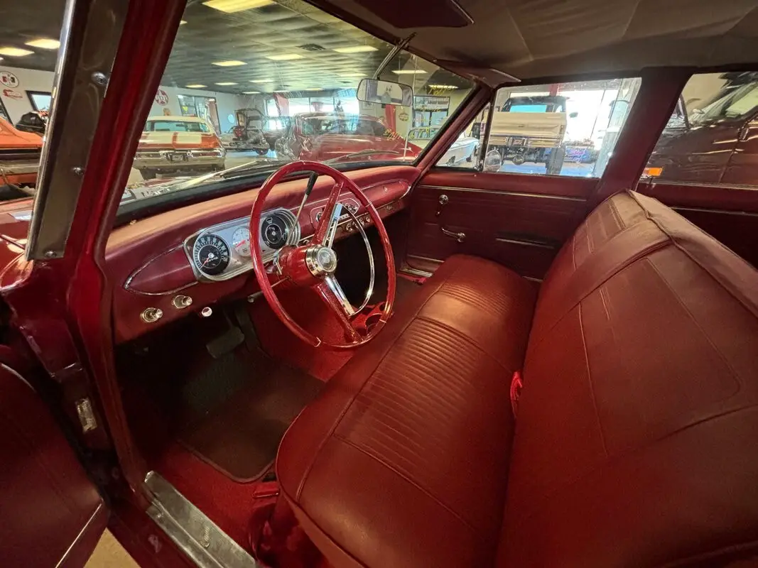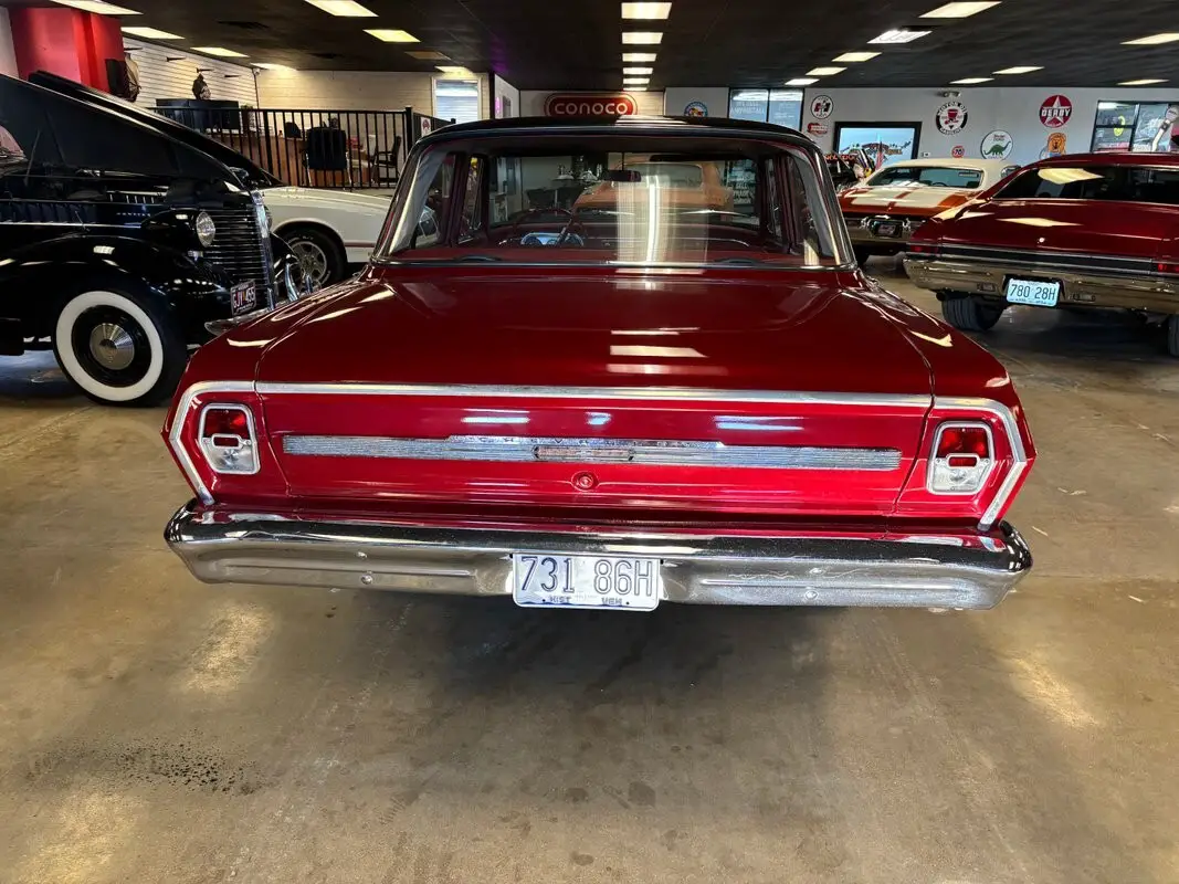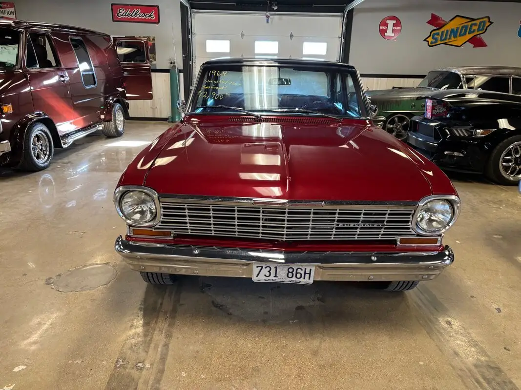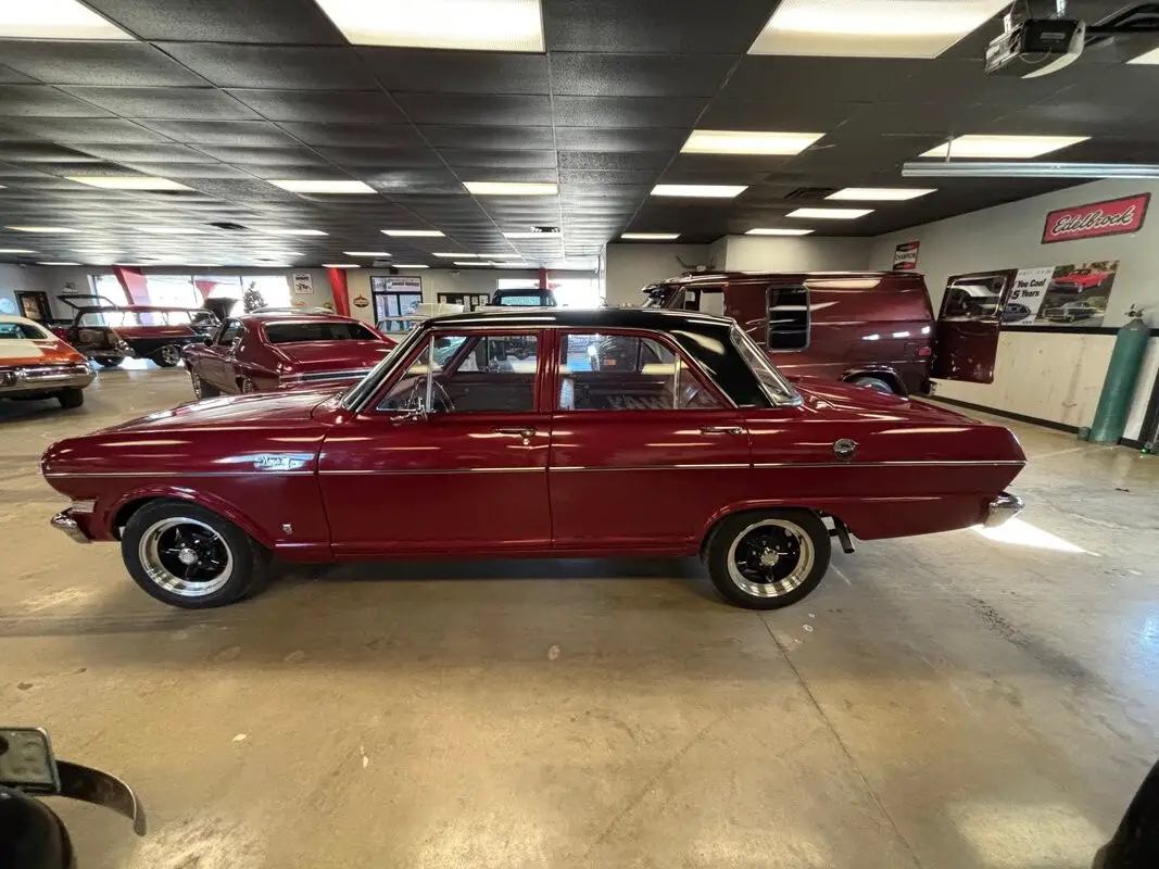 This 1964 Chevrolet Nova sedan is powered by its original 235ci inline-six engine paired with a 700R4 automatic transmission and rear-wheel drive. Finished in burgundy (Ford Toreador Red) with a red vinyl bench-seat interior, it features a column shifter, AM/FM radio, and classic four-door styling. A solid vintage cruiser offering timeless 1960s Chevrolet charm with improved drivability.