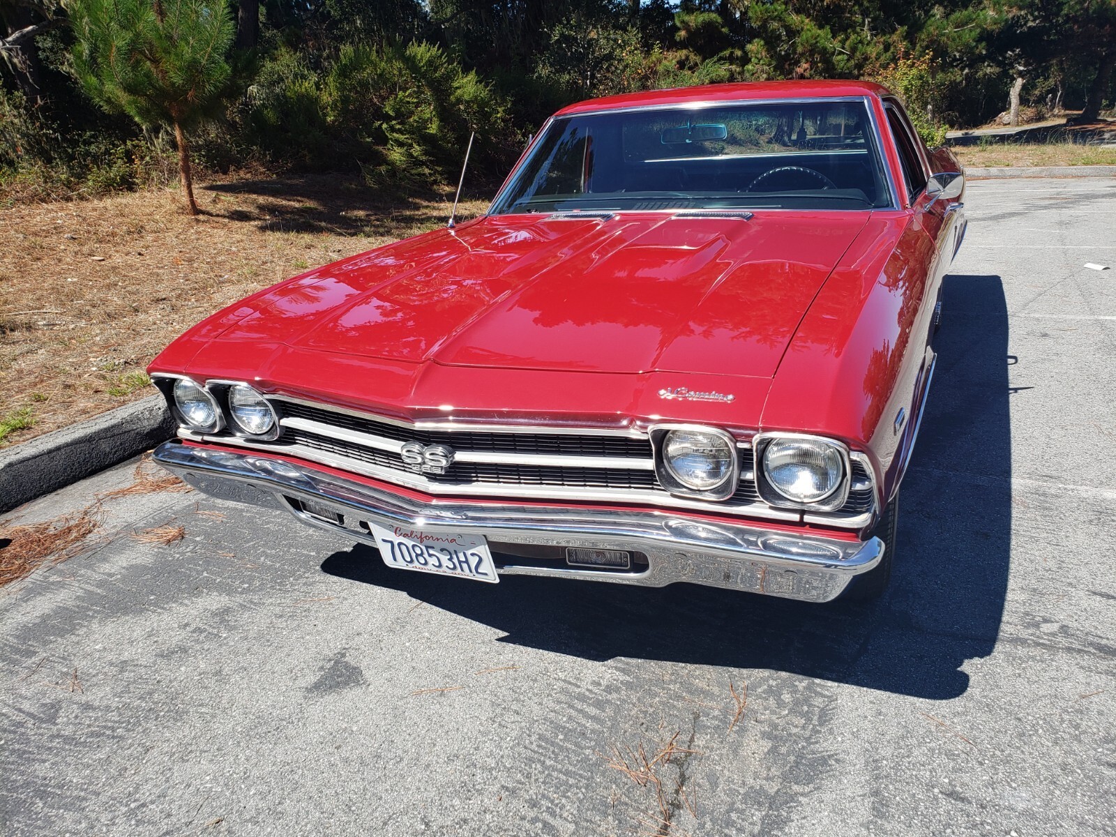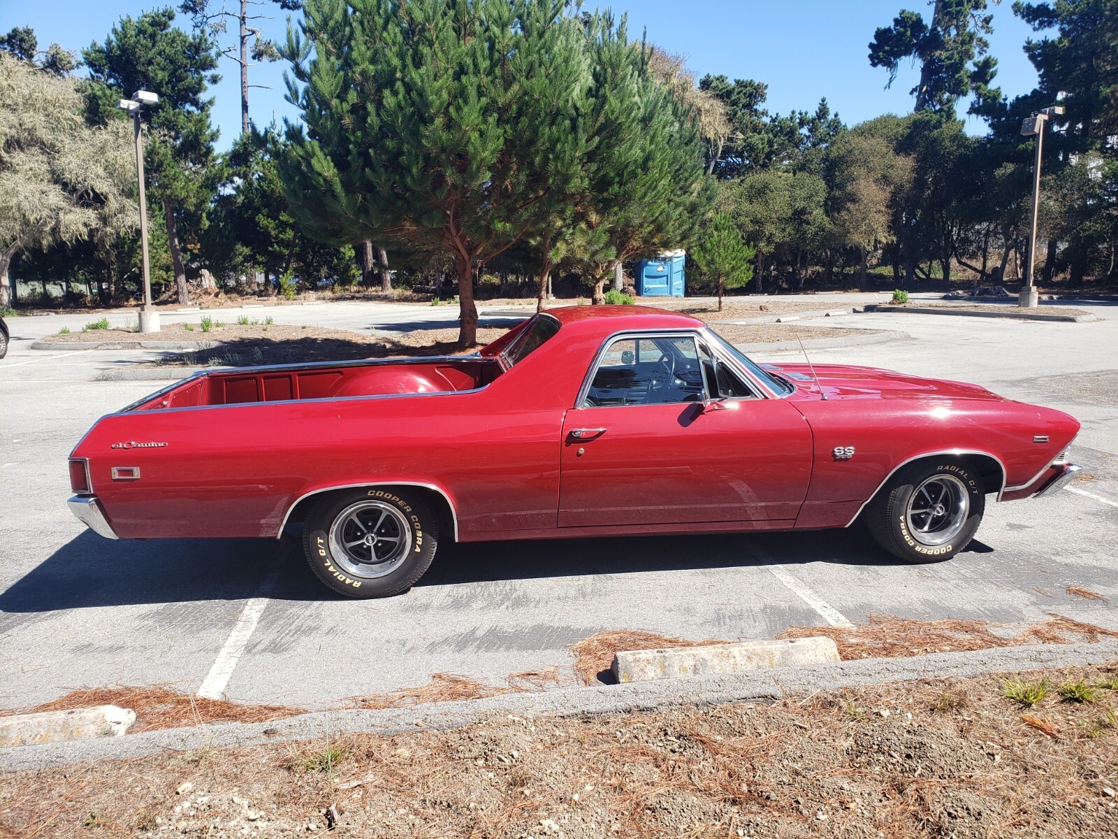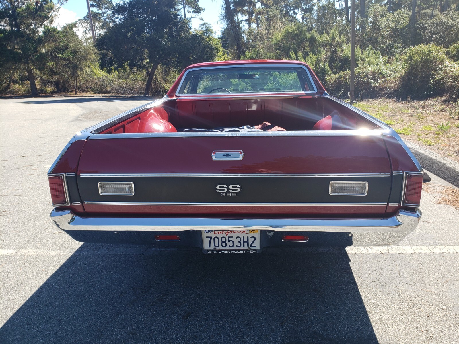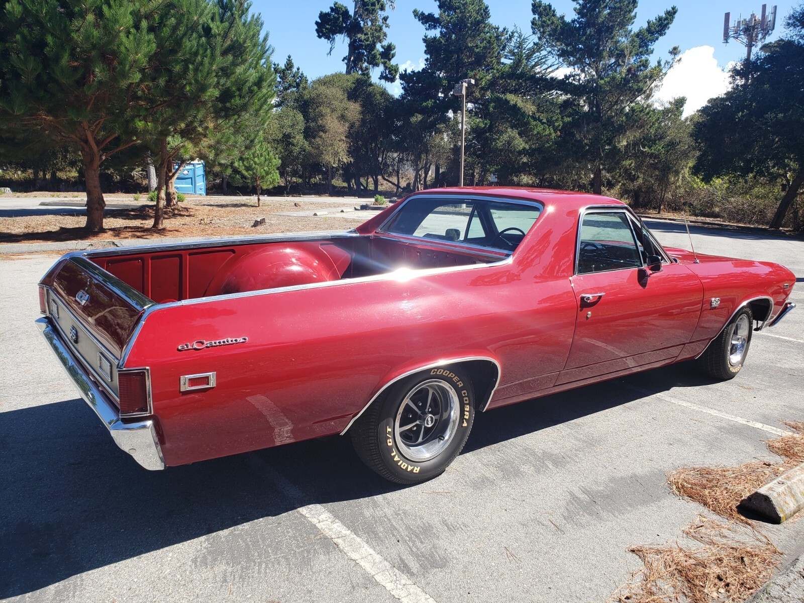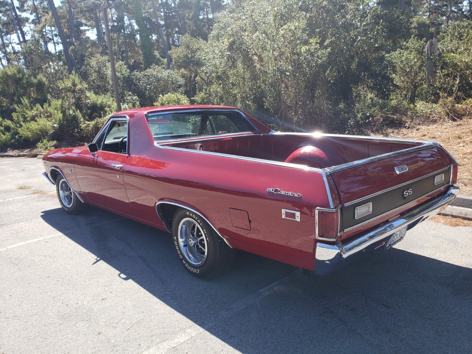 This clean 1969 Cranberry Red El Camino is automatic has a 454 Engine Turbo 400 with a Stall. Rebuilt engine with about 1000 miles on it. New Transmission. Extra fan in front of radiator. Posi Traction Rearend.New rear air shocks. Bed has a liner mat. Power steering and power brakes.New interior, headliner, door panels, dashboard and carpet. Also new stereo system. Moving must sell new place doesn't have room for this car.