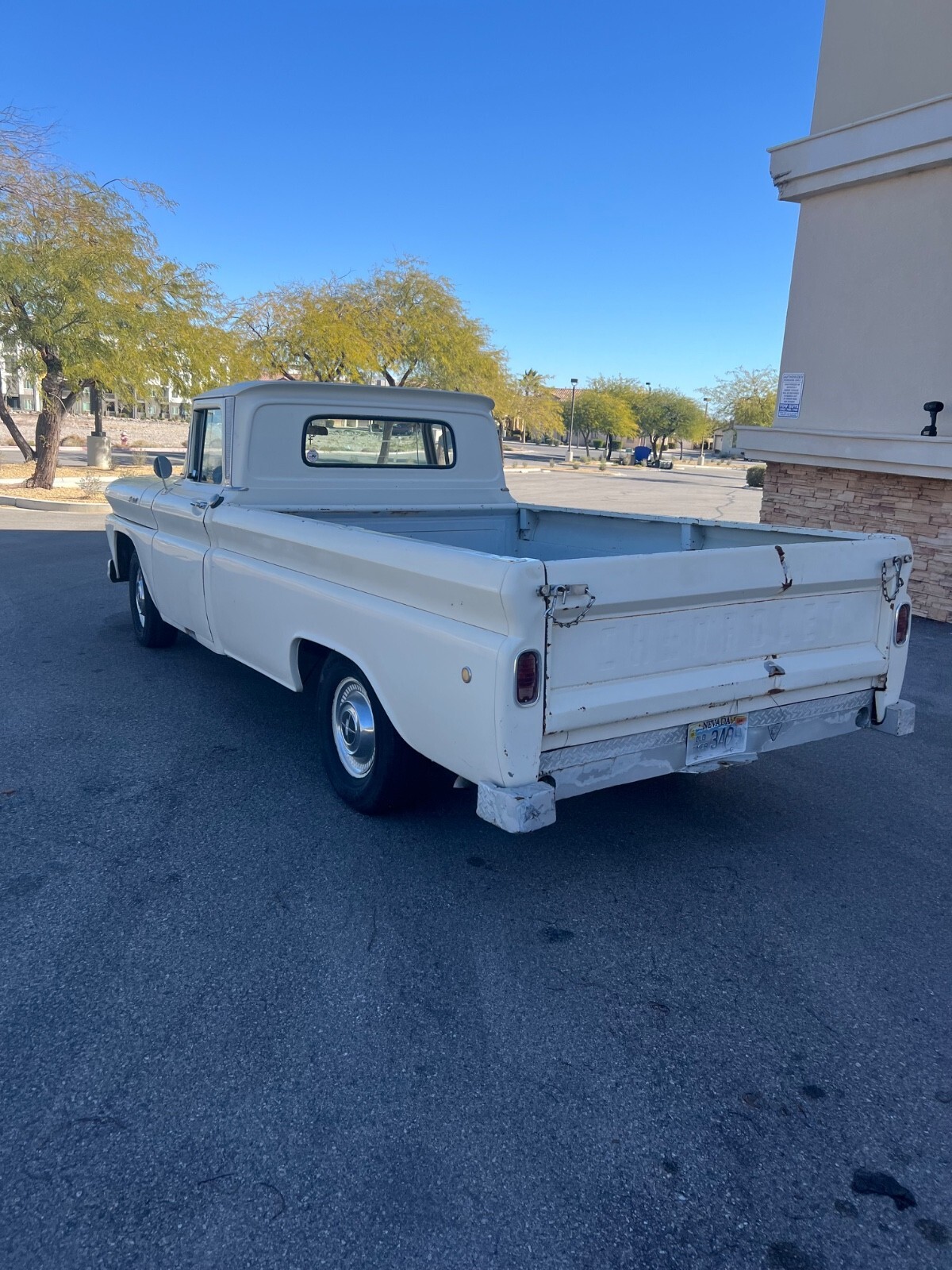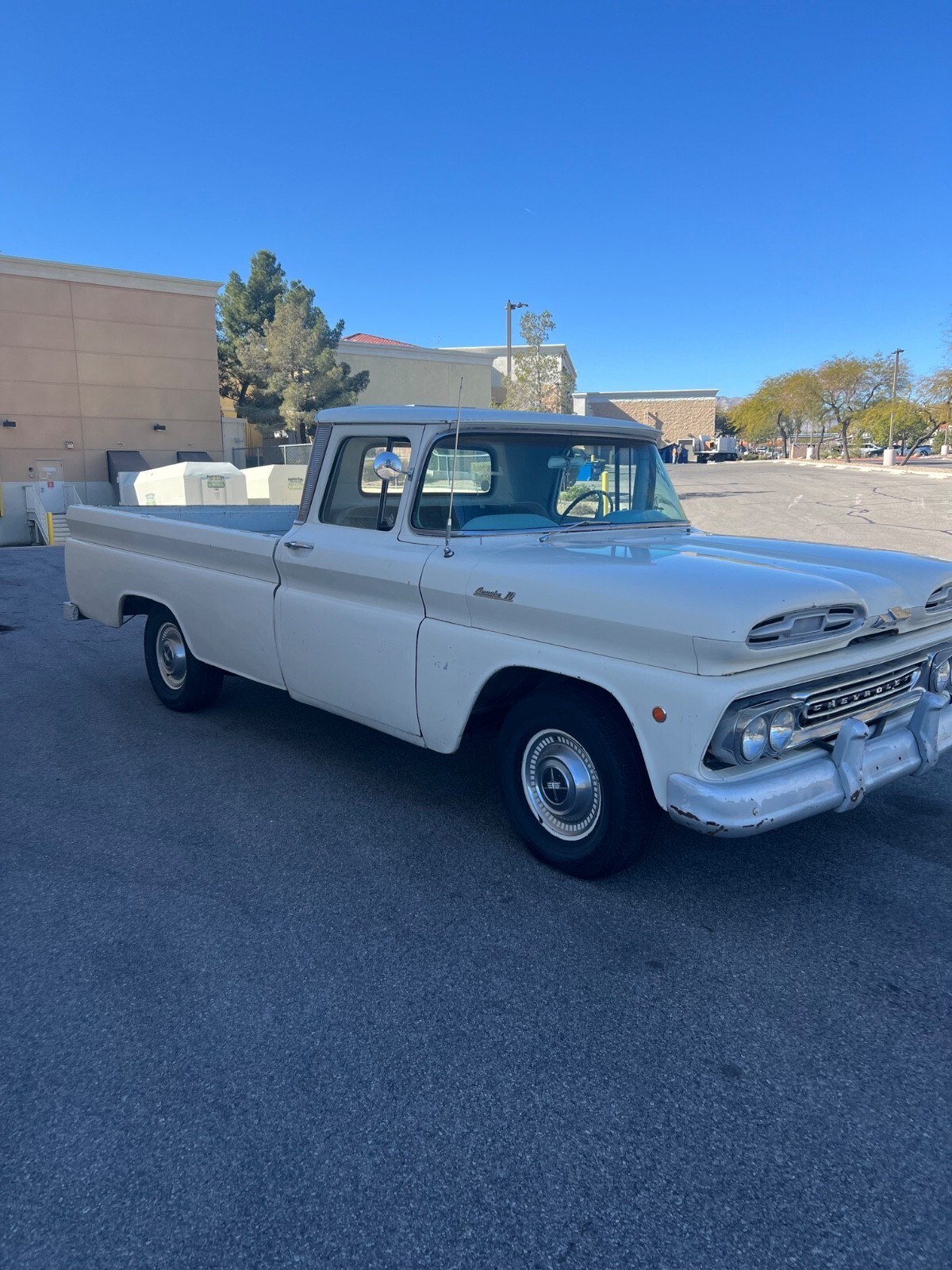 1961 Chevrolet C 10 Apache pick up truck long bed beautiful Straight body minimum rust only on the driver bottom lip floors but not the floors at all they are solid and Below is solid little truck with AC factory. Got the AC pump on the back of the truck Not connected obviouslythere’s not really a lot to say what you see is what you get and Engine runsreally smooth It idles so Good. It might need a carburetor cleaning because when I step on the gas, it kind of chokes you just got to easy in the gas and it goes very nice original hard to find Truck any questions call me at 702-659 3940 Art gauges do work temperature battery and gas tank kilometer is not working. It just needs to be hooked up. You can fill the wire spinning.