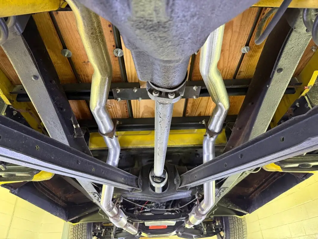 Power comes from a 454 CI Big Block V8 with a mild cam, delivering the deep rumble and torque that Chevy fans love. A TH350 automatic transmission with a floor-mounted B&M shifter transfers power smoothly, while a 12-bolt rear end and front disc brake conversion ensure this truck is both strong and safe on the road. Power steering makes cruising effortless, while dual exhaust adds muscle to the driving experience.