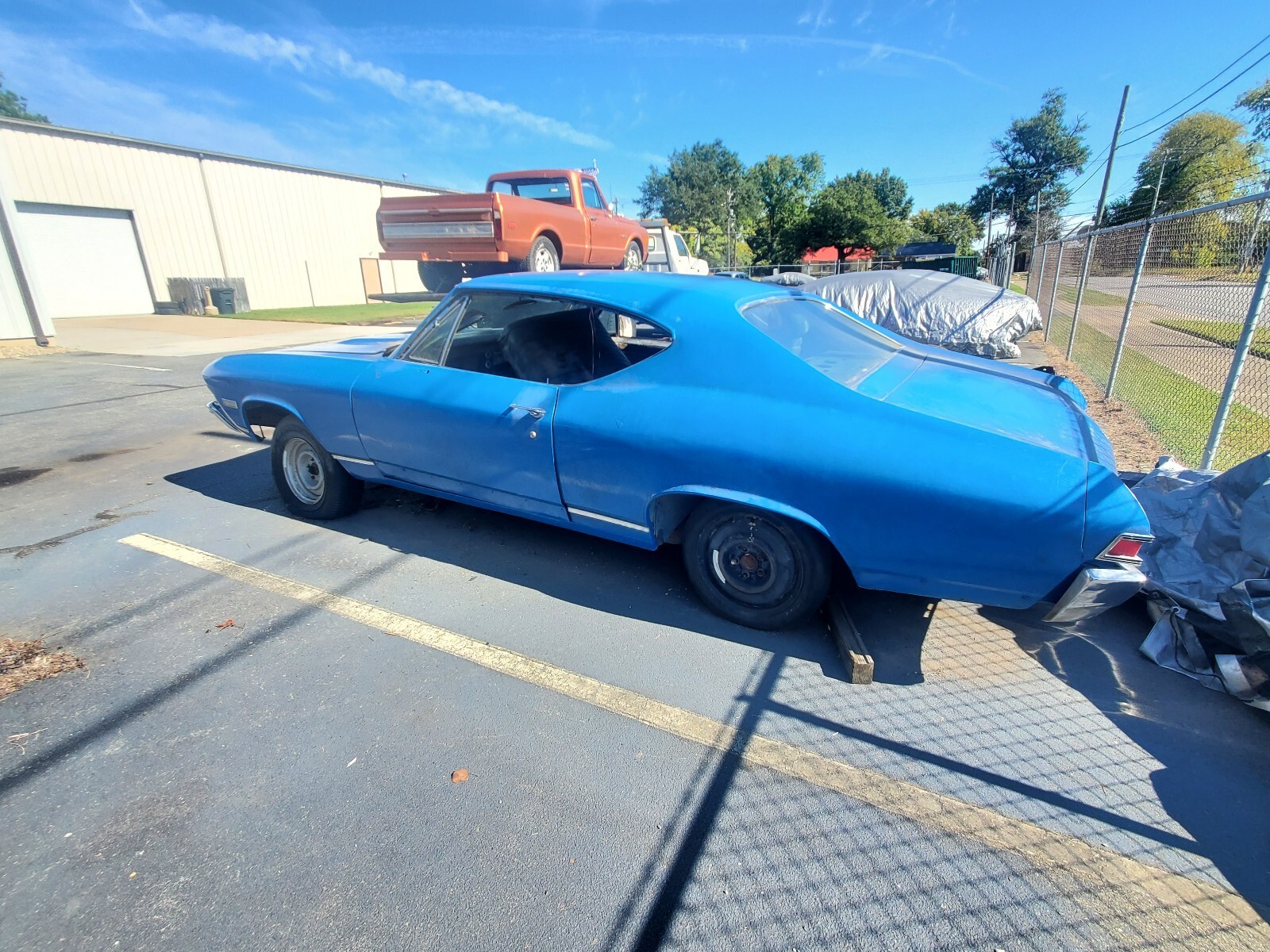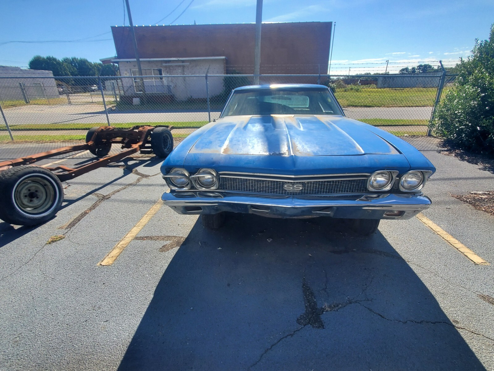 1968 Chevelle SS - 138 car ( Blue) originallyGrecian Green Metallic.clear titleless the engine and trans.This car is a roller without engine or transmissionClean title was a Oklahoma car needs full restoration - Chassis has surface rust and front floor pans already remove.Quarters appear to only need bottom patch panelswas originally a A/C car,Auto trans,396included rare front buckets with head rests